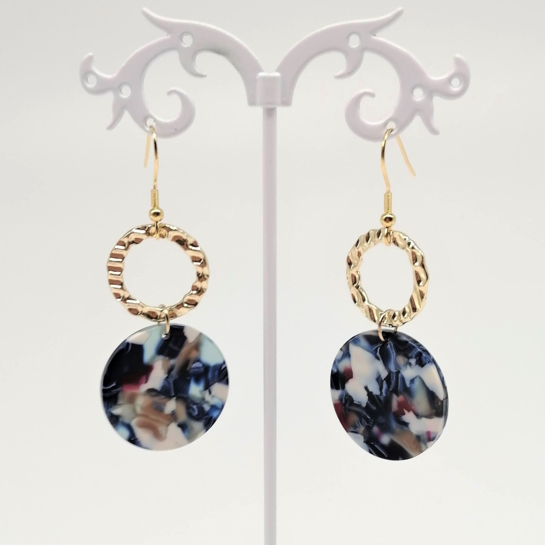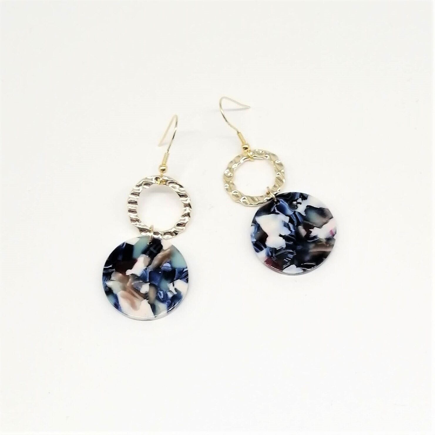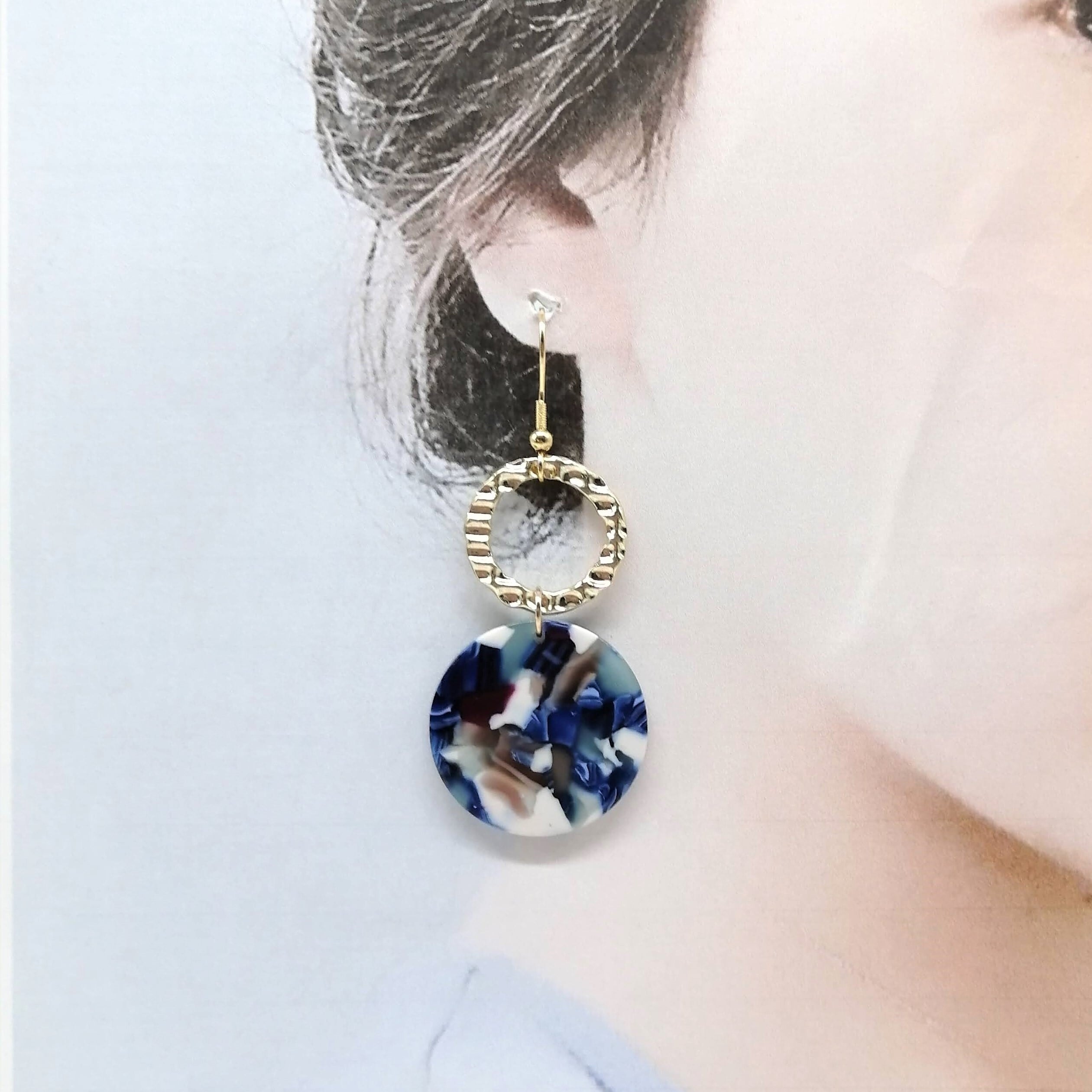 【サージカルステンレス ピアス】大人かっこいい ブルー マーブル イアリング変更可