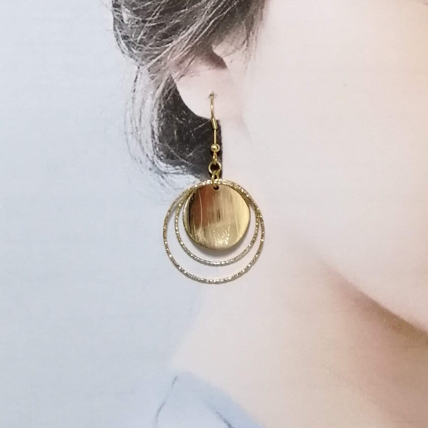 2重のツイストリング×ウェーブラウンドの組み合わせのピアスです。