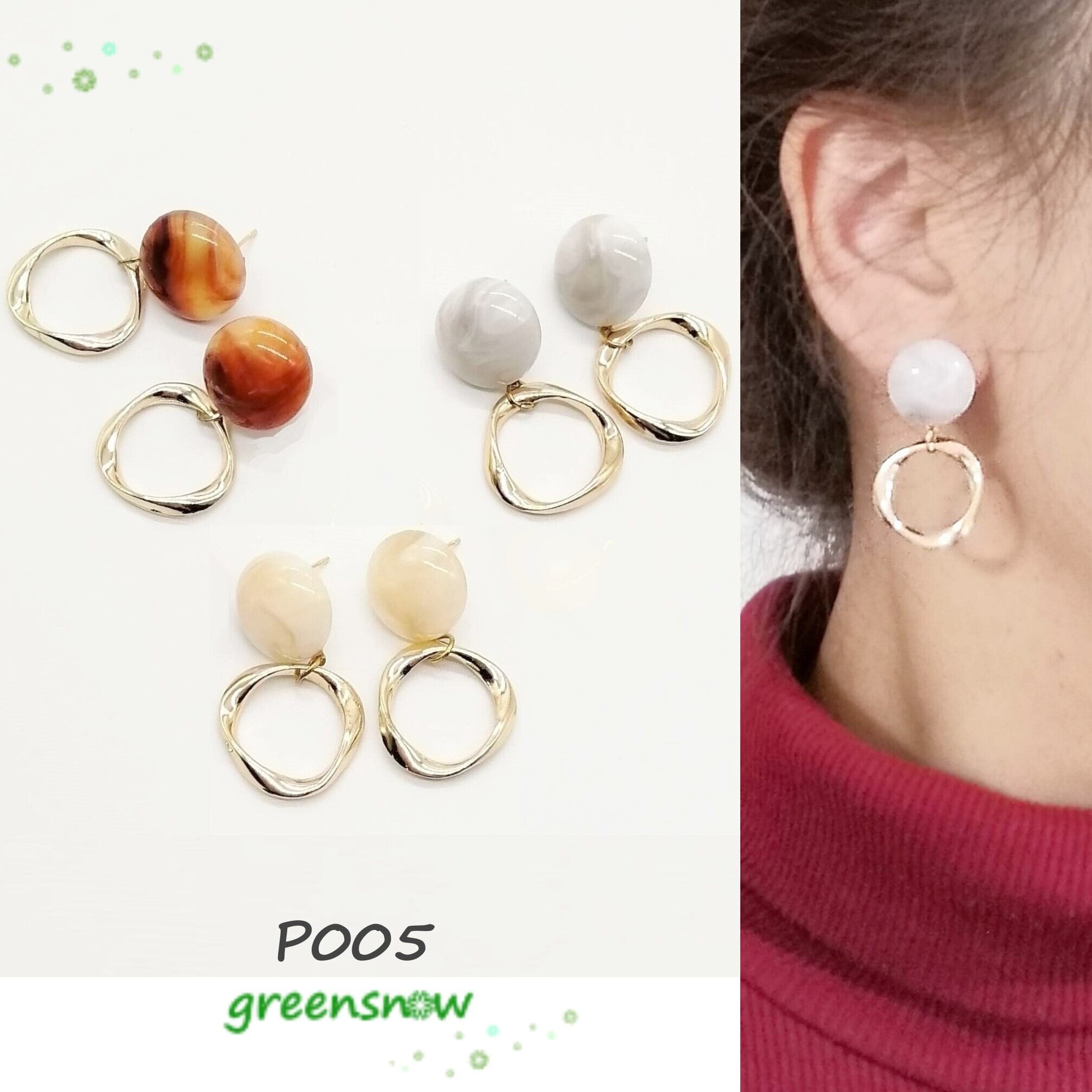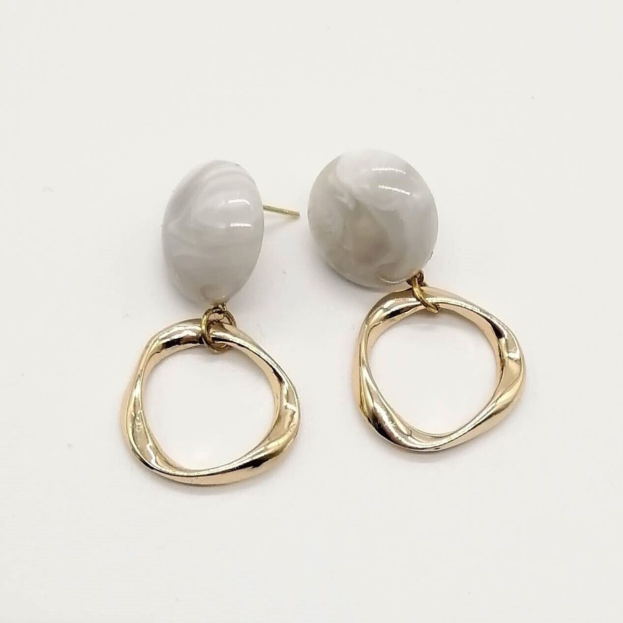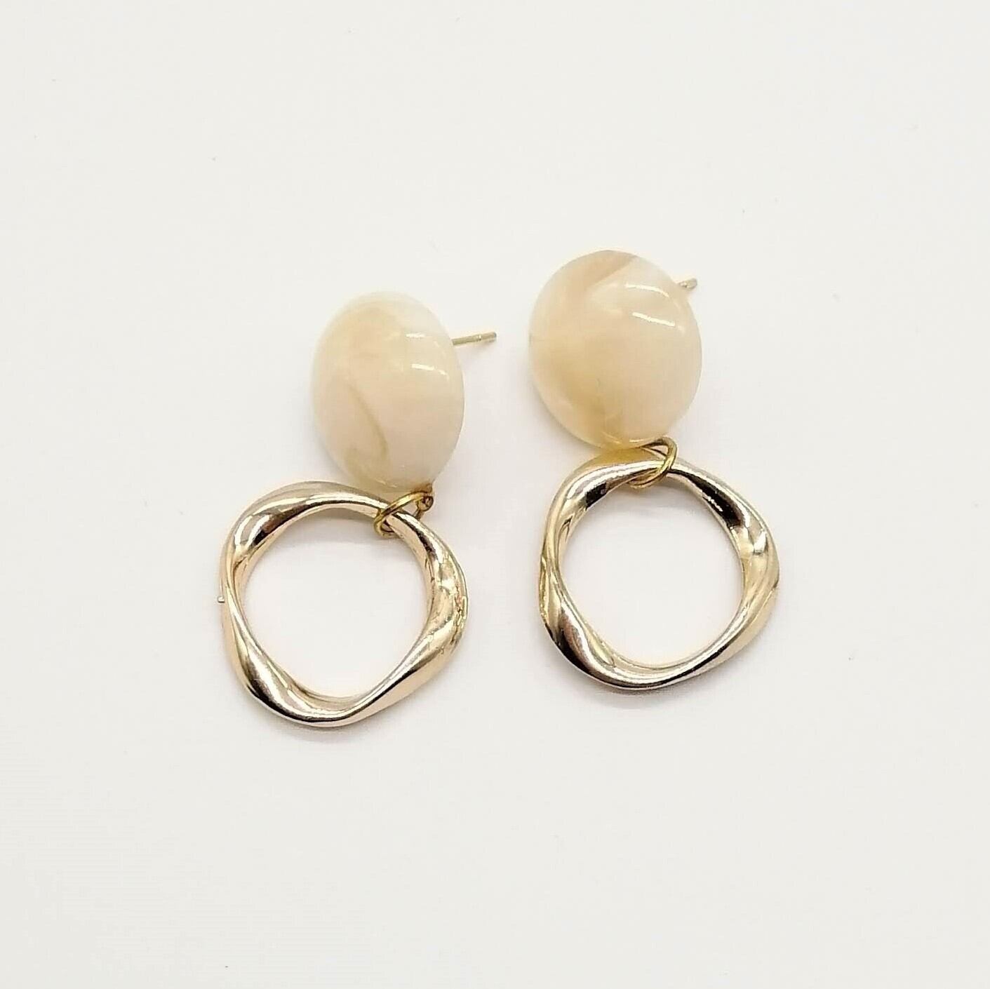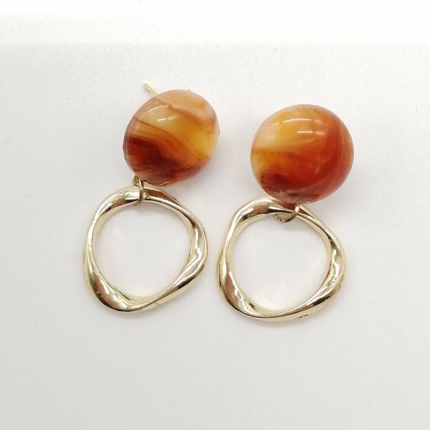 マーブルと変形のツイストを組み合わせた大ぶりのピアスです。