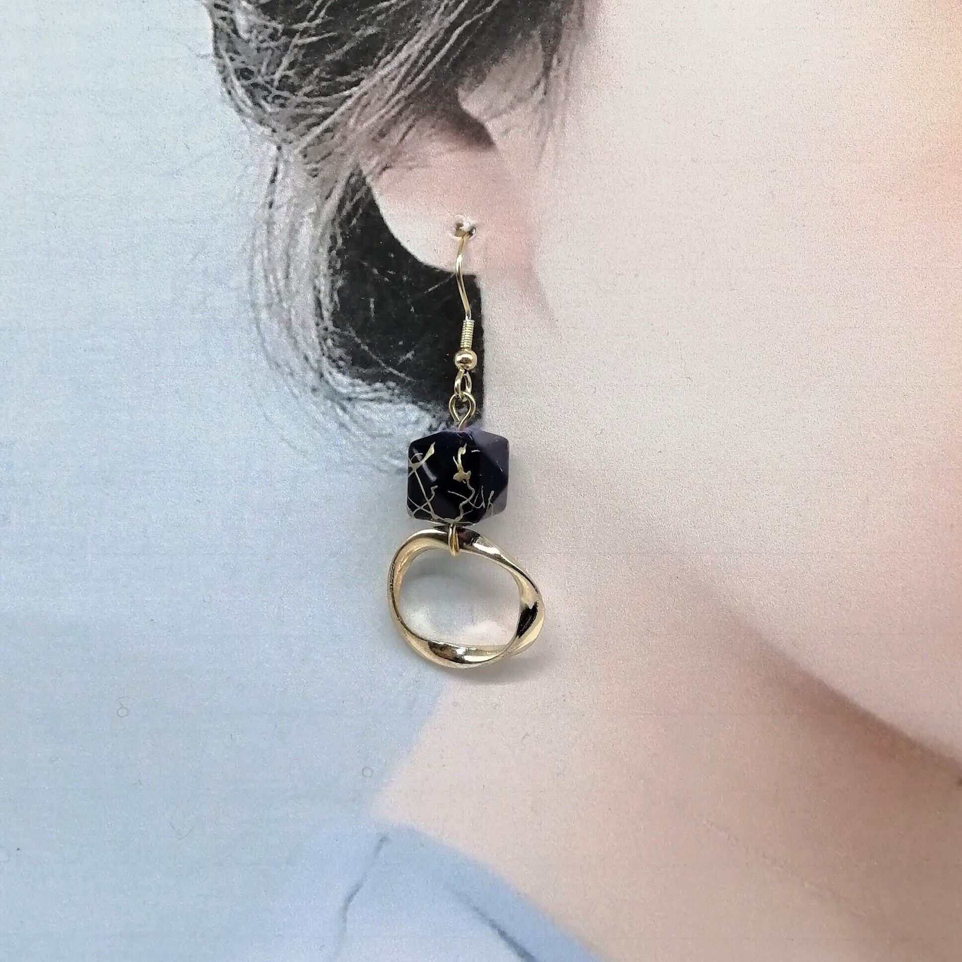クラック柄 不規則マーブルと変形のツイストを組み合わせた大ぶりのピアスです。