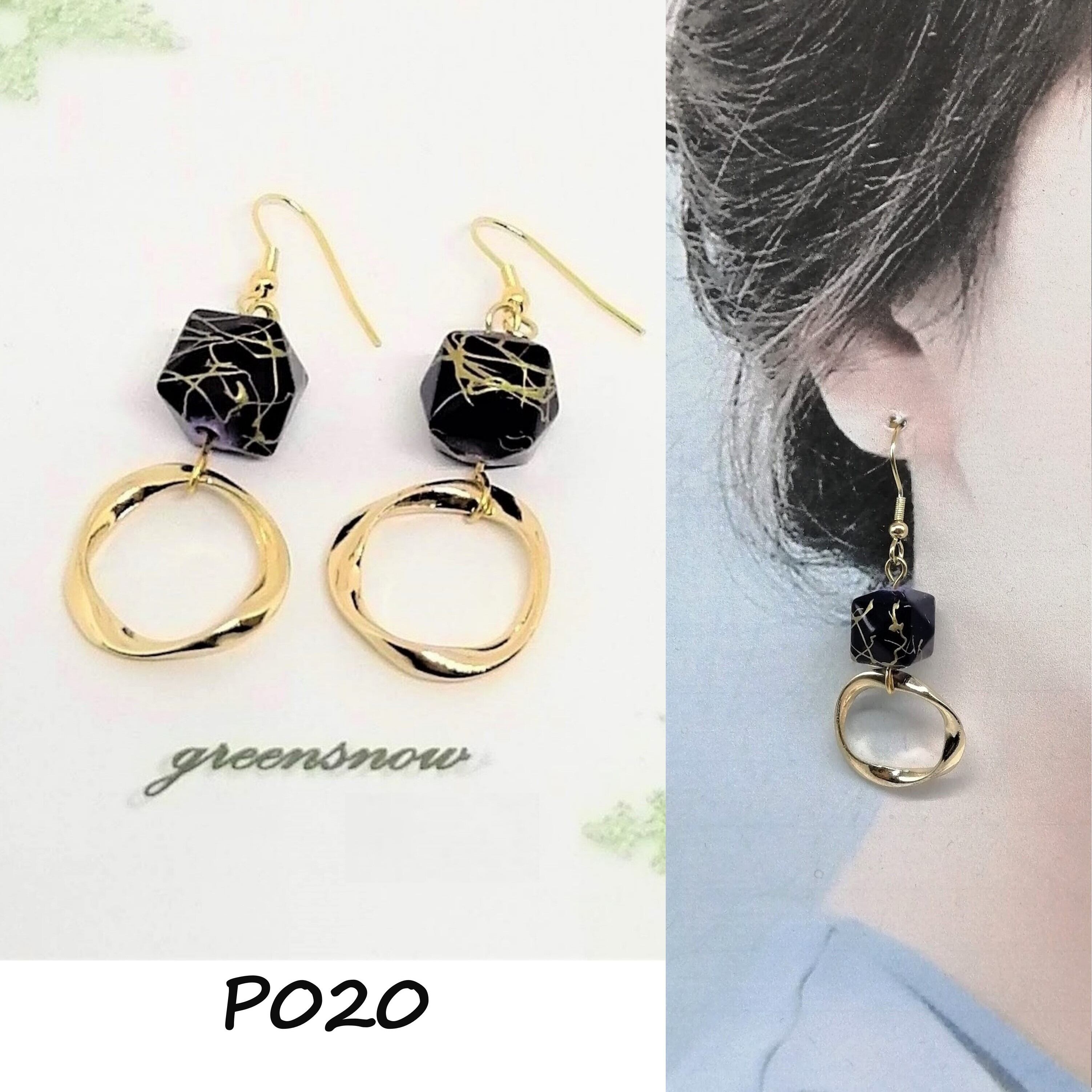 【サージカルステンレス ピアス】クラック柄 不規則マーブル ツイスト イアリング変更可