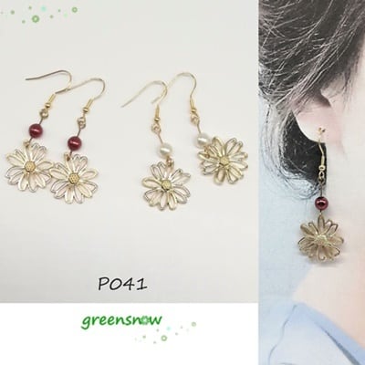 菊模様チャームとパールを合わせたピアスです。