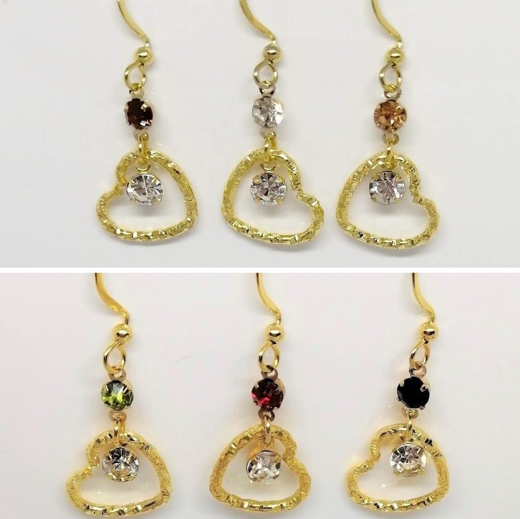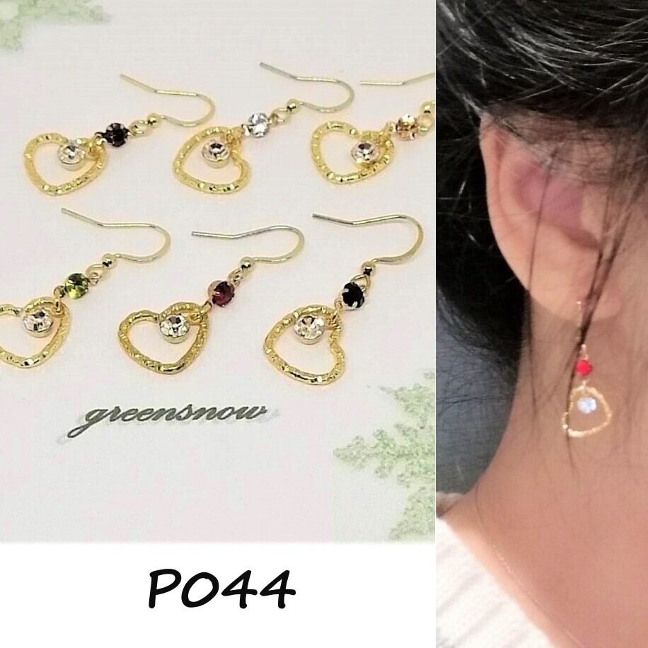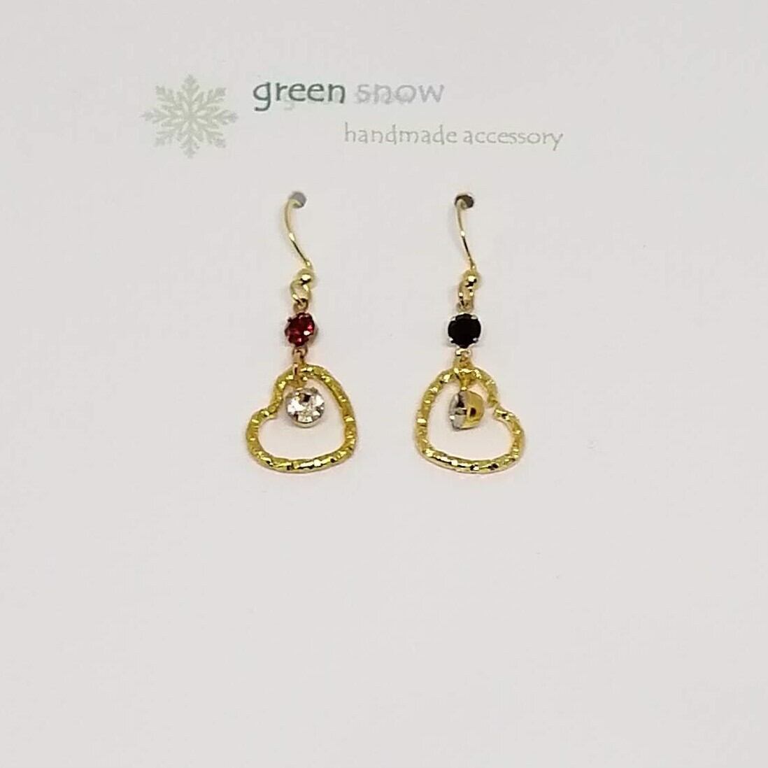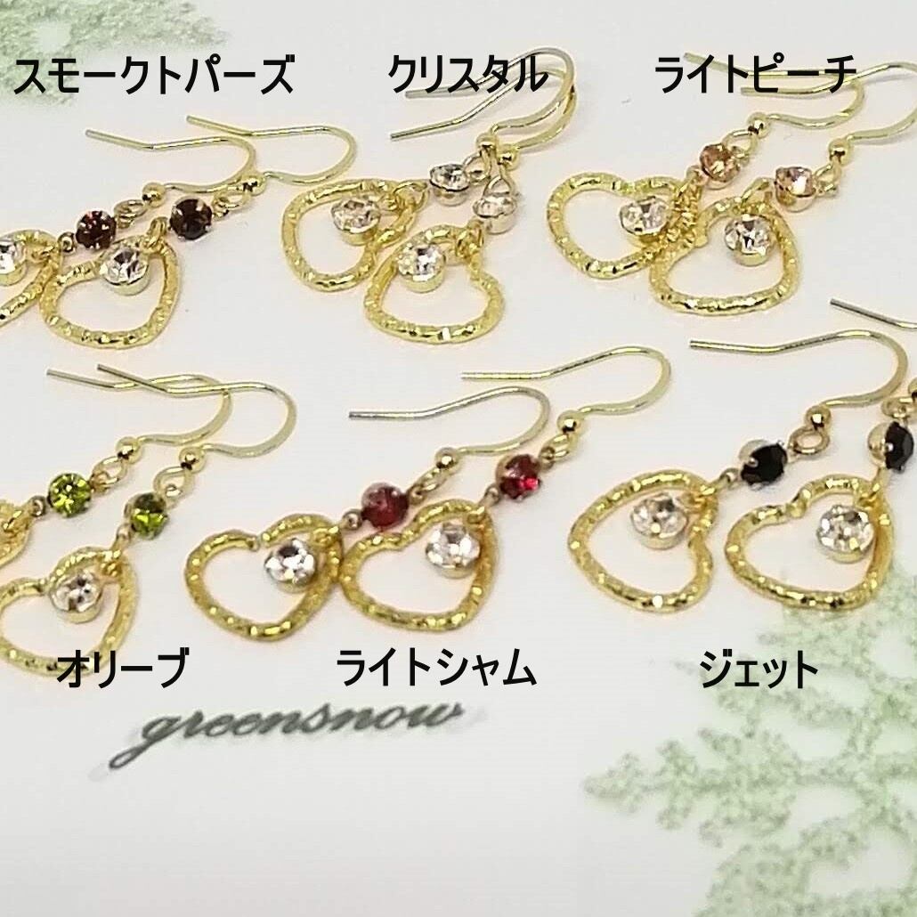 色々カラーのストーン×ツイストのハート×クリスタルを合わせたピアスです。