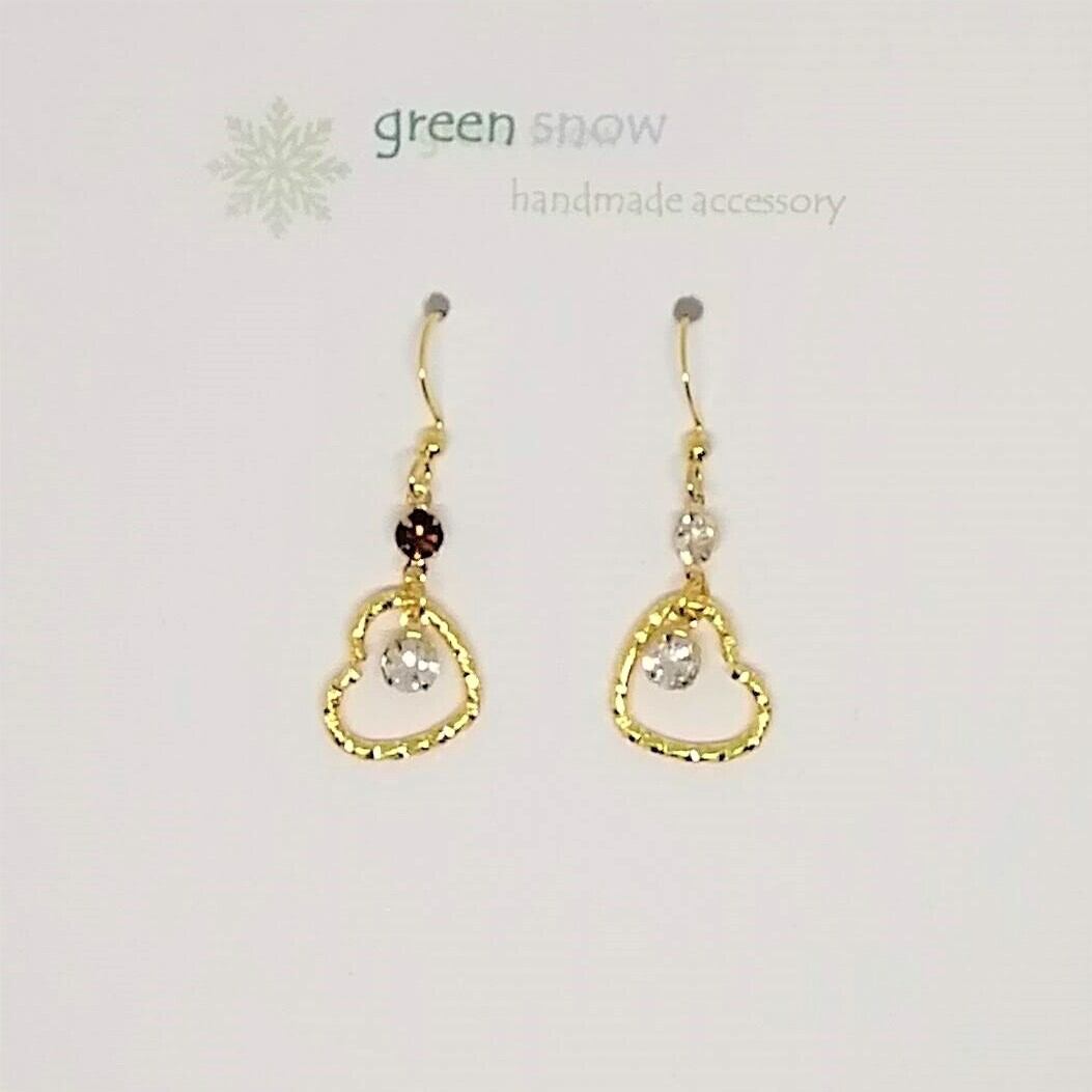 【サージカルステンレス ピアス】ストーン ツイストのハート クリスタル イアリング変更可