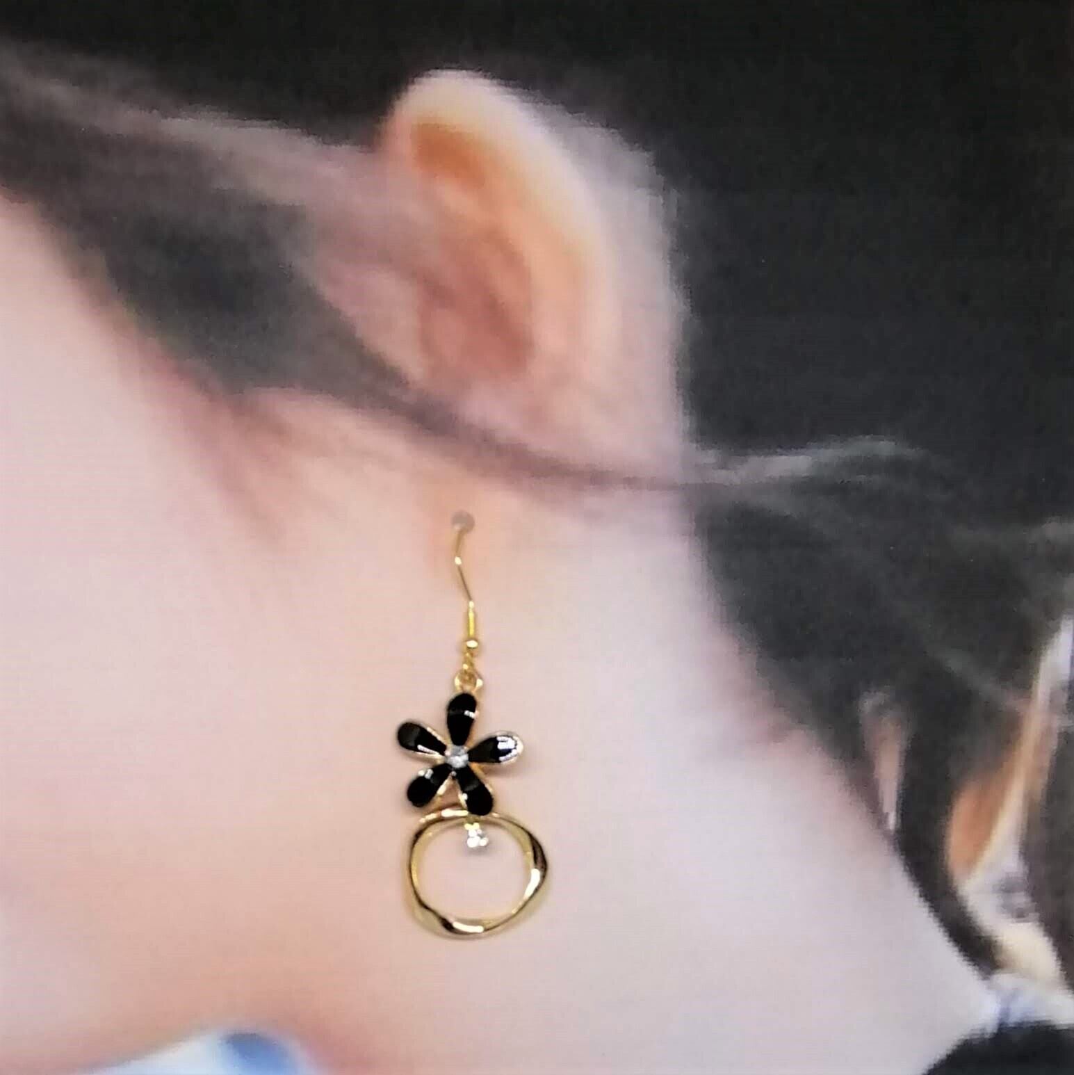 モダンなのにキラキラ耳元で揺れて華やかな印象に。