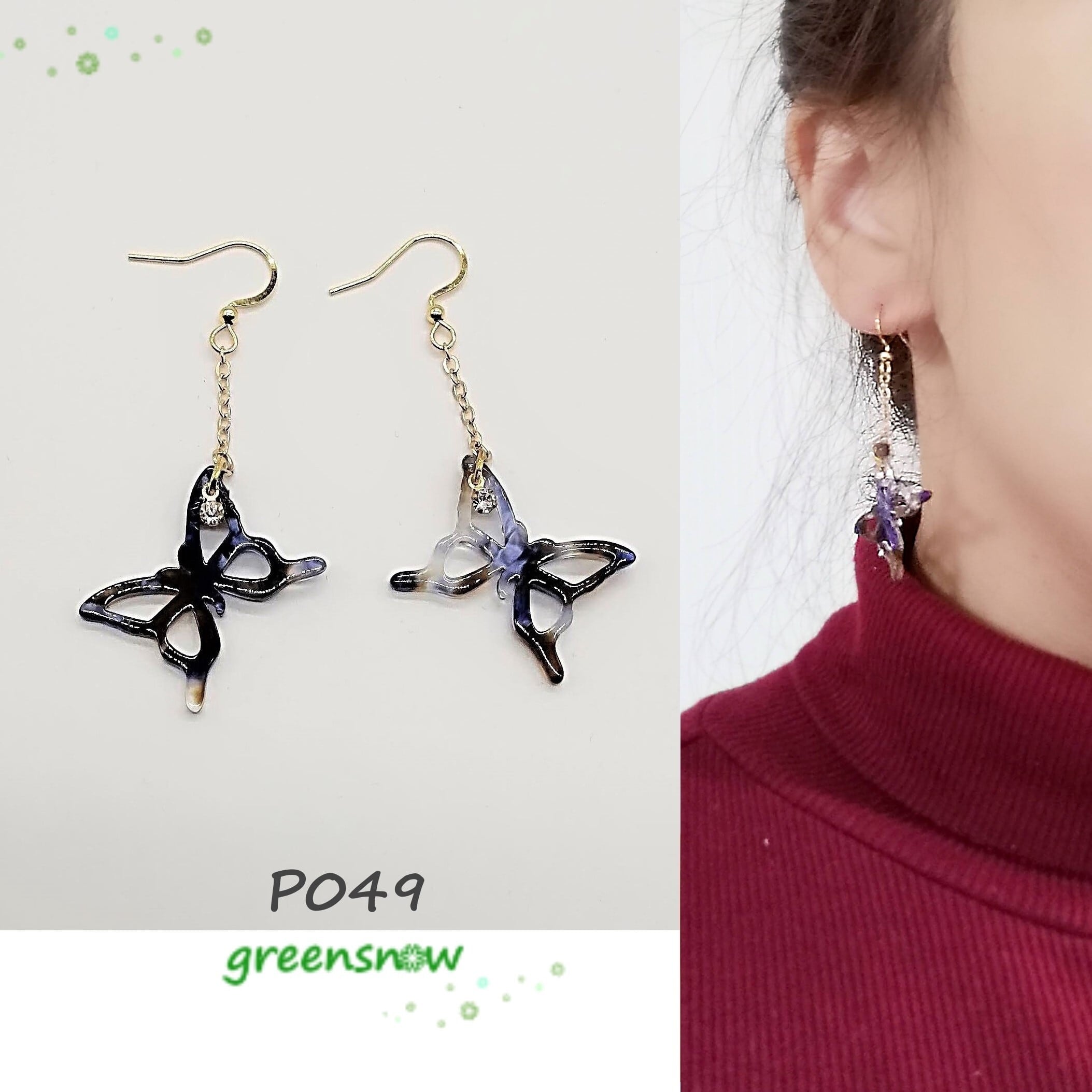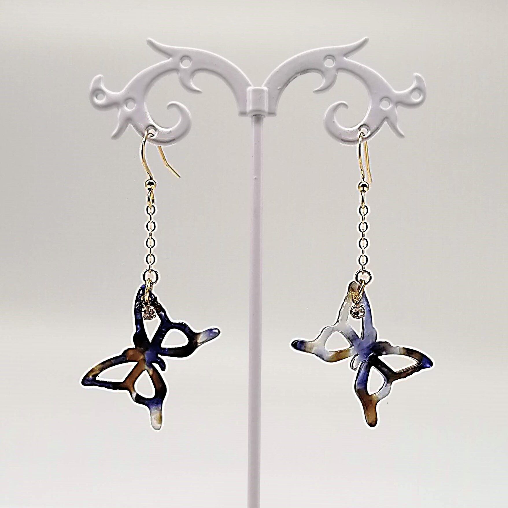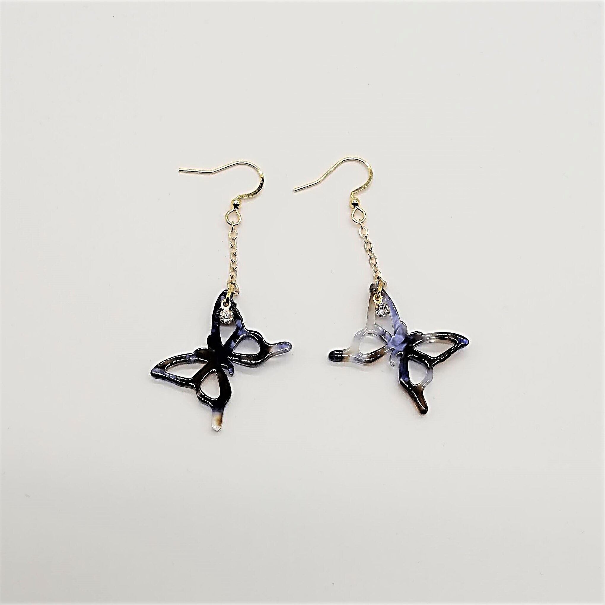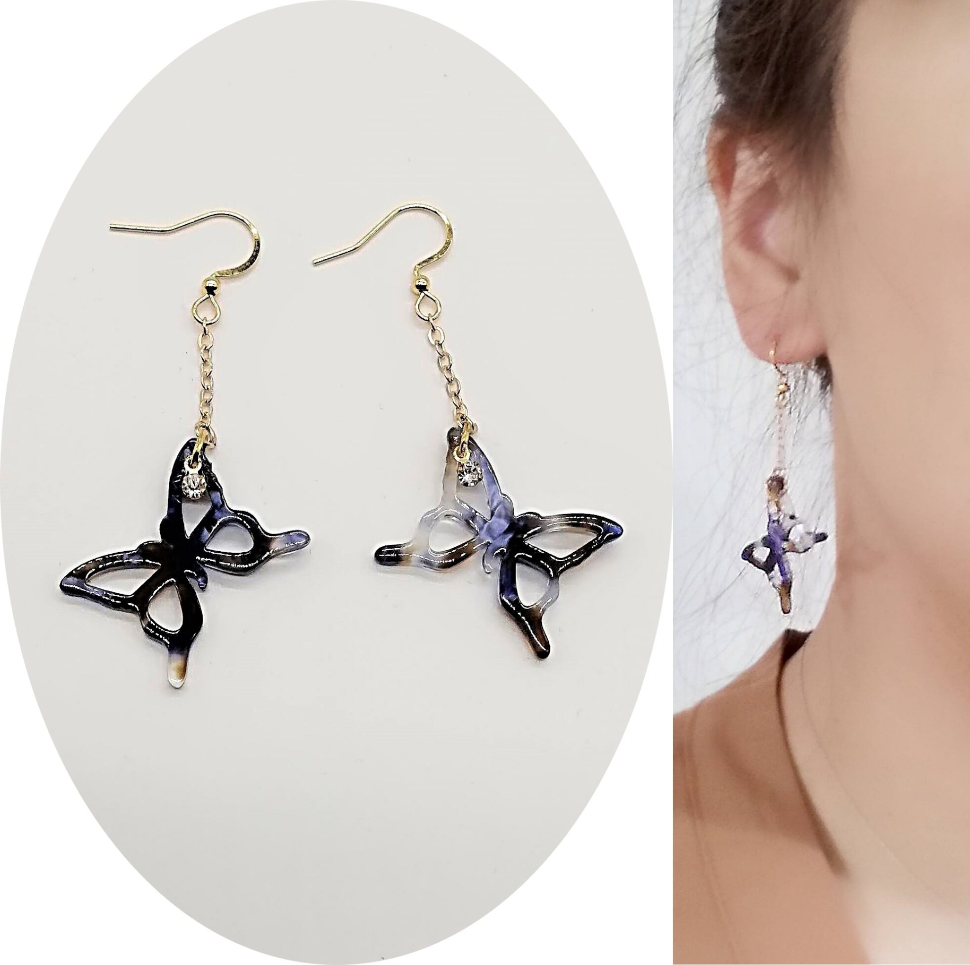 【サージカルステンレス ピアス】べっ甲風 蝶々 ちょうちょう ストーン イアリング変更可