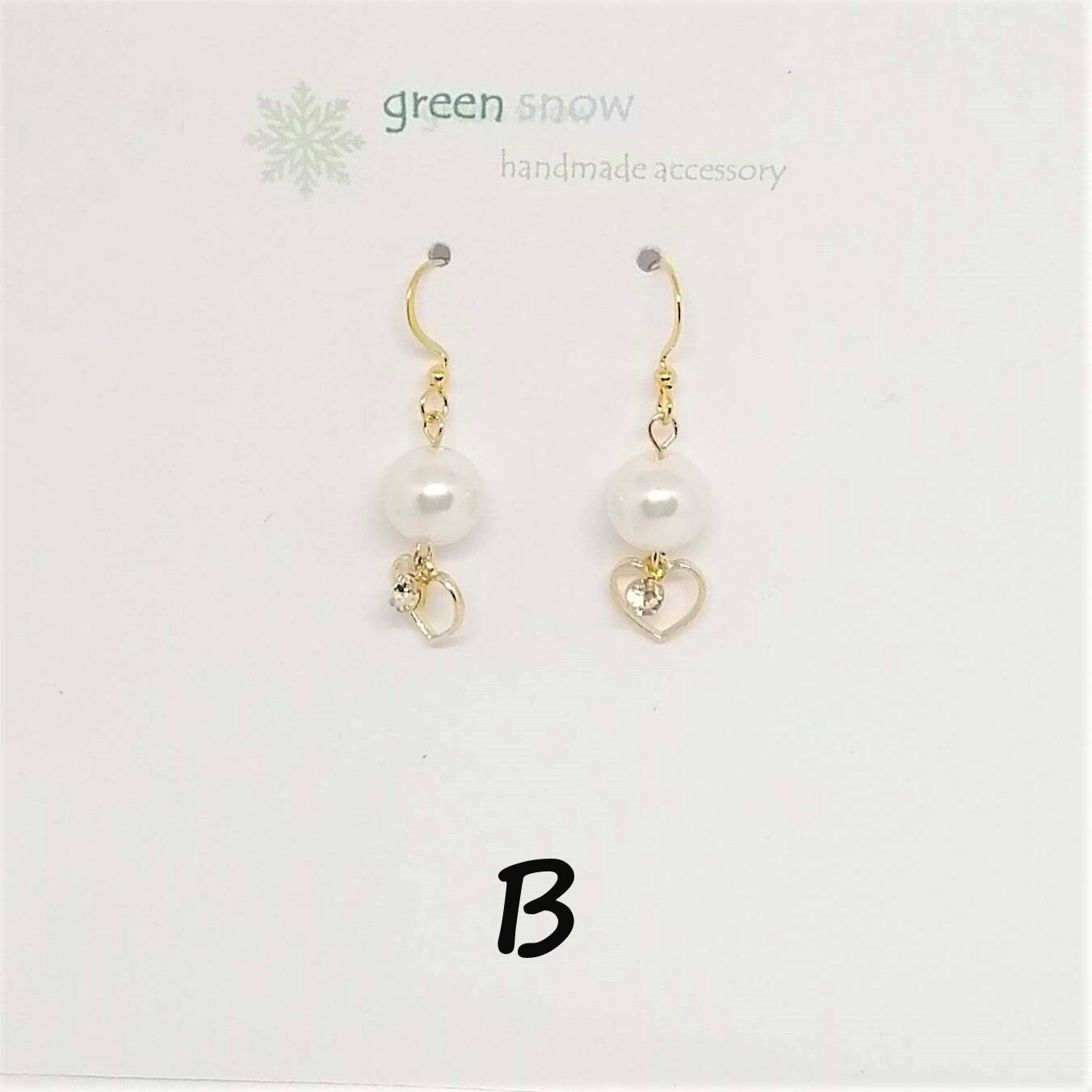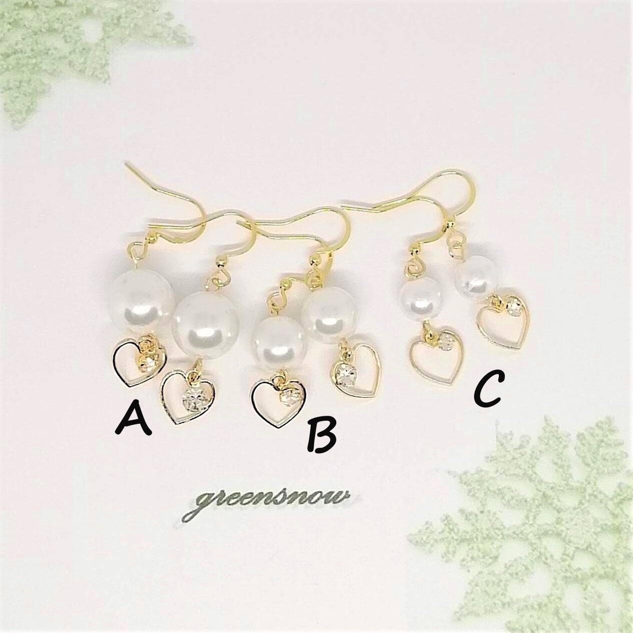 パール×ハートのチャーム×ストーンを合わせたピアスです。