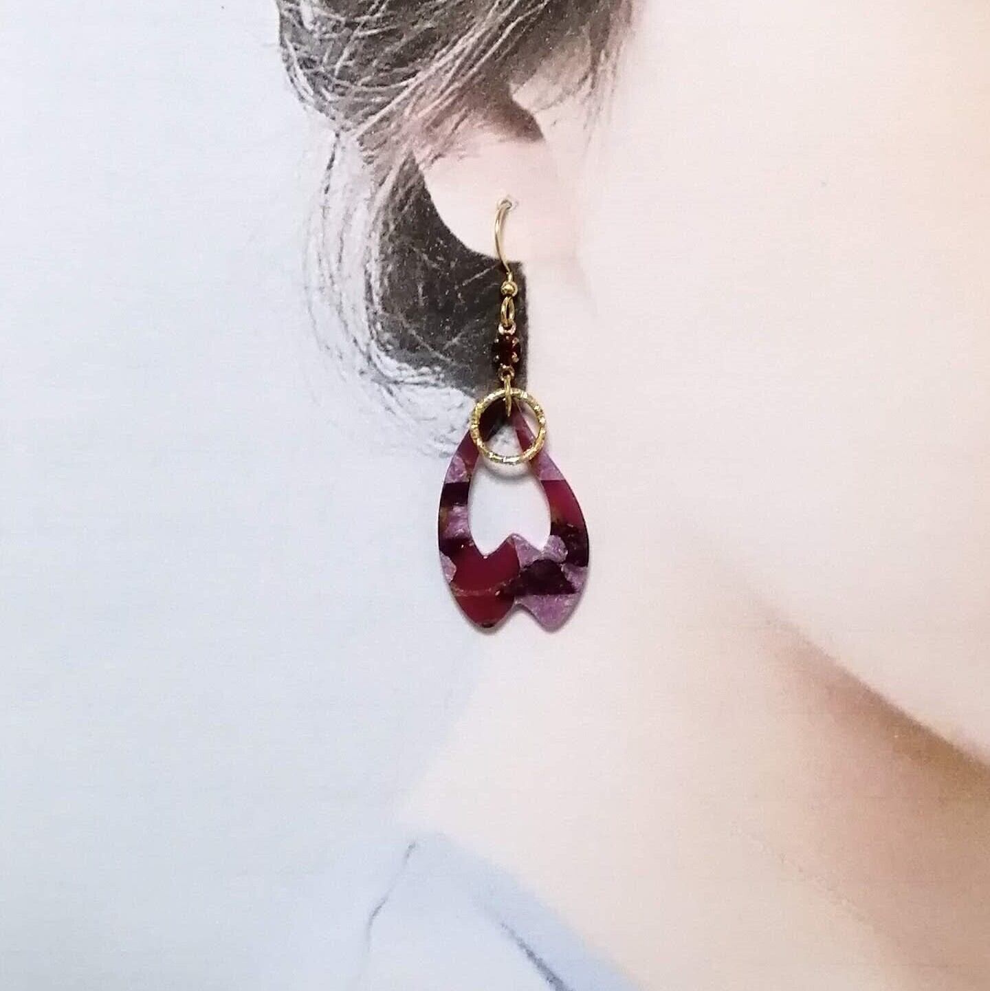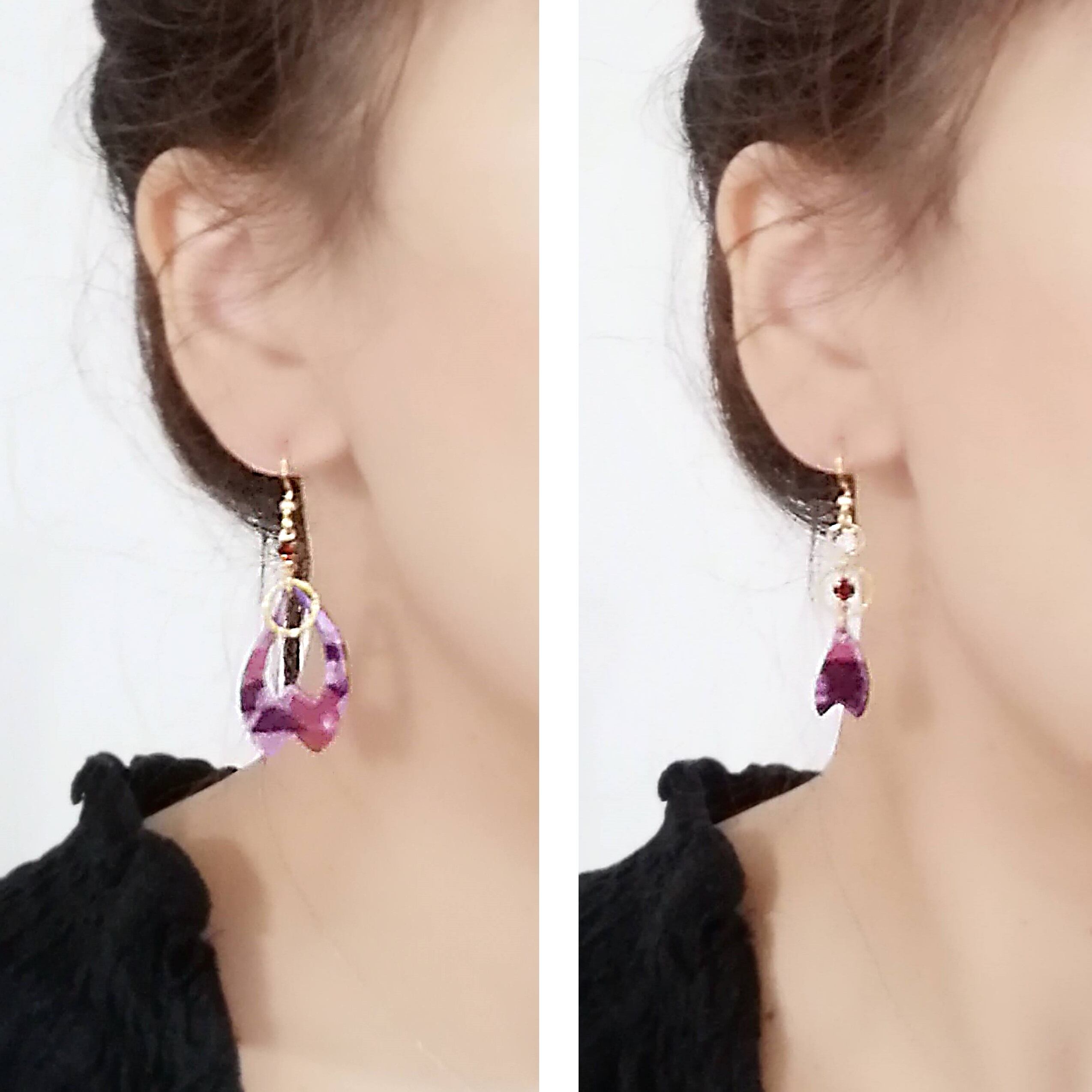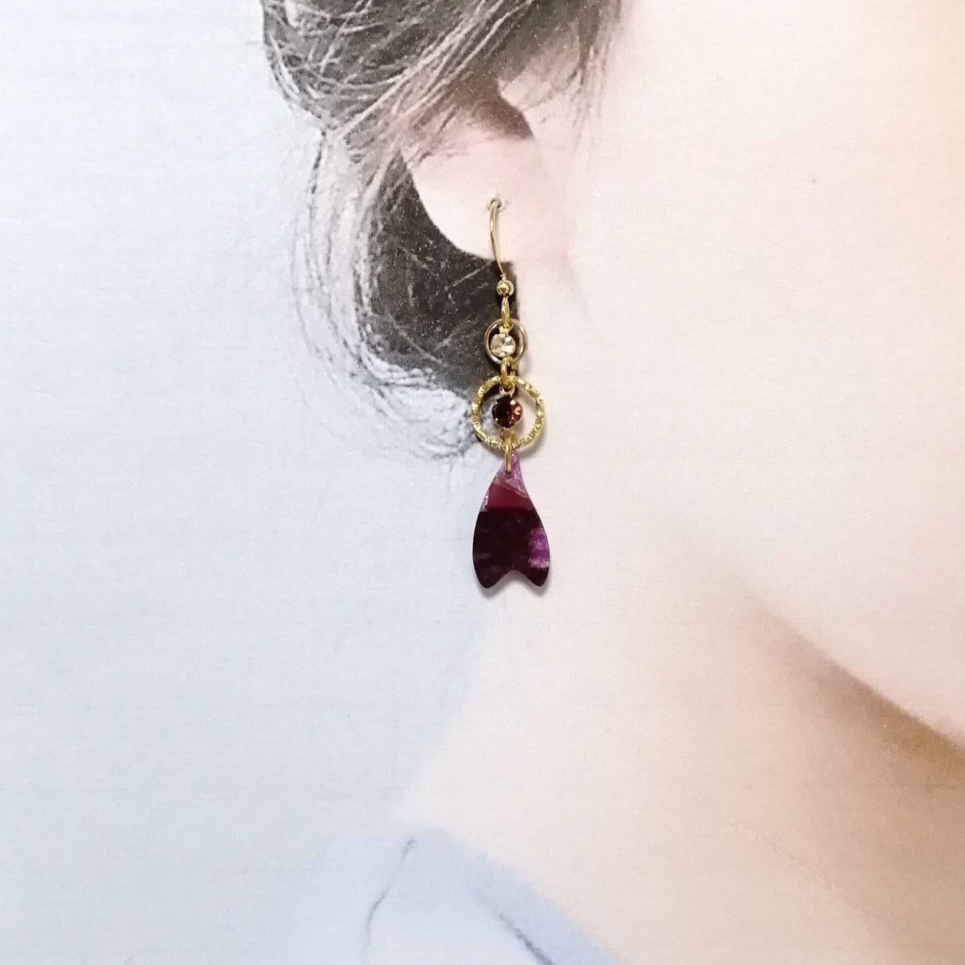パープルハート×ツイストラウンド×ストーンを合わせたピアスです。