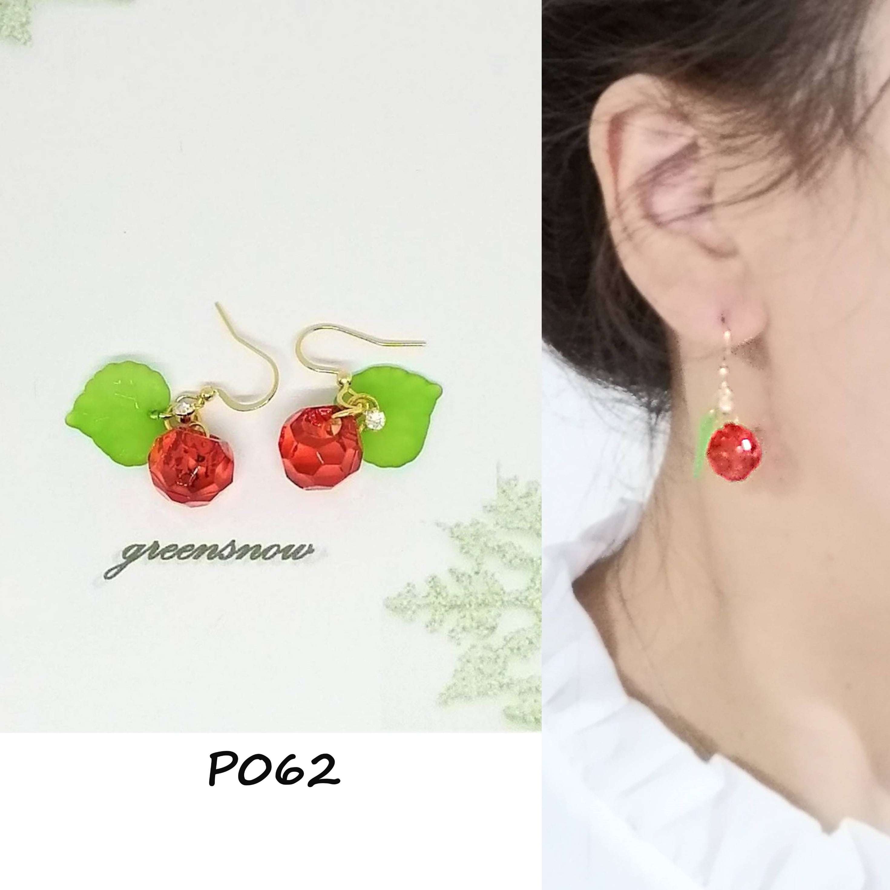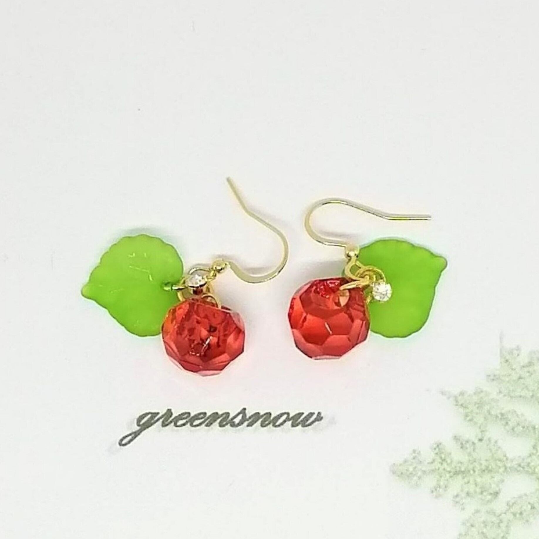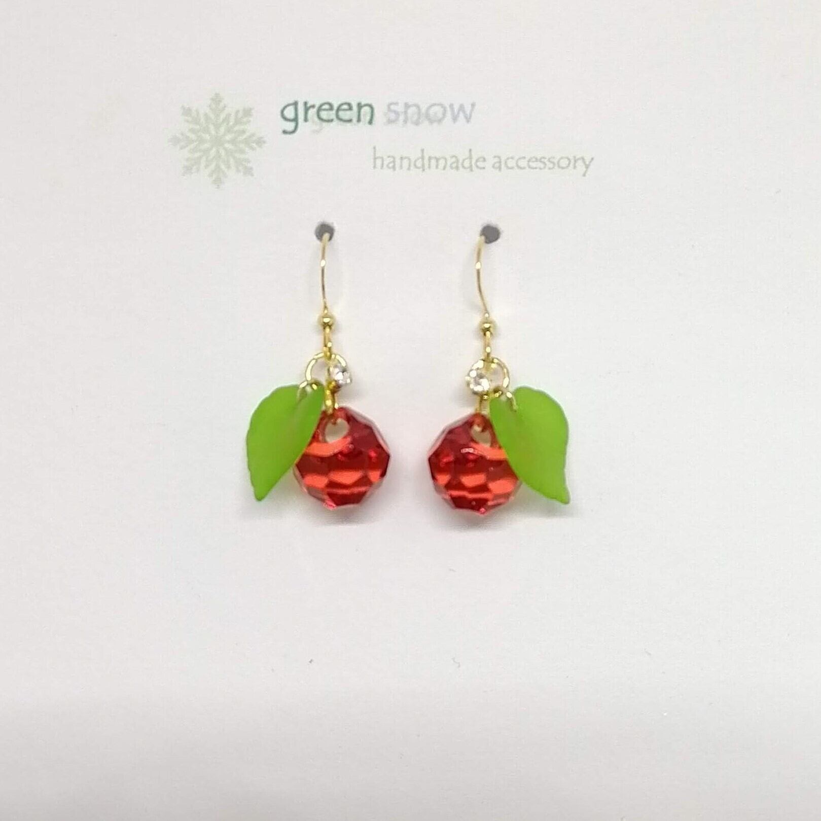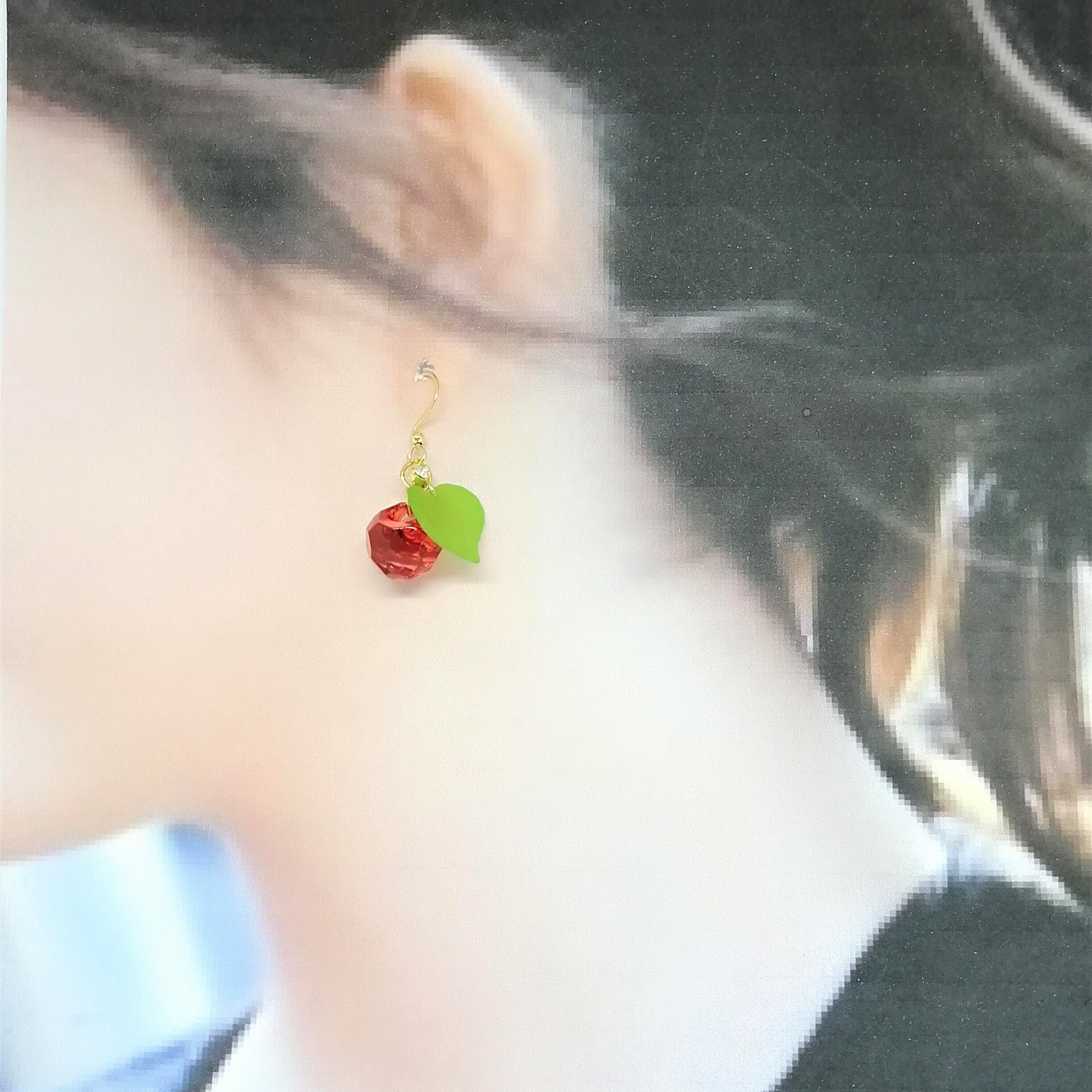 【サージカルステンレス ピアス】キラキラ 爽やかな りんご リンゴ イアリング変更可