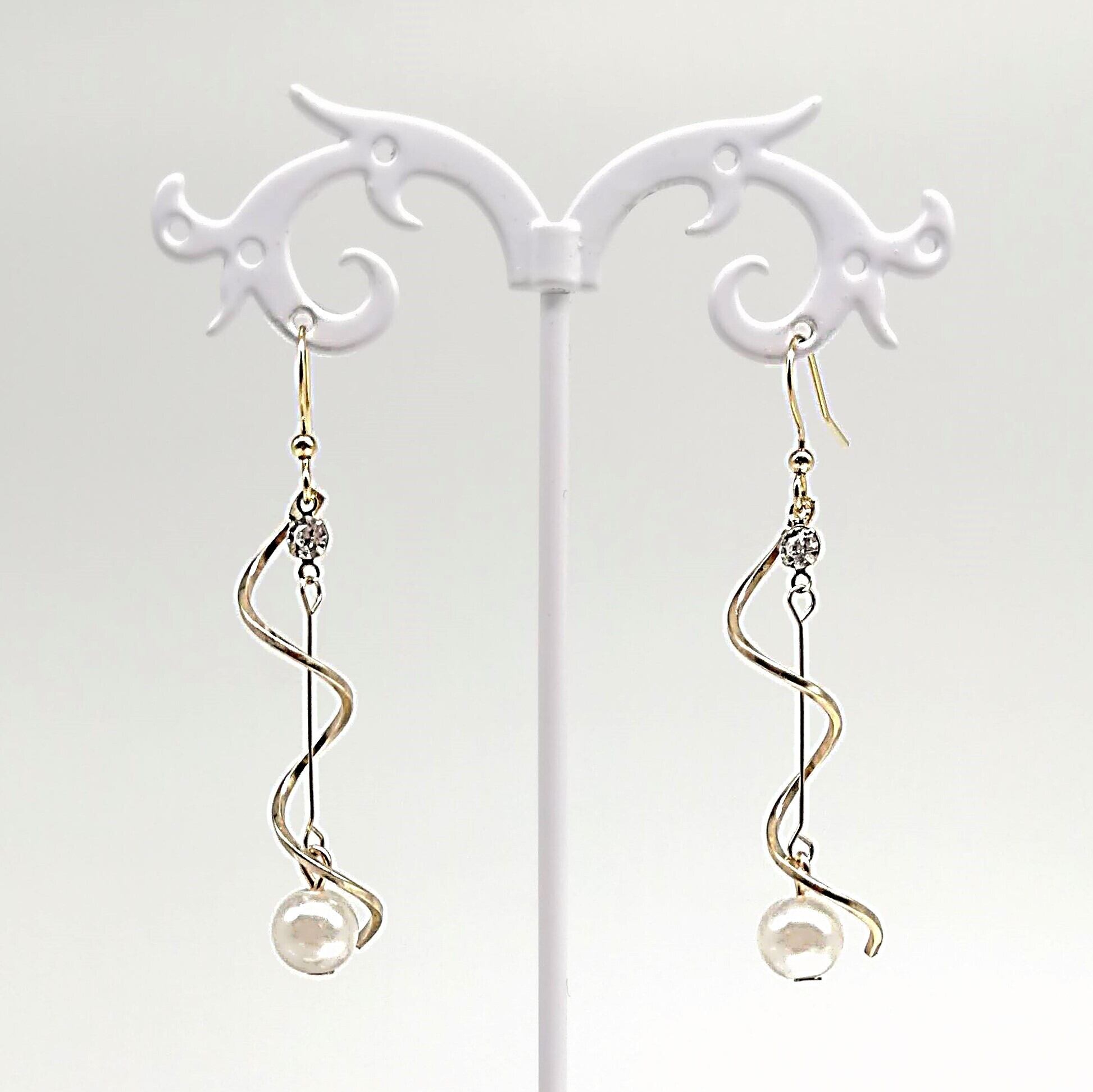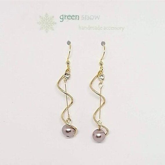 メタル ウェーブスティック×パール×ストーンをあわせたピアスです。