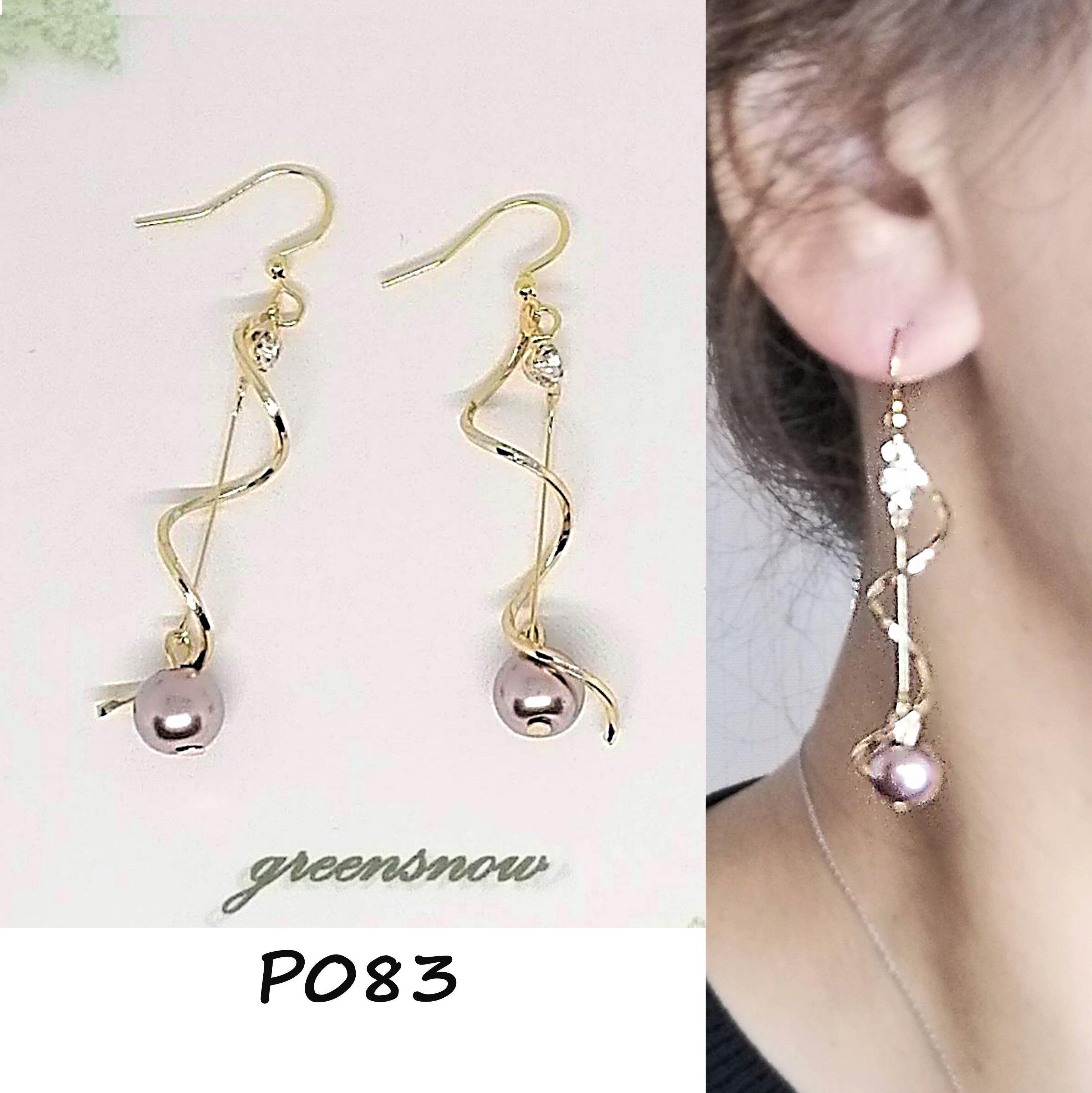 【サージカルステンレス ピアス】メタルウェーブ パール ストーン イアリング変更可