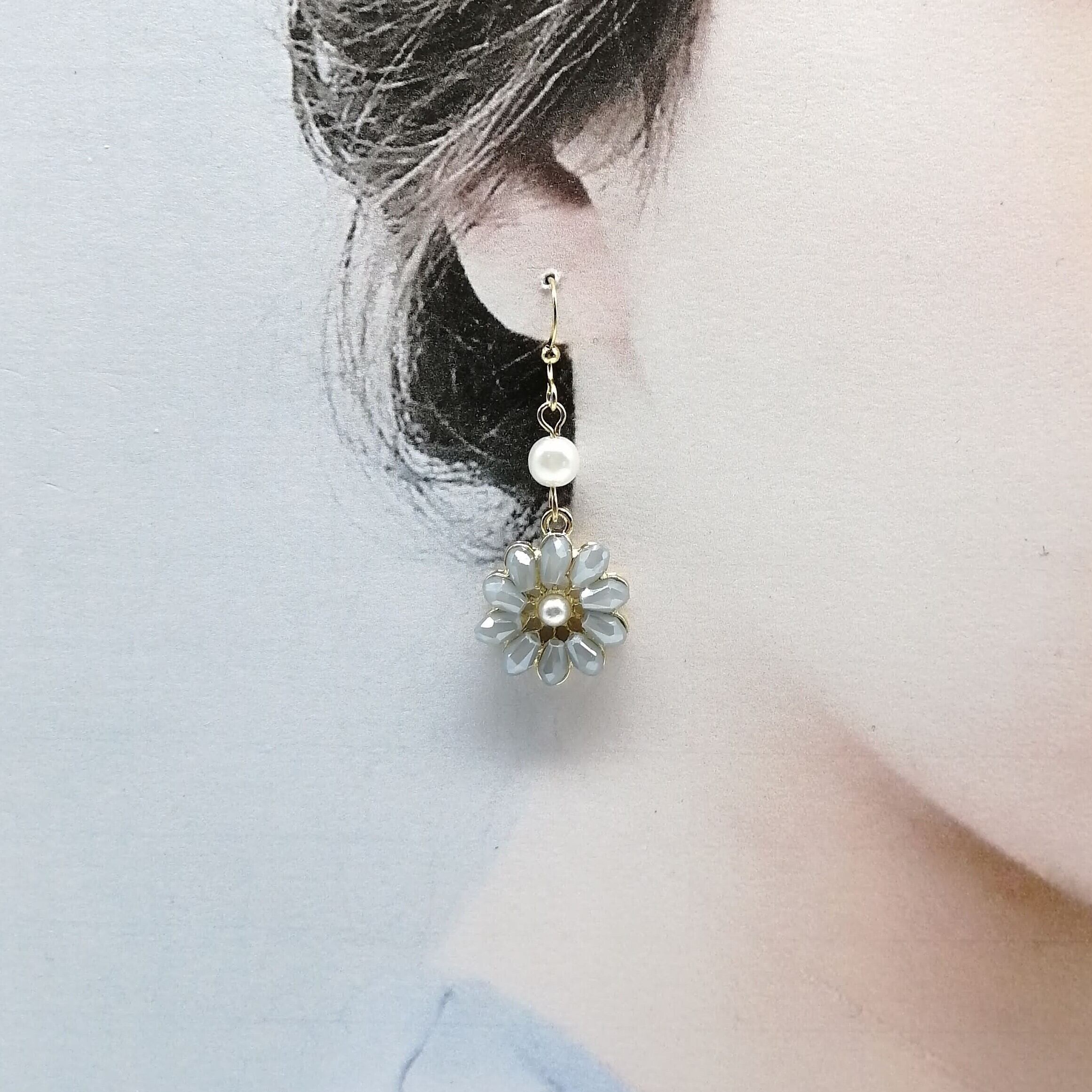 パール付きフラワー ガラスビーズ×パールを合わせたピアスです。