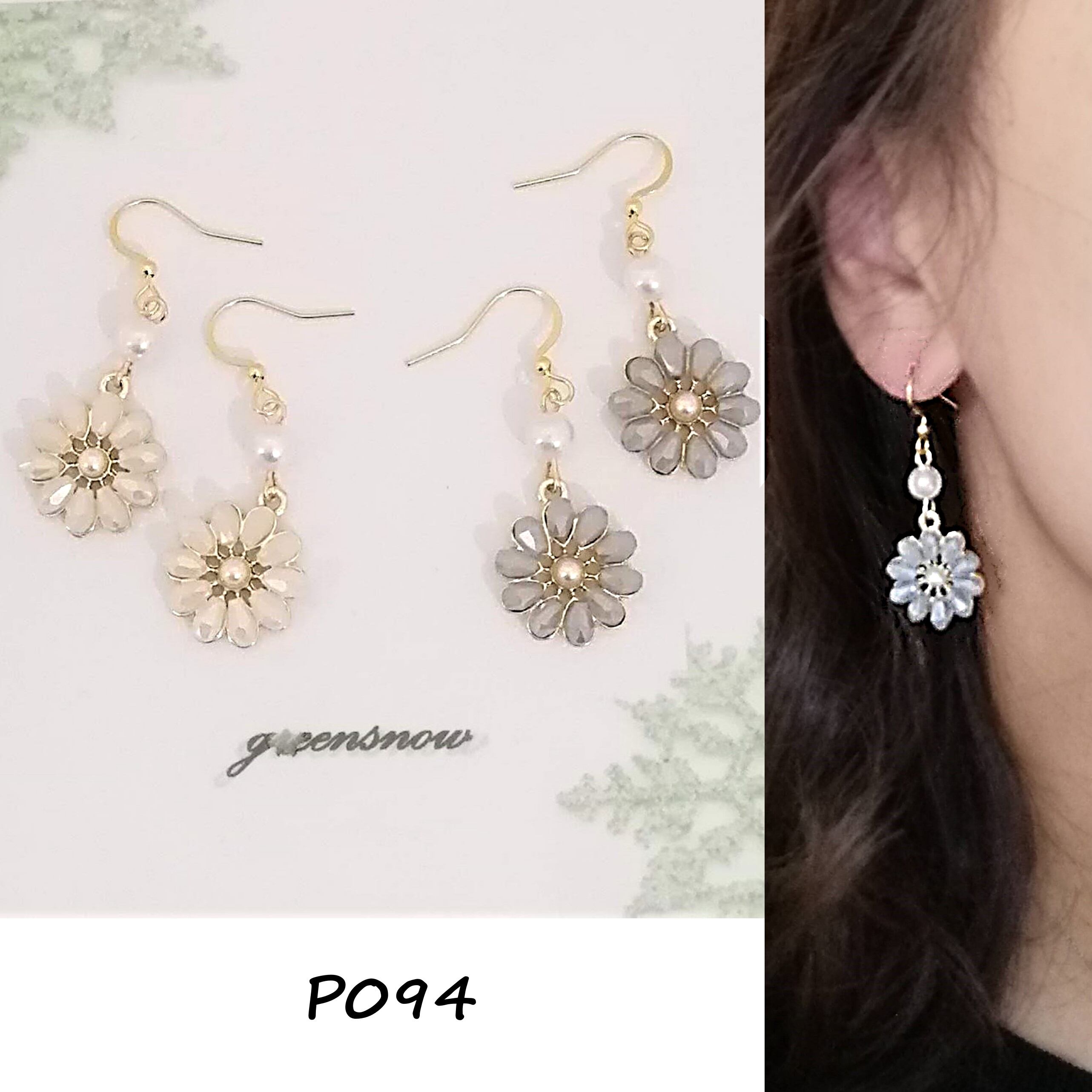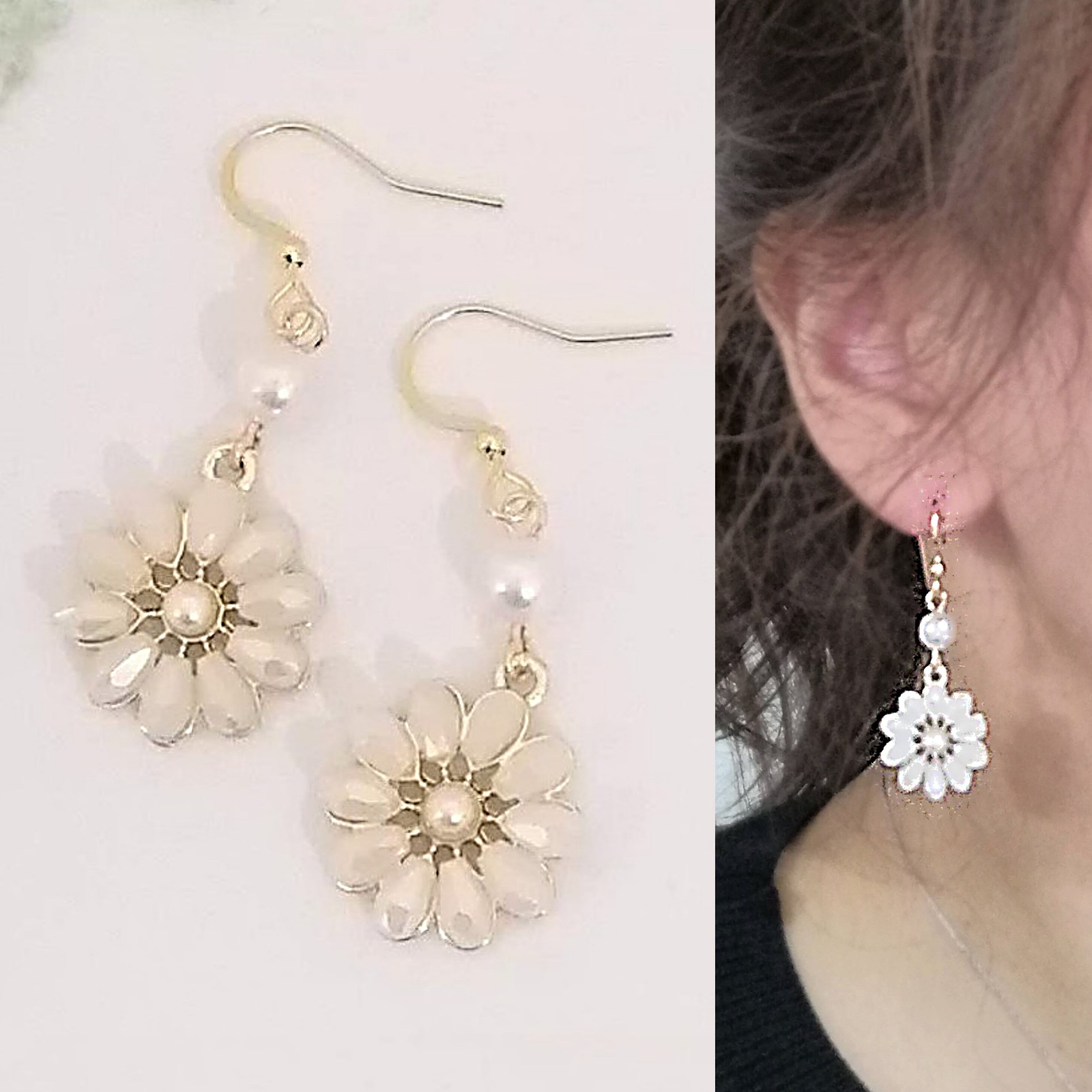 【サージカルステンレス ピアス】パール付きフラワー ガラスビーズ イアリング変更可