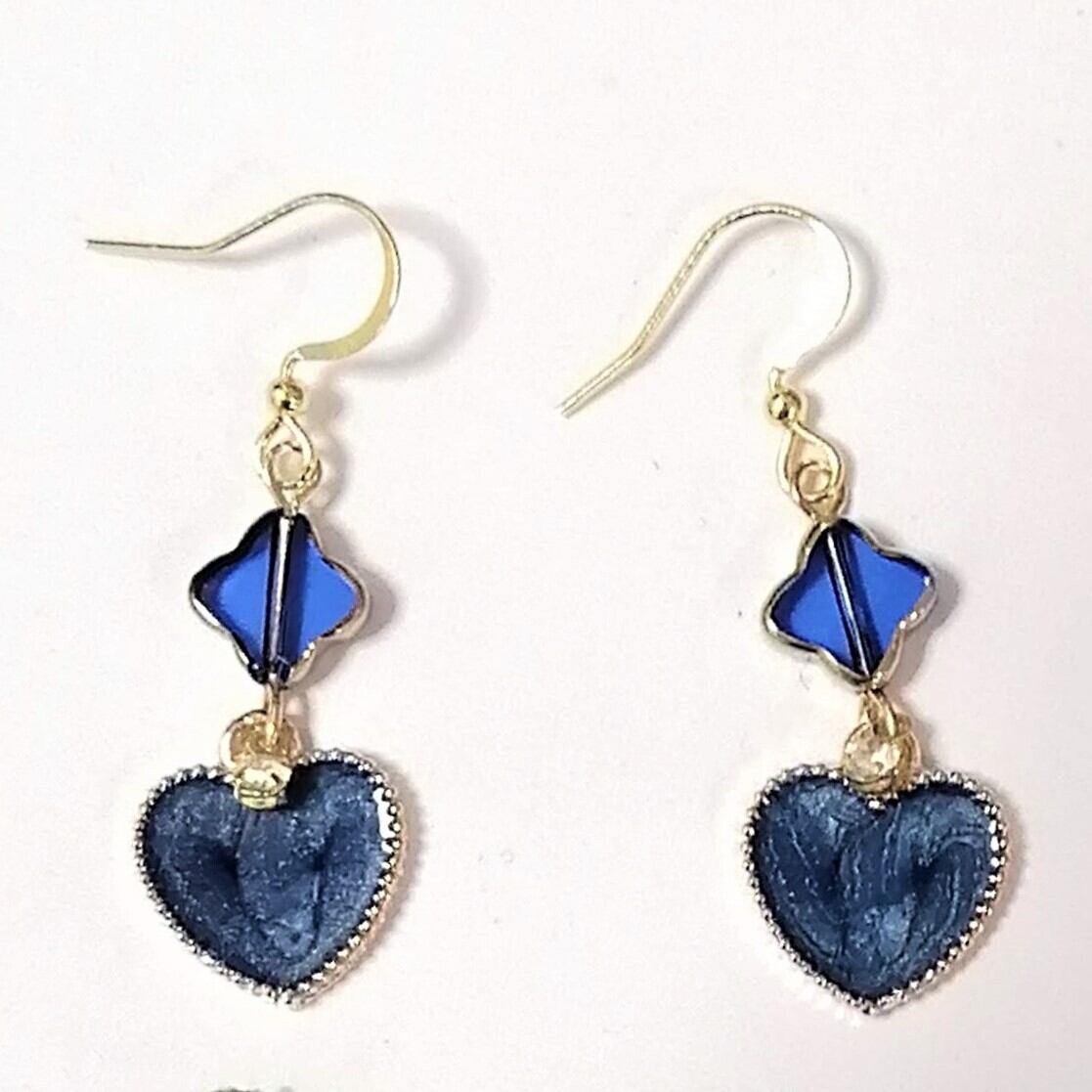 クローバー形のガラスビーズ×ブルーハートを合わせたピアスです。