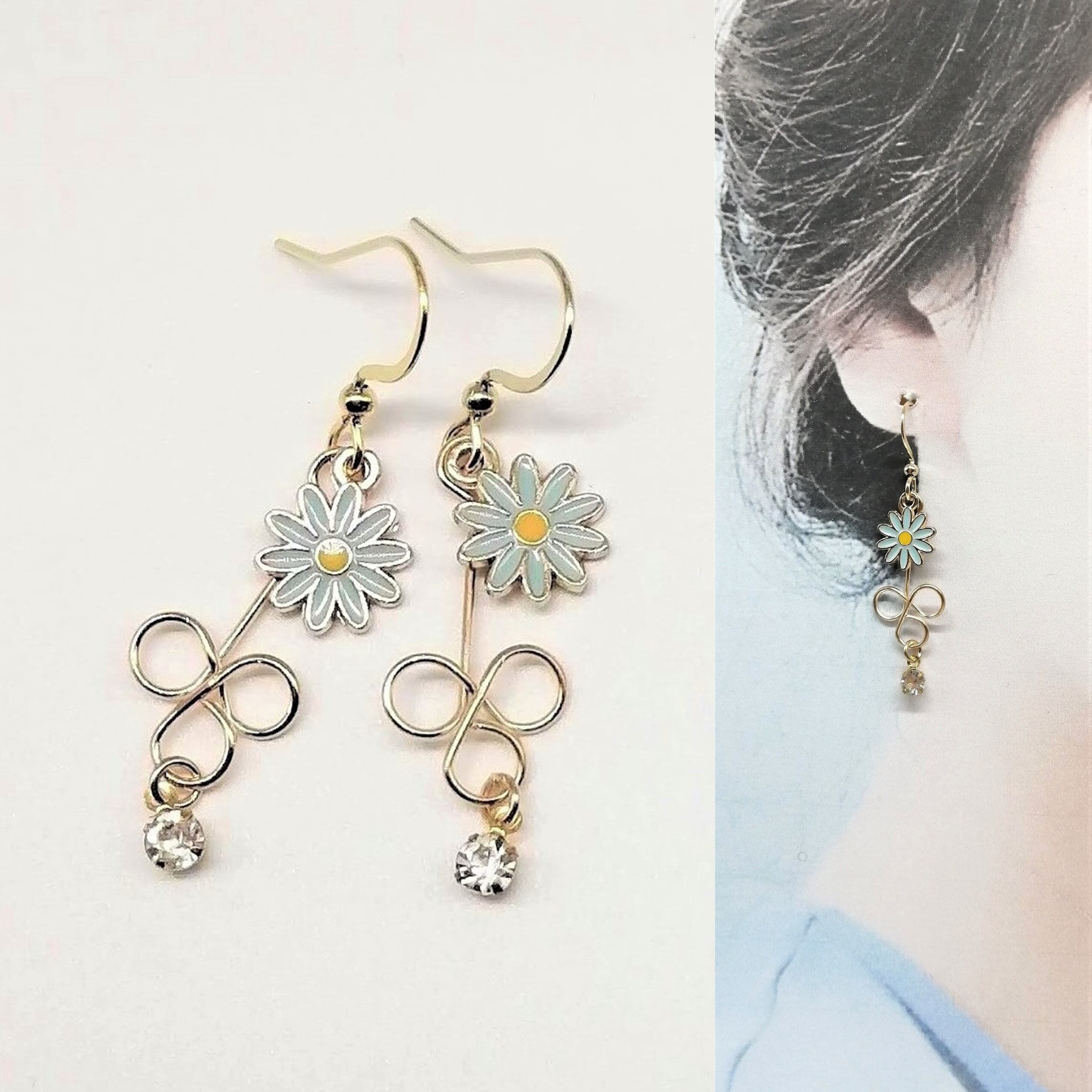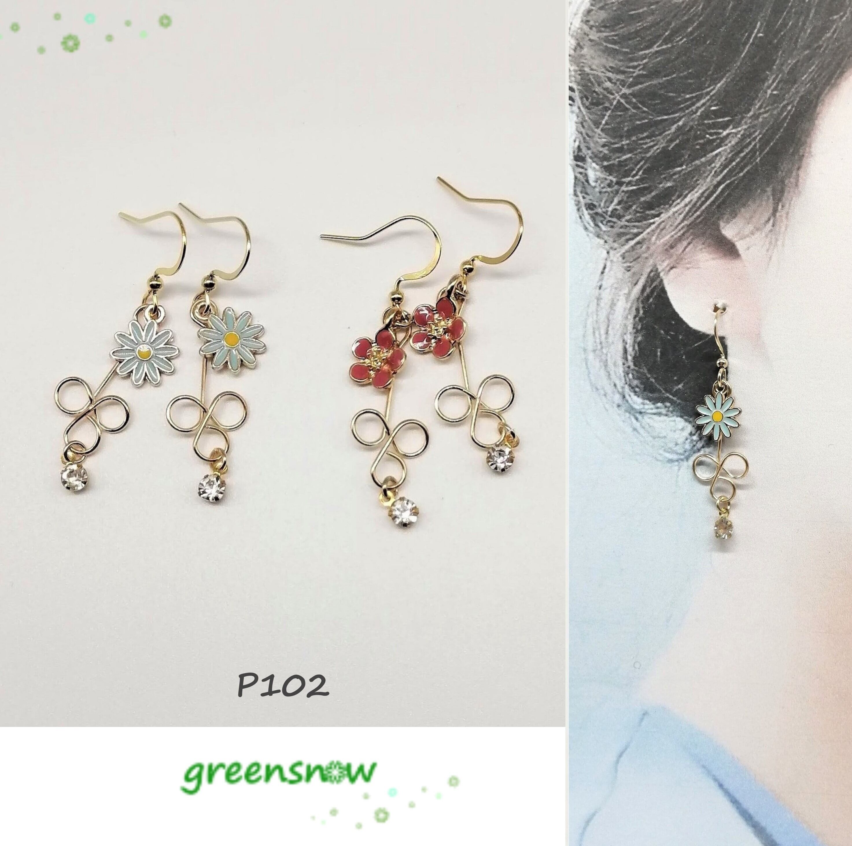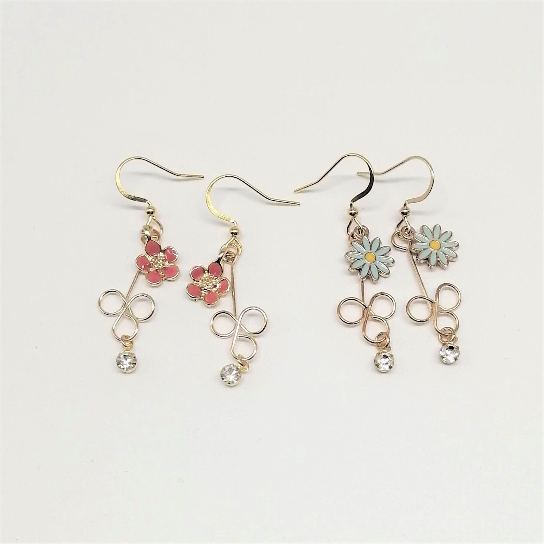 小さめのフラワーのエポチャーム×螺旋チャーム×ストーンを合わせたピアスです。