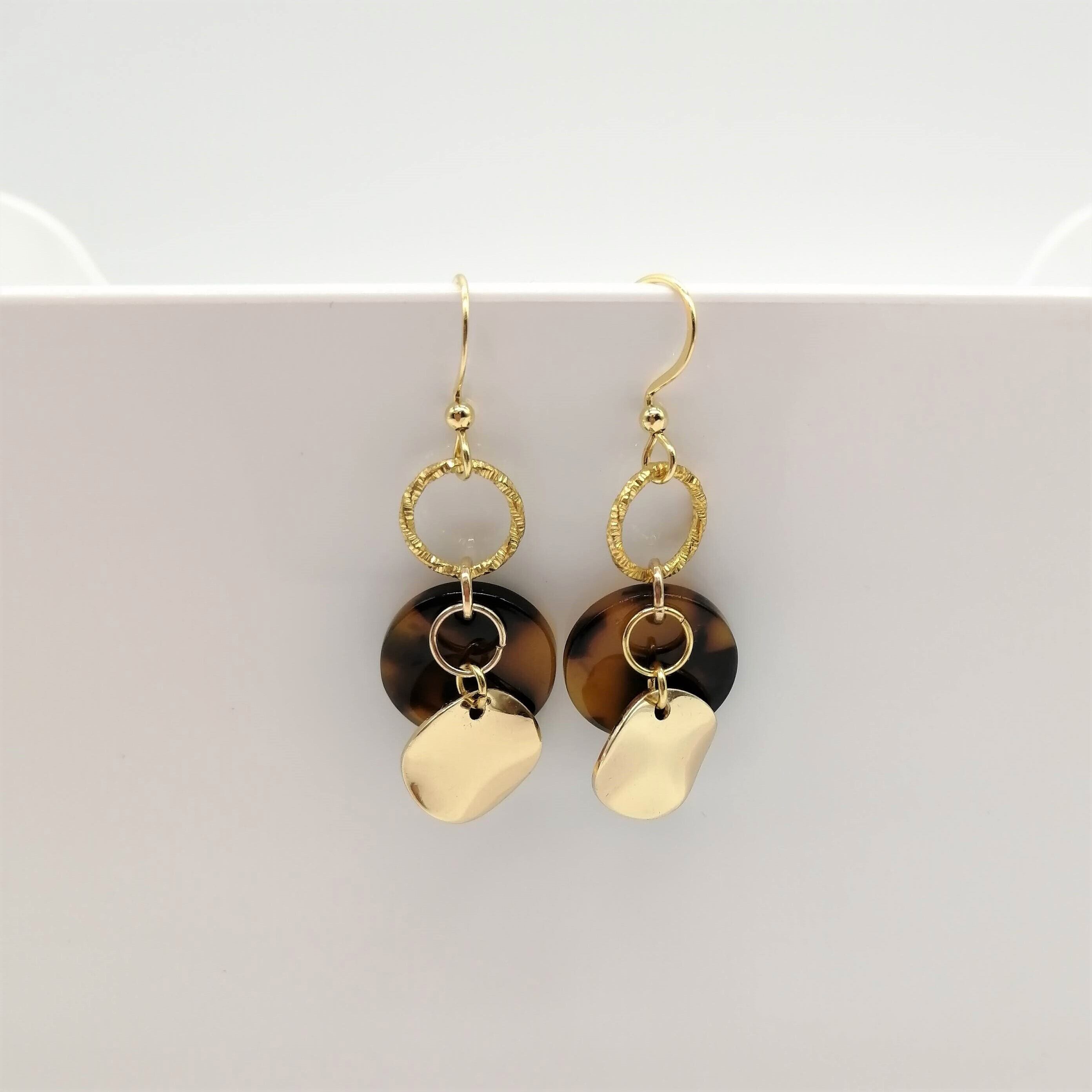 ツイストラウンド×ブラウンべっ甲風マーブル×ゴールドプレートを合わせたピアスです。