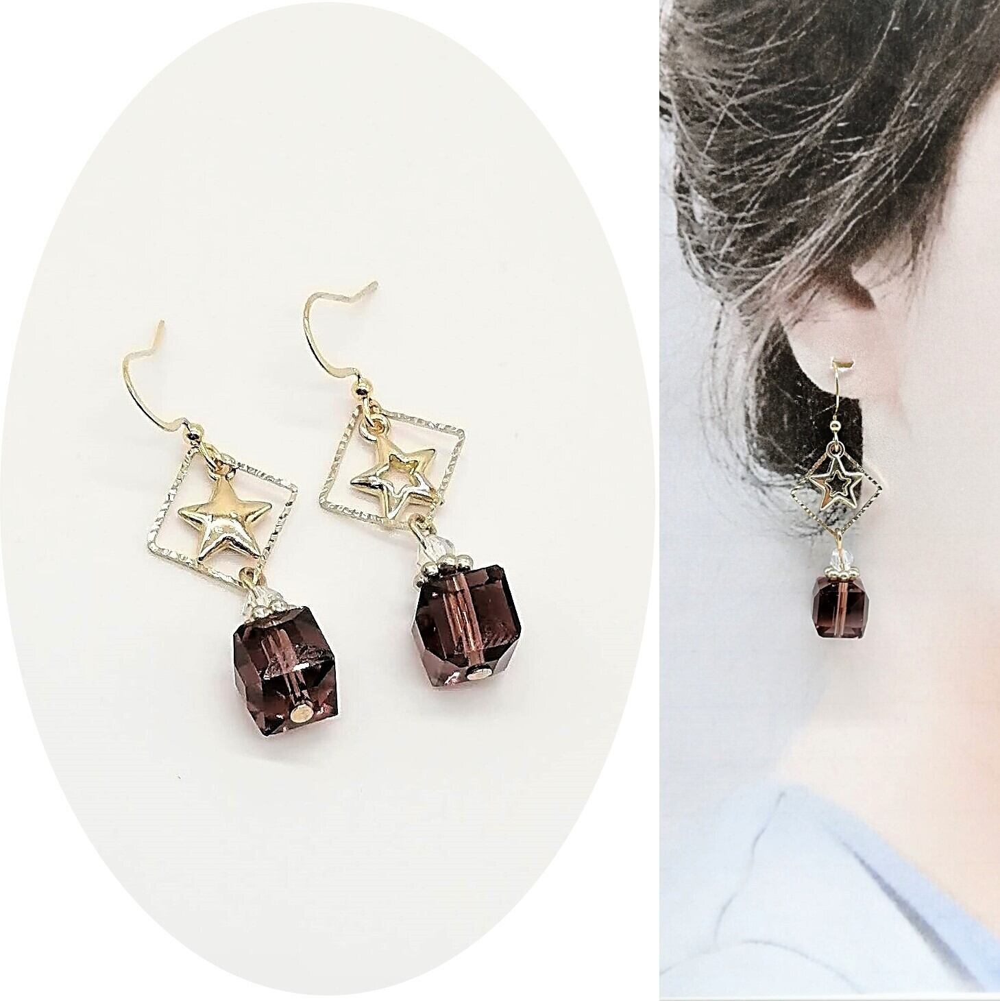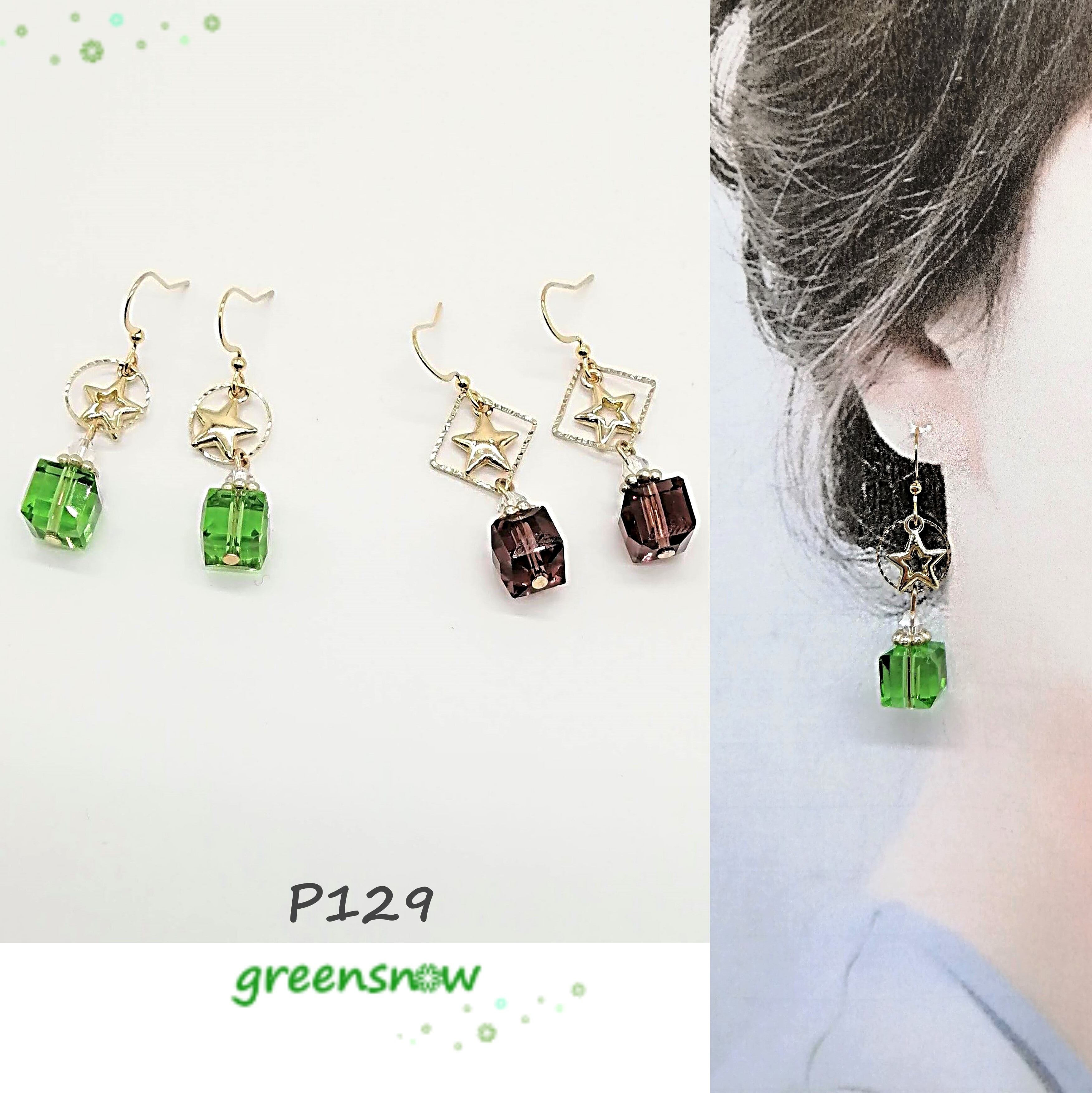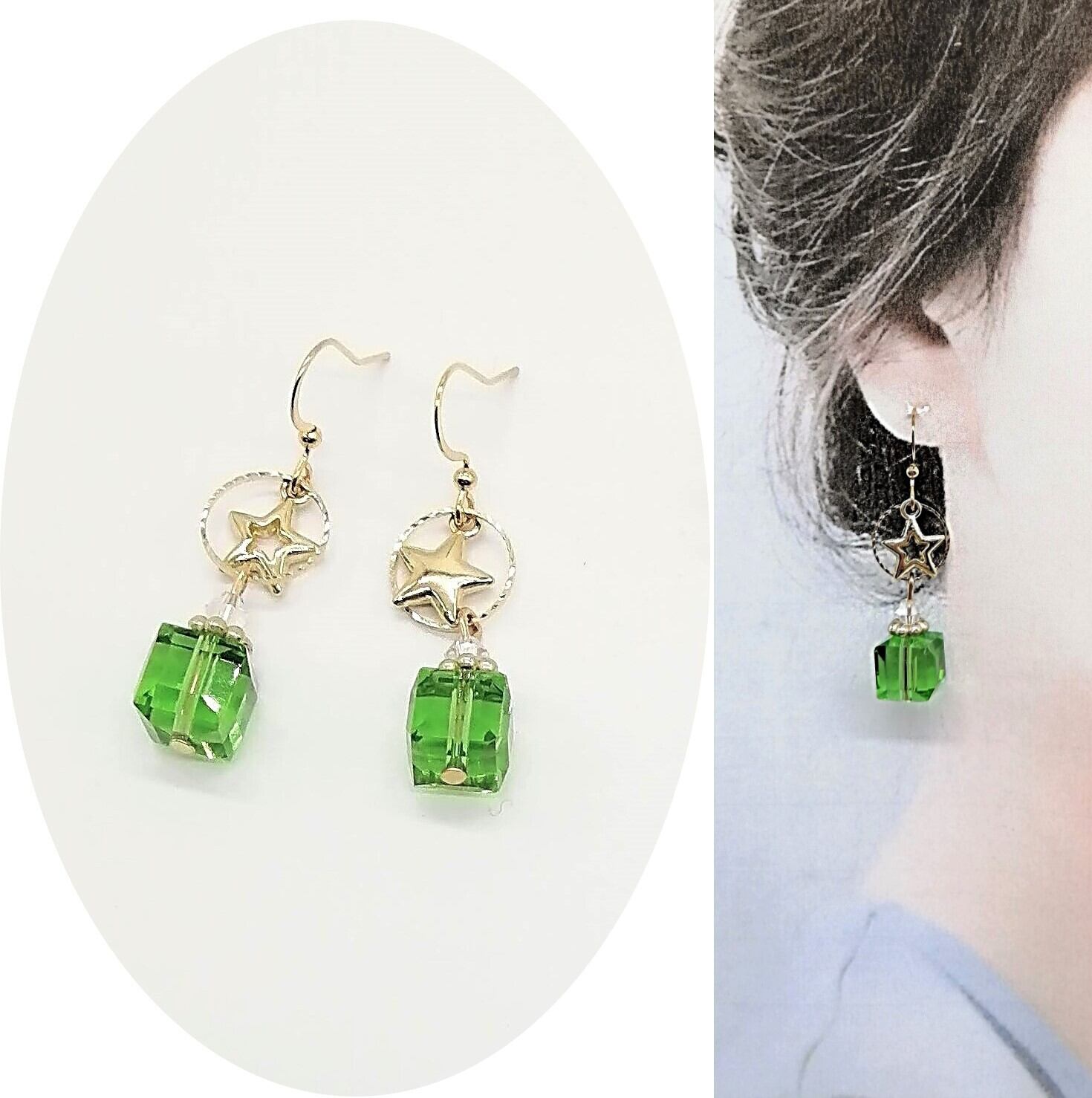 【サージカルステンレス ピアス】星 グリーン パープル キューブボックス イアリング変更可
