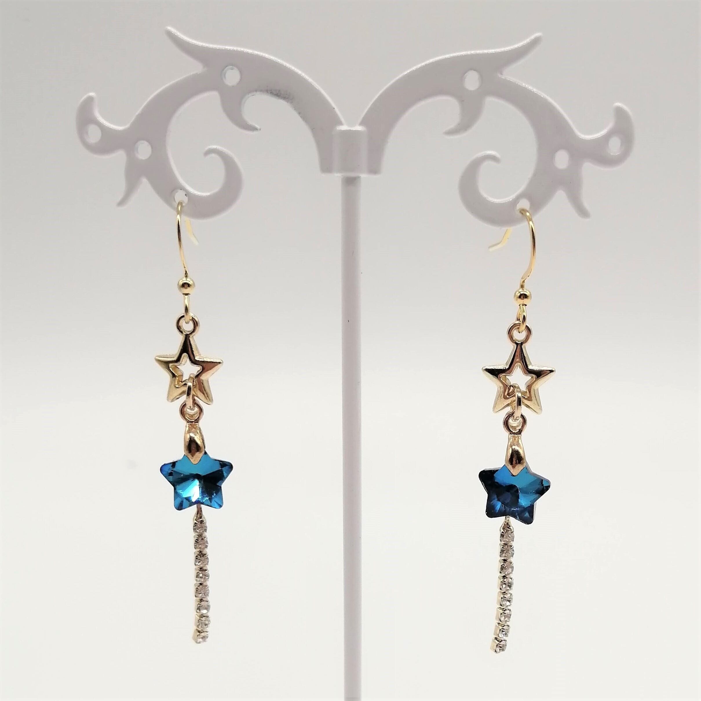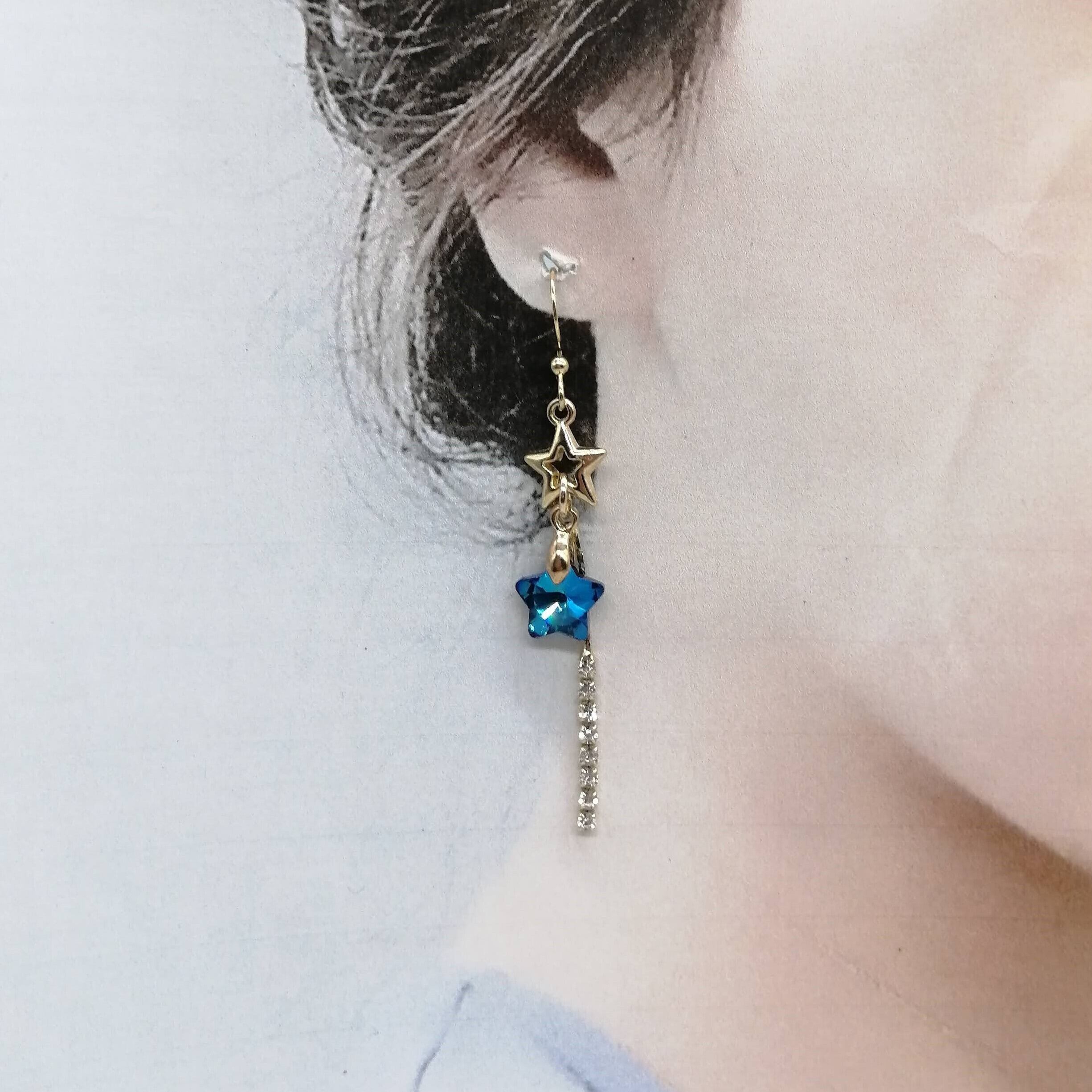 【サージカルステンレス ピアス】ブルー 星 ストーンチェーン イアリング変更可