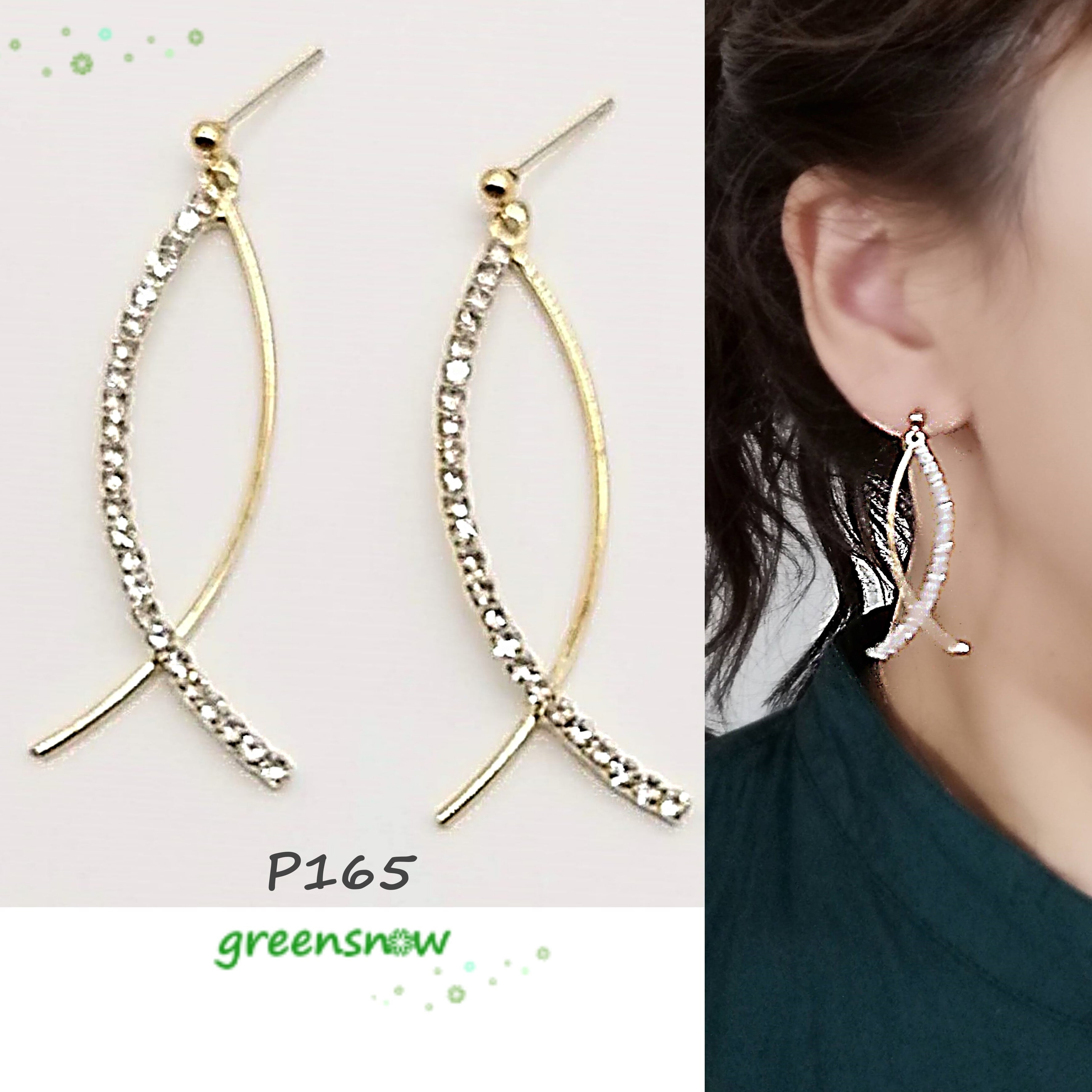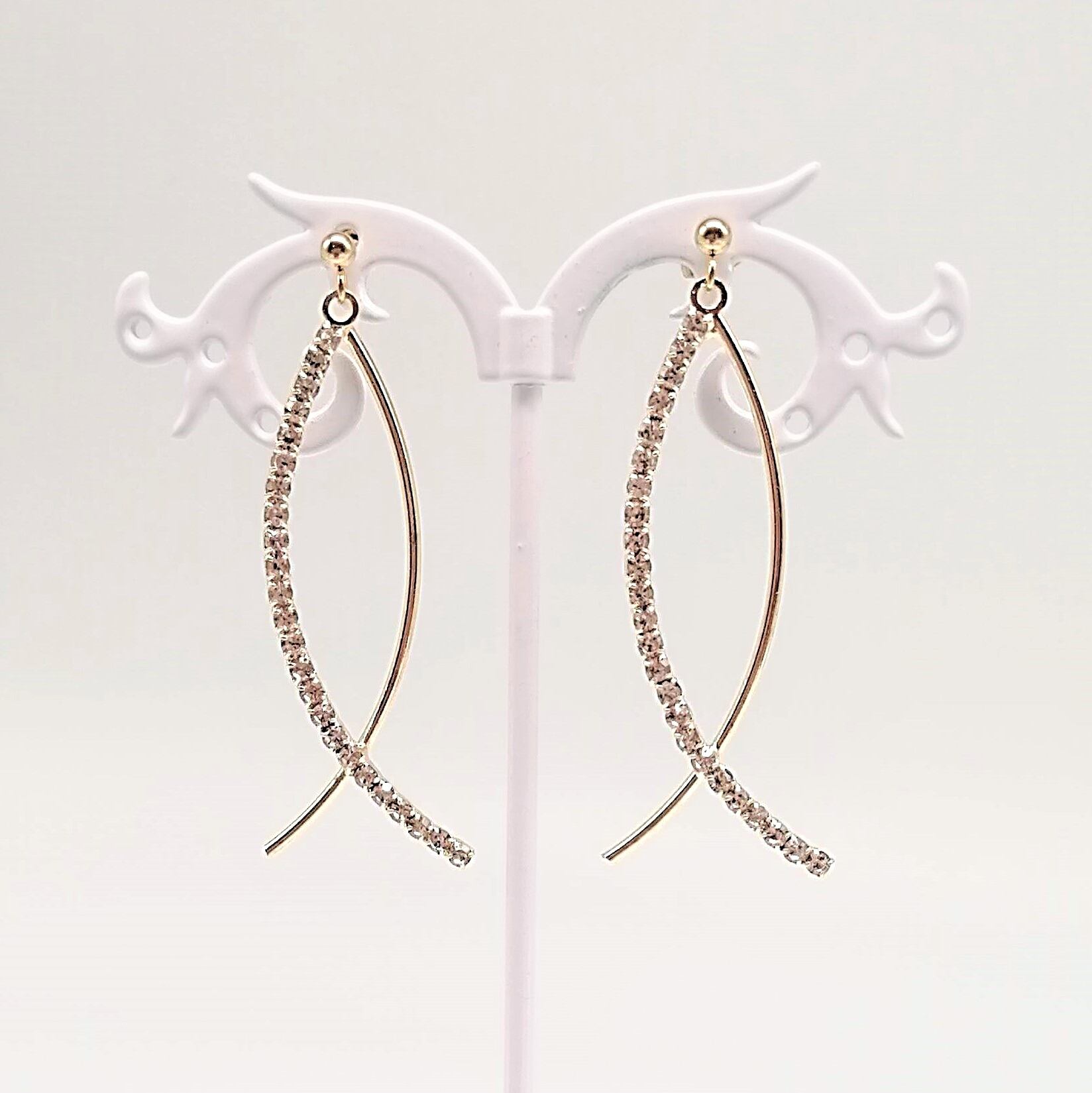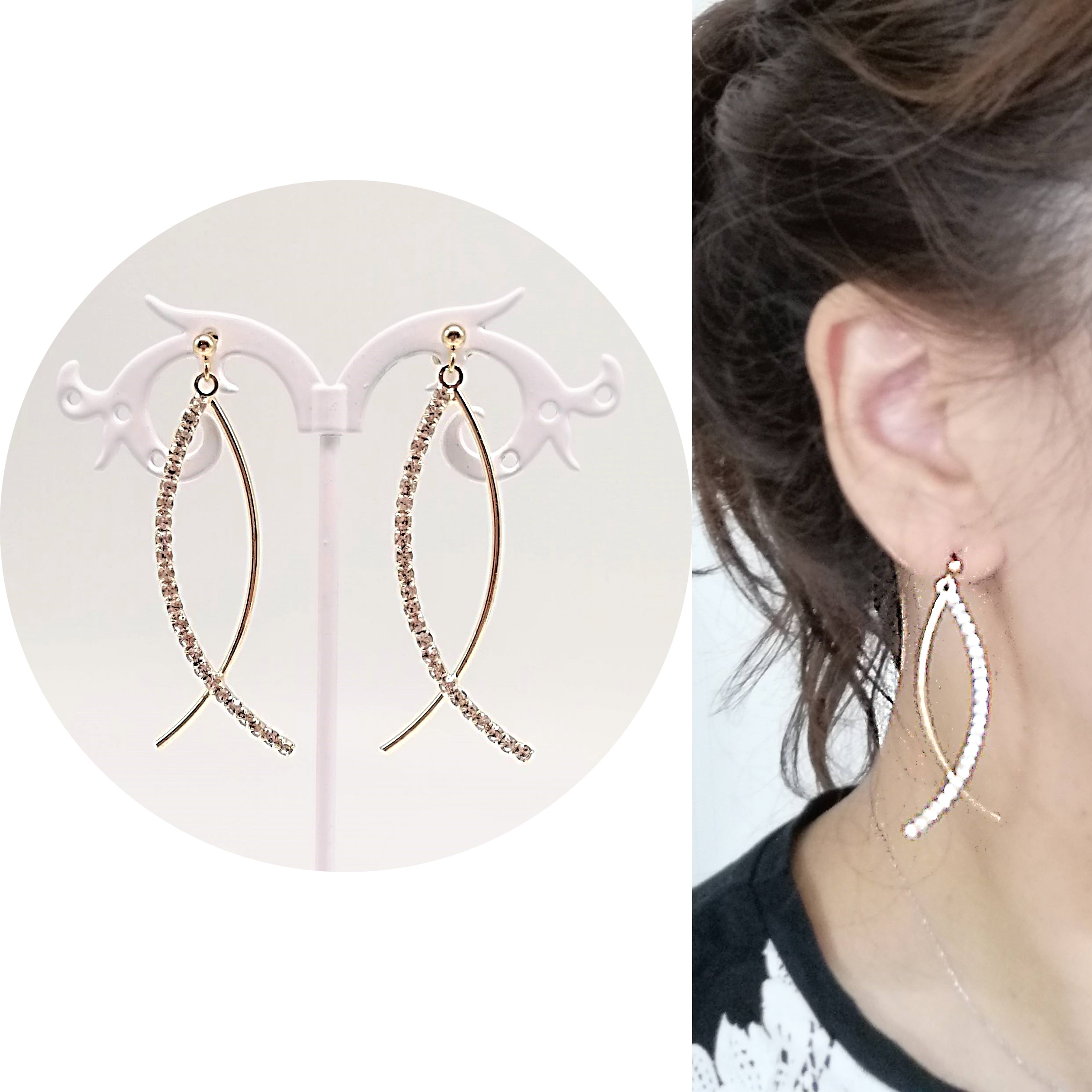 【サージカルステンレス ピアス】ラインストーン スティック ホワイト イアリング変更可