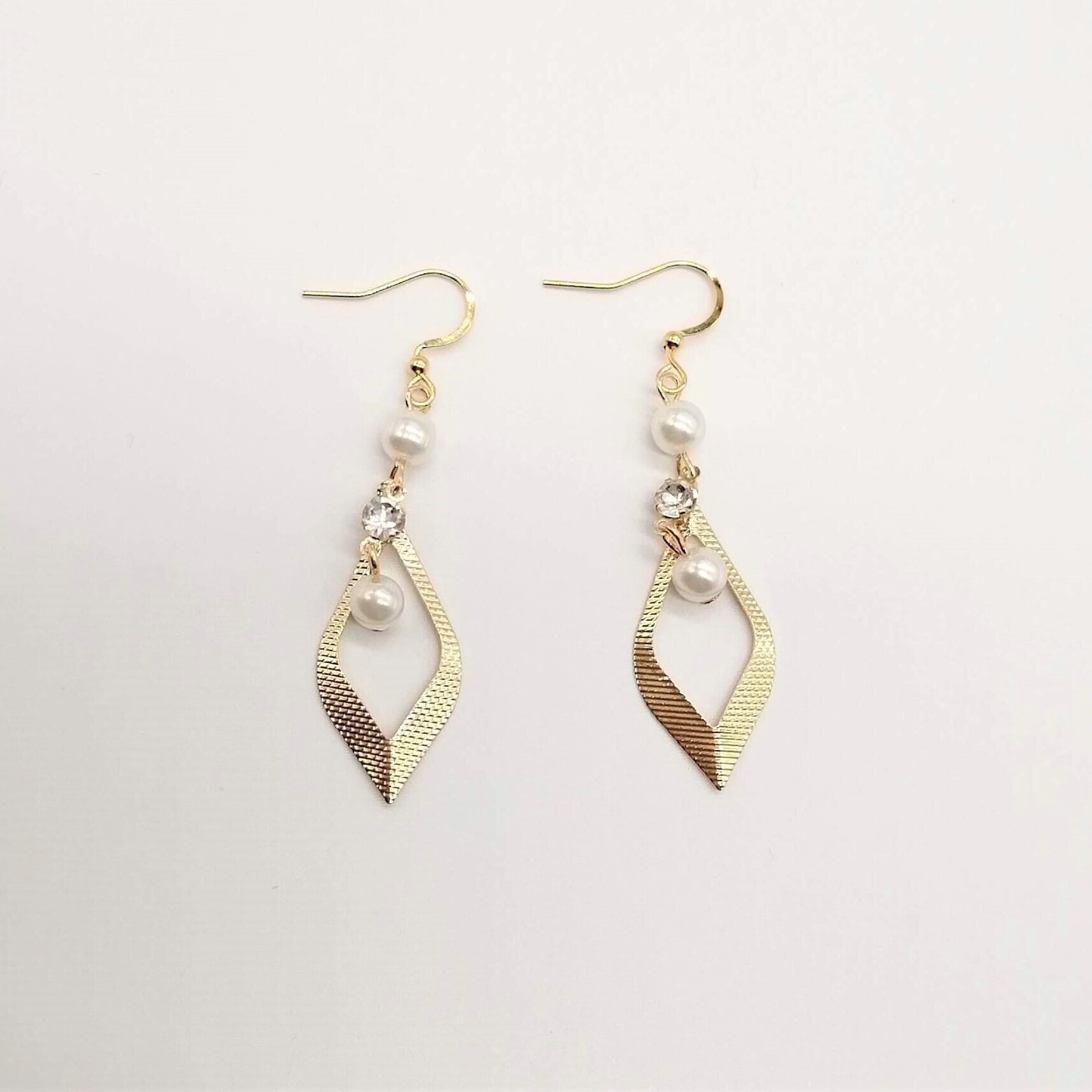【サージカルステンレス ピアス】幾何チャーム ホワイト パール ストーン イアリング変更可