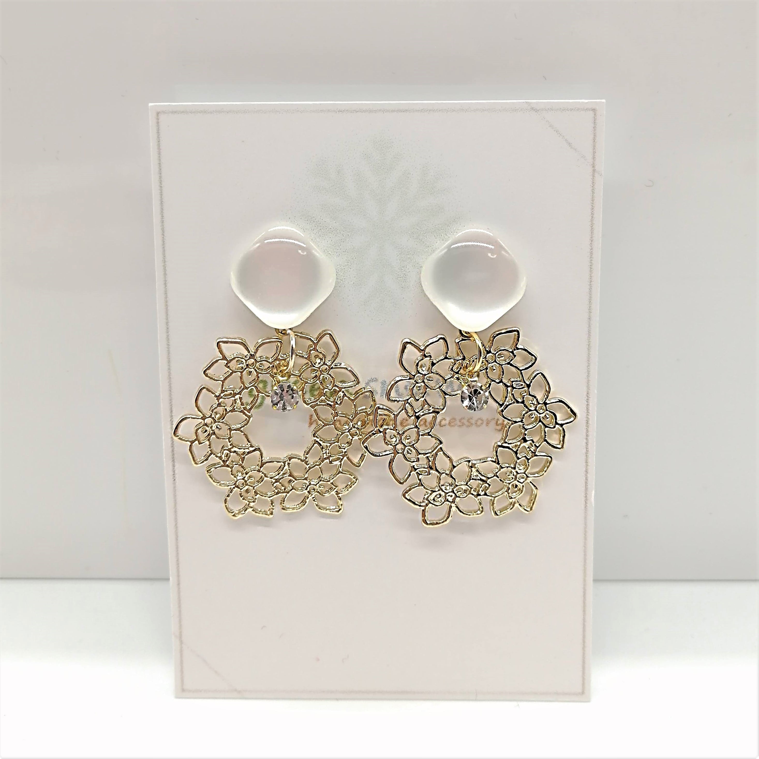 【サージカルステンレス ピアス】ホワイト コイン型パール フラワー イヤリング