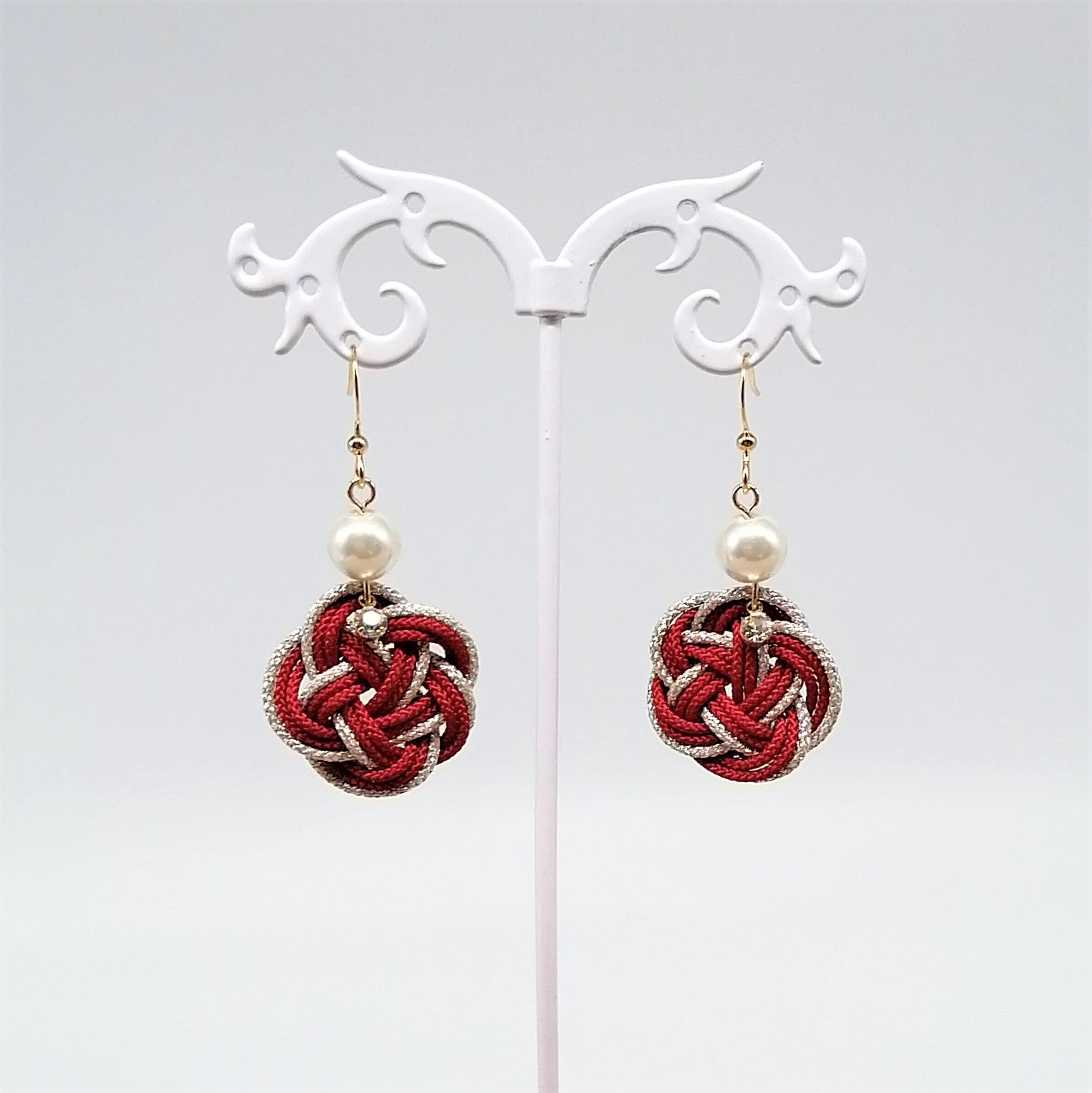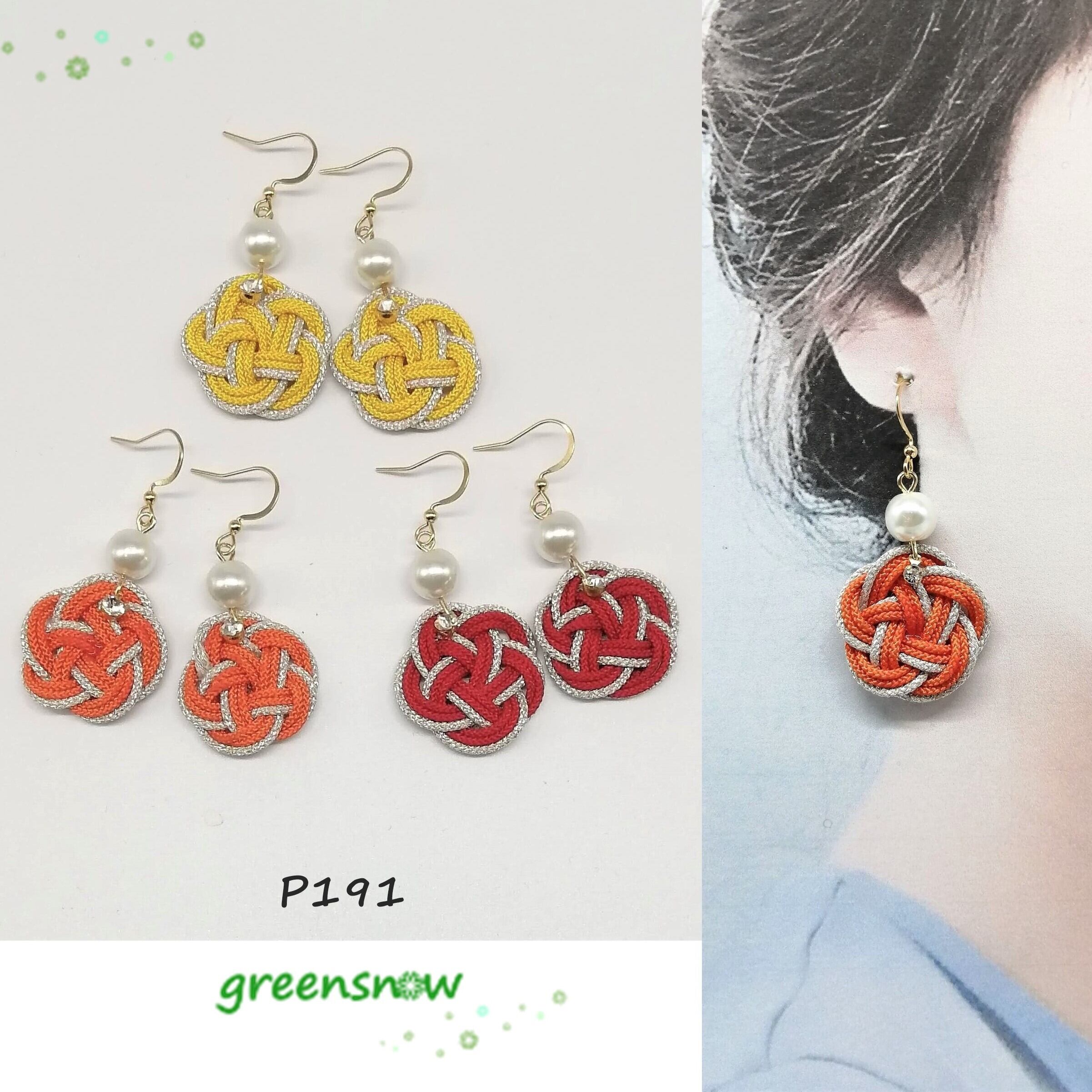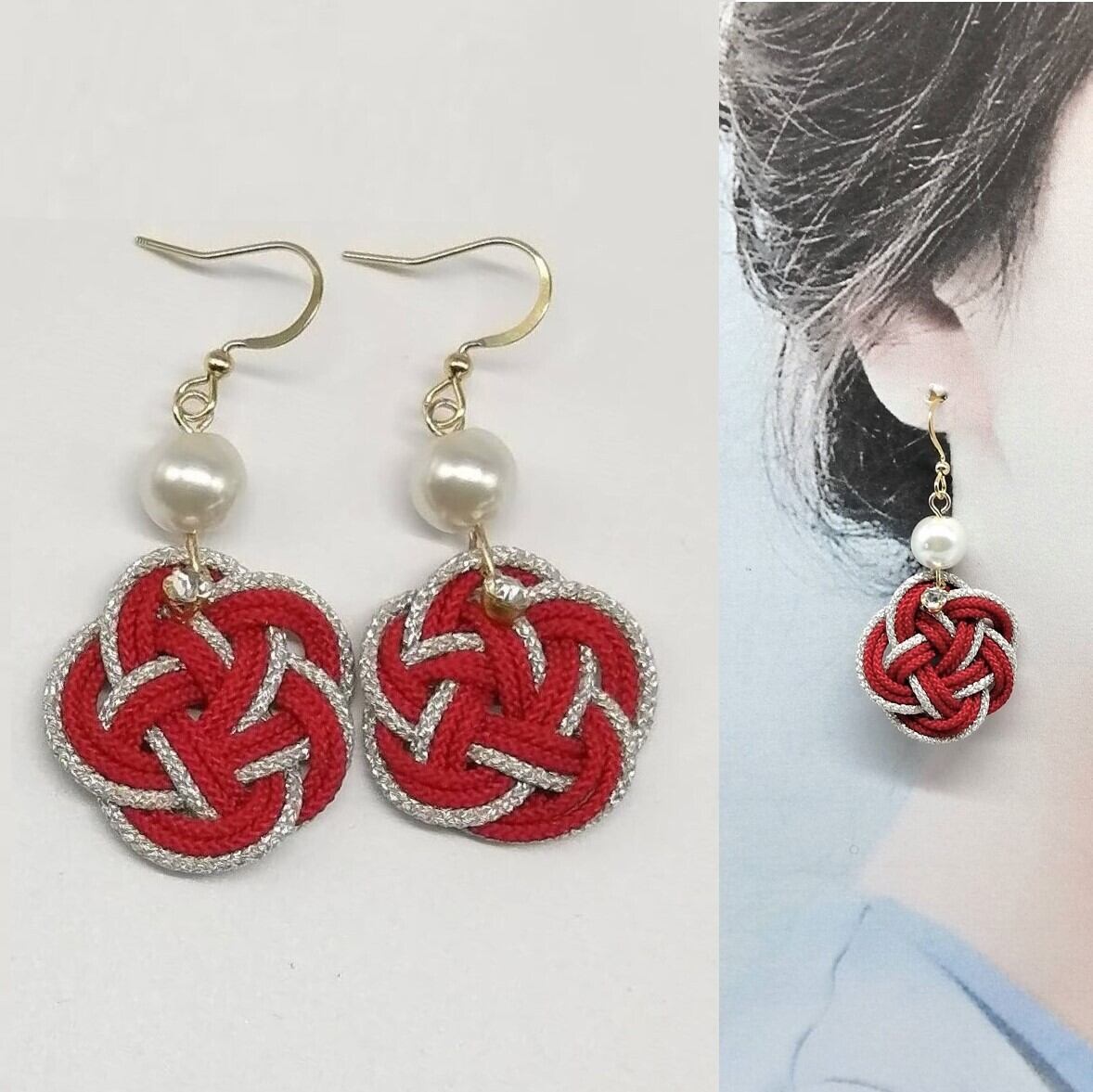 【サージカルステンレス ピアス】水引 黄色 橙色 赤 パール ストーン イヤリング