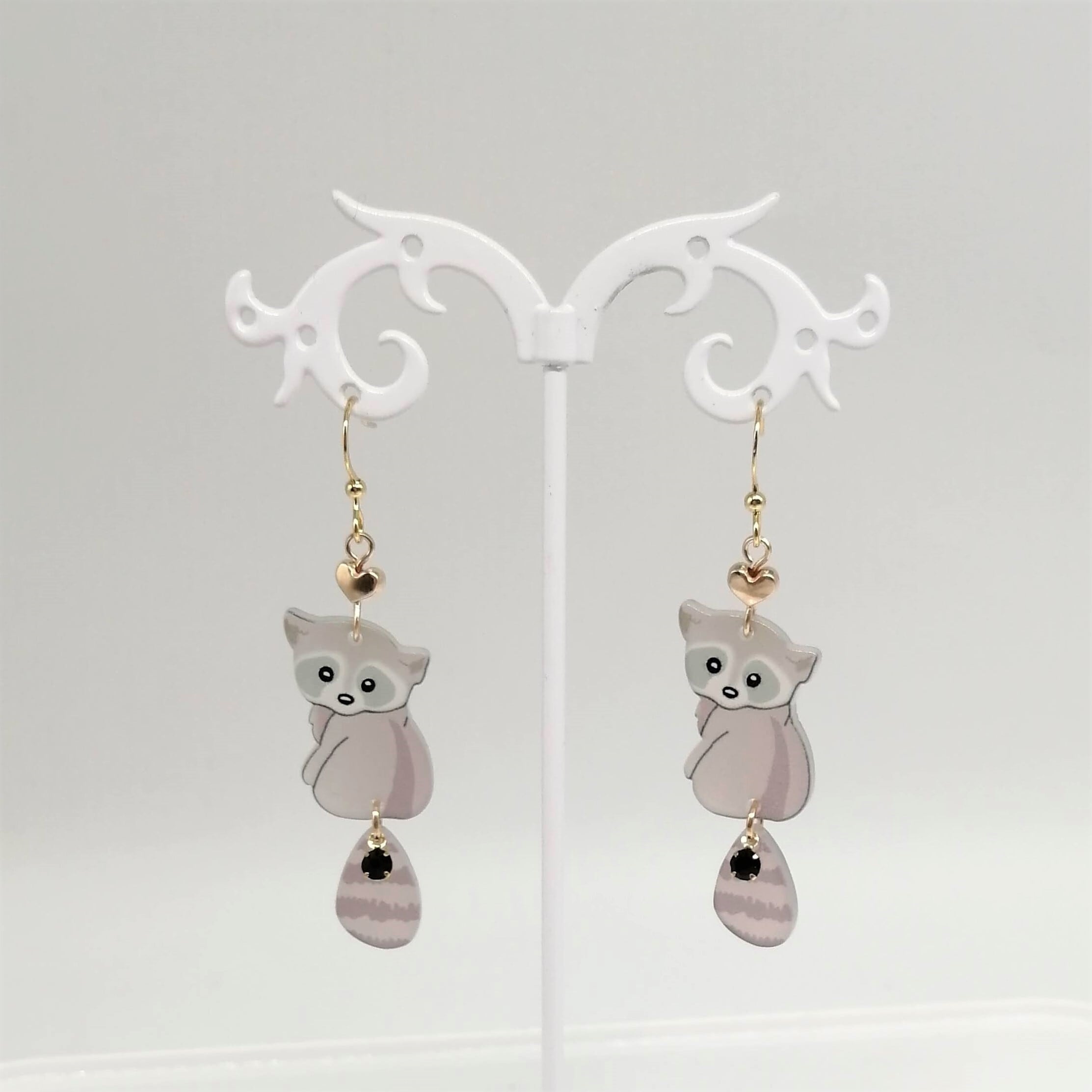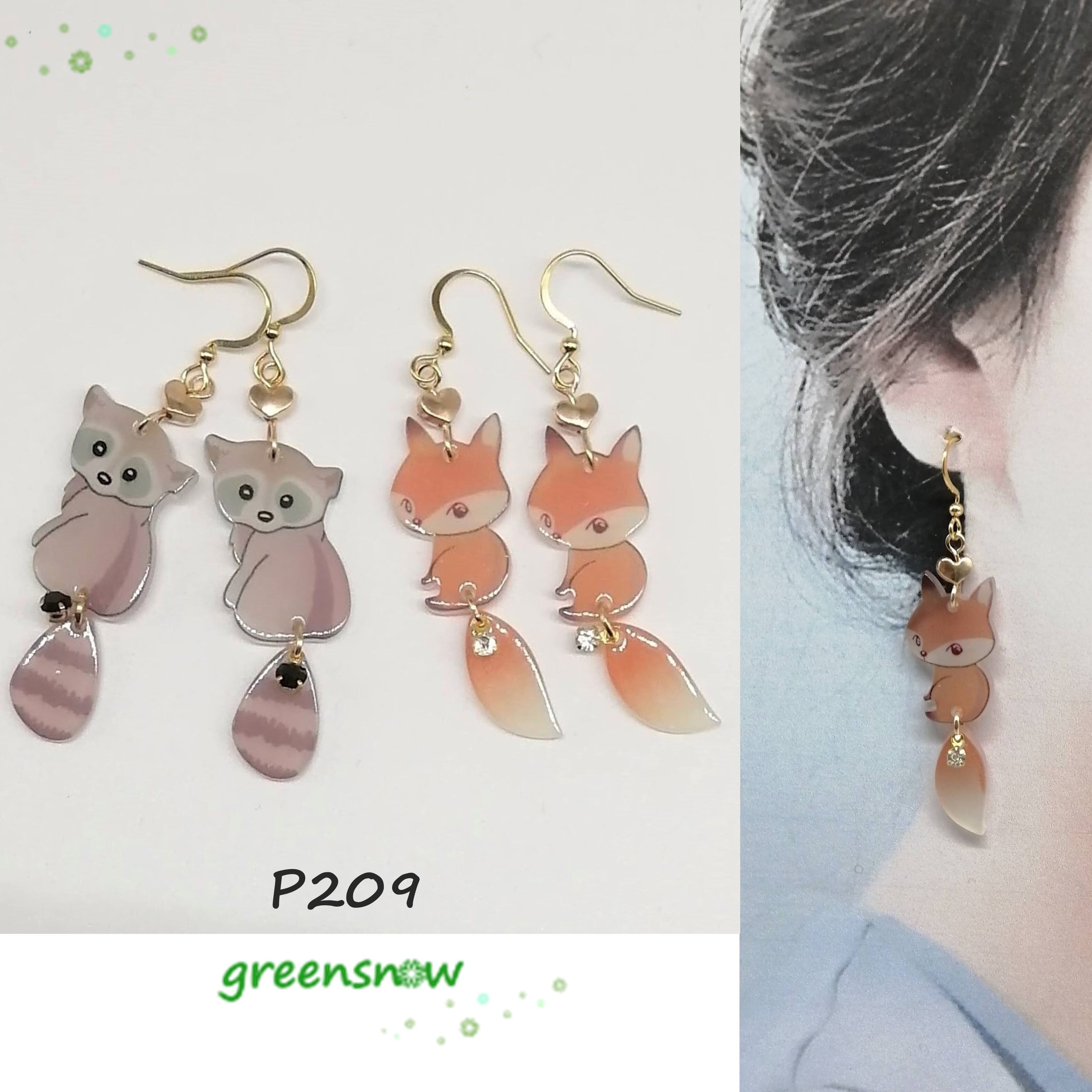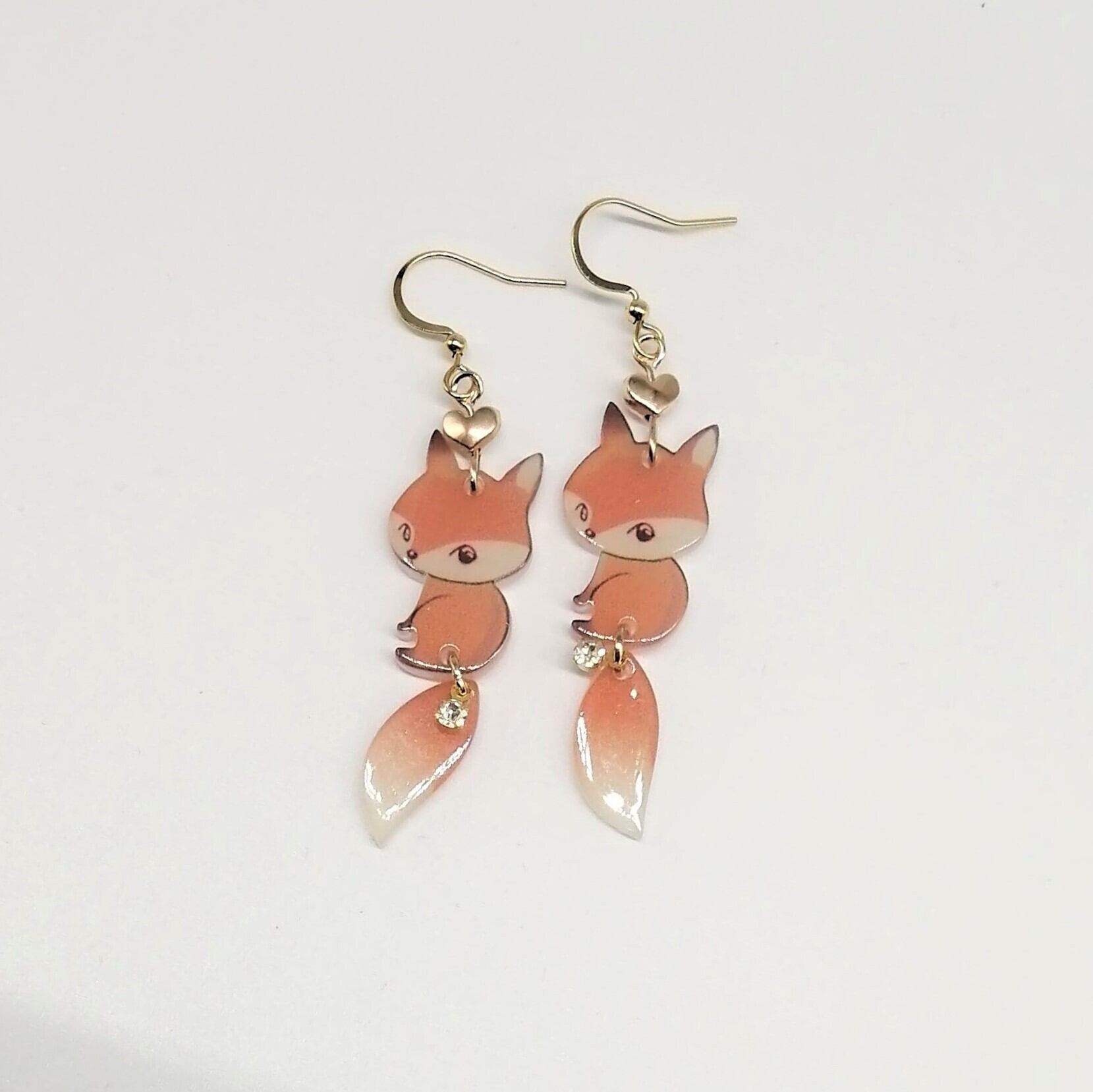 【サージカルステンレス ピアス】しっぽゆらゆら アクリル アライグマ キツネ 動物 イヤリング