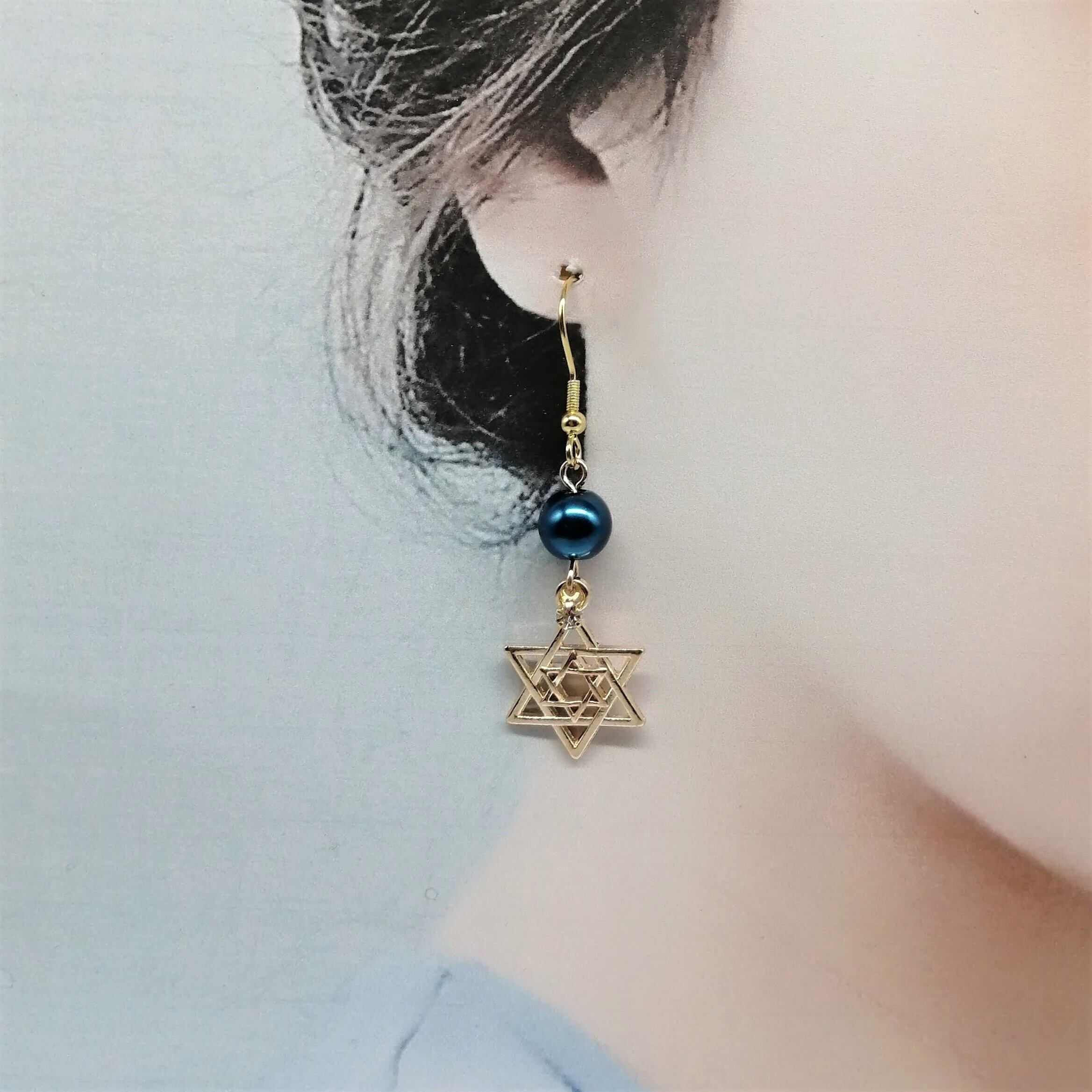 ブルー色のパール×ストーン×星のチャームをあわせたピアスです。