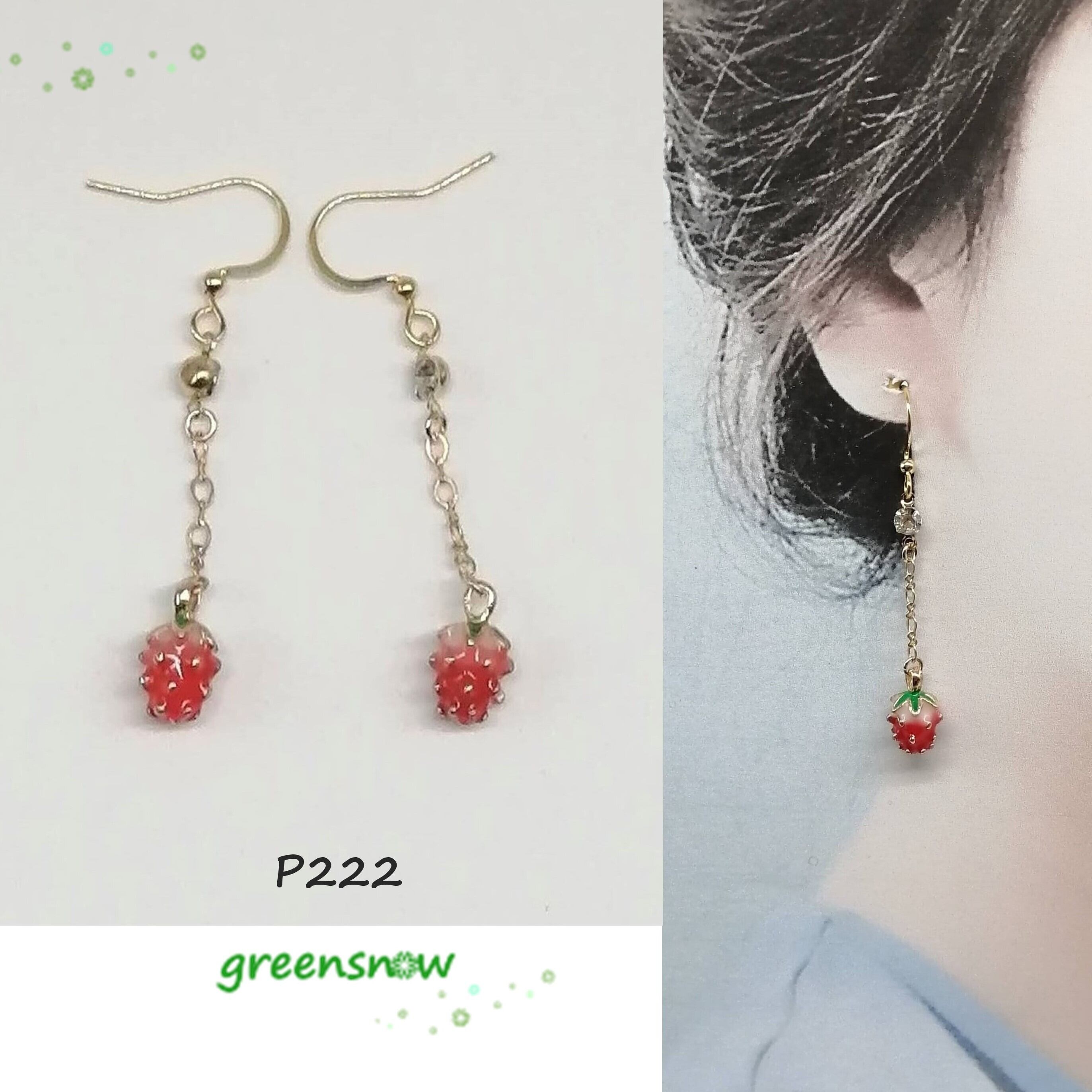 ストーン×チェーン×立体いちごのピアスです。