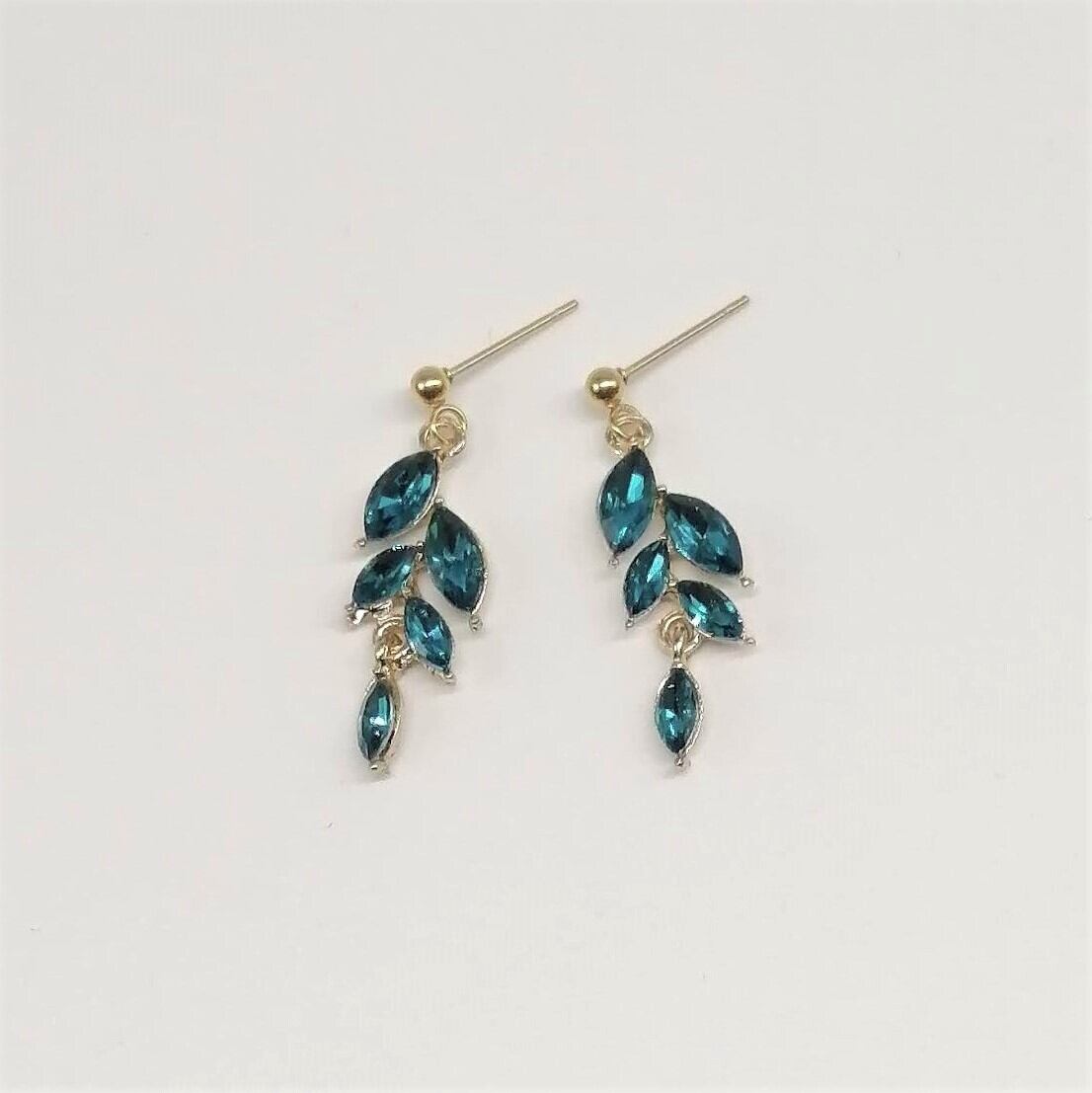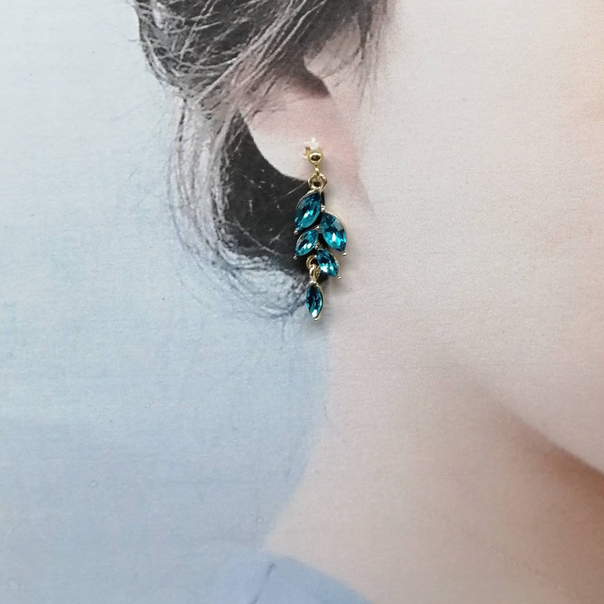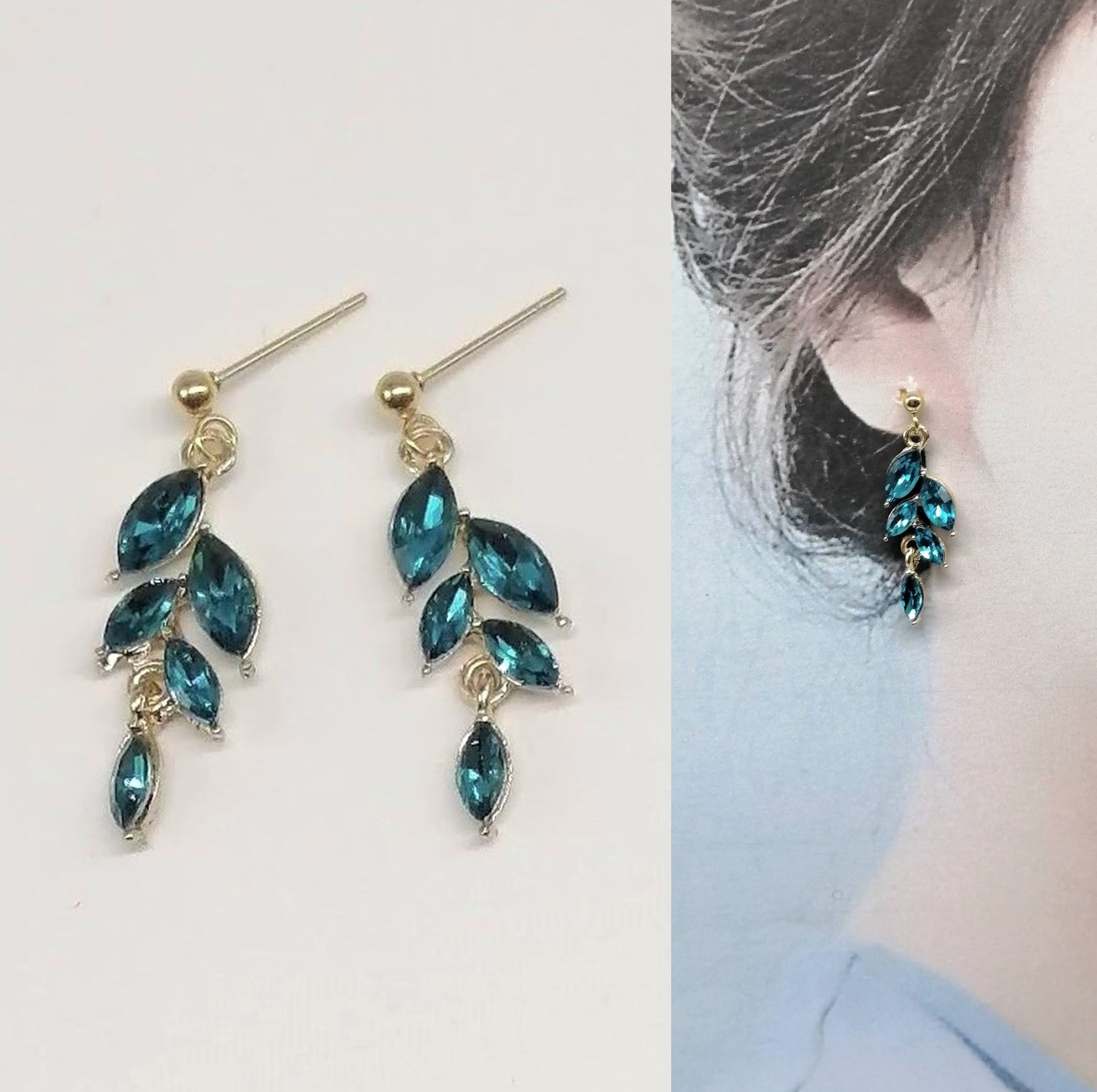 【サージカルステンレス ピアス】ガラスストーン ホワイト ブルー リーフ 葉っぱ イヤリング