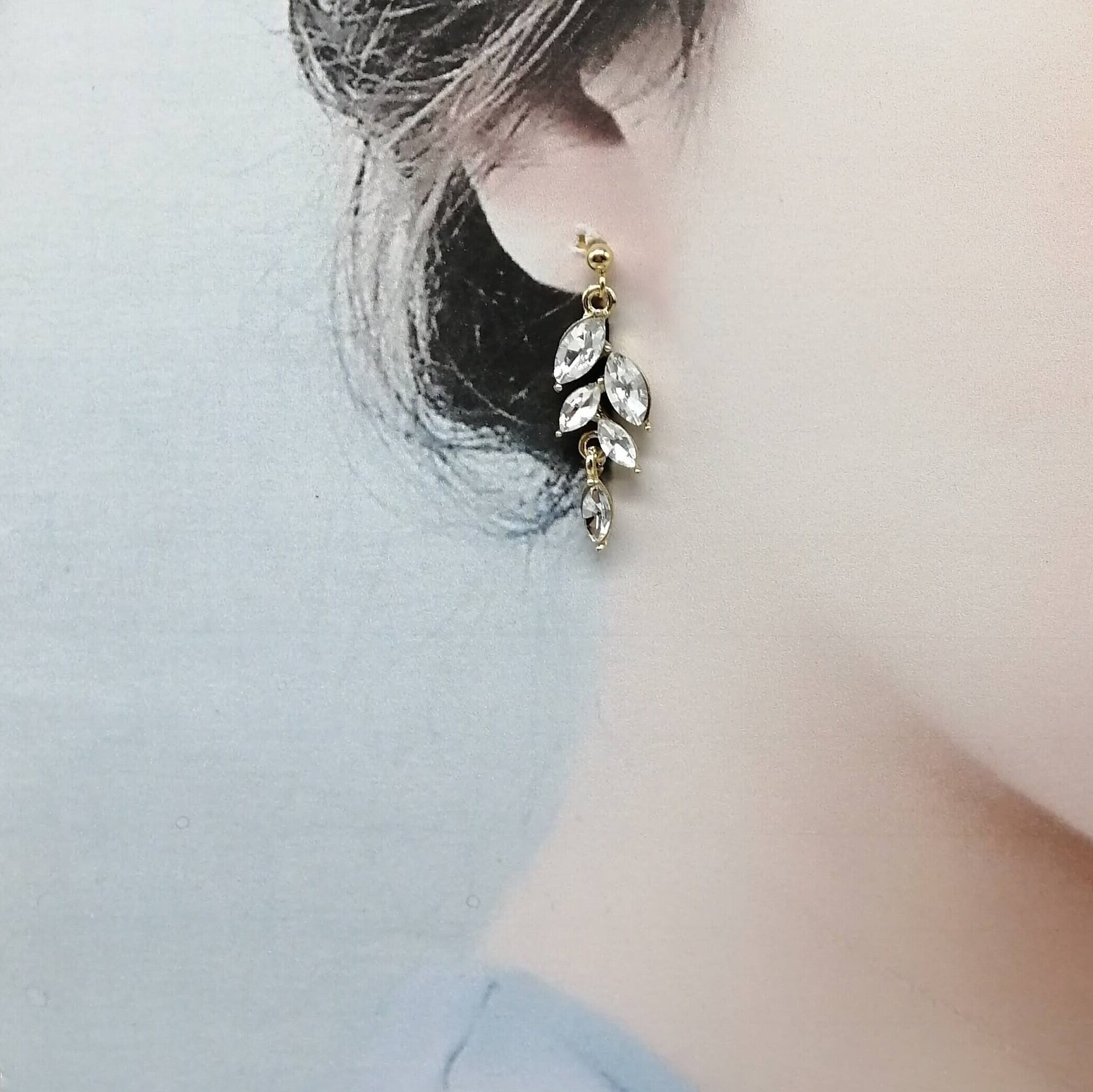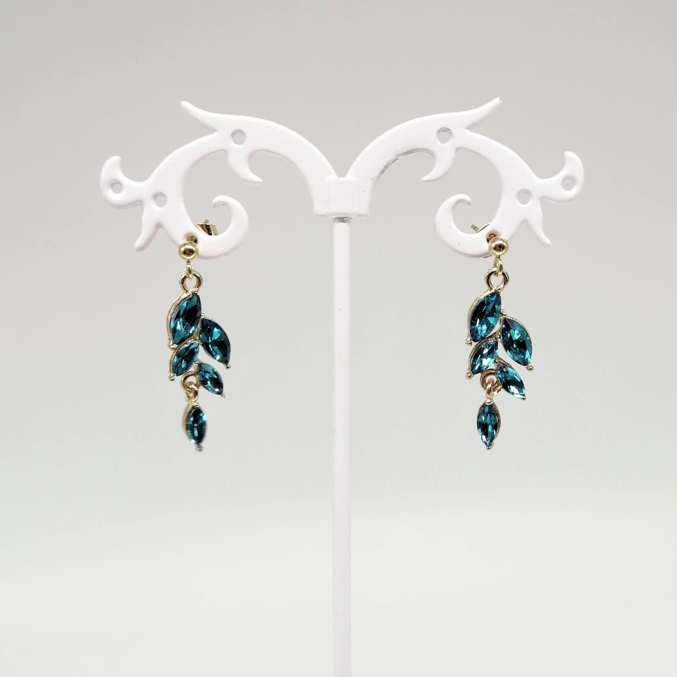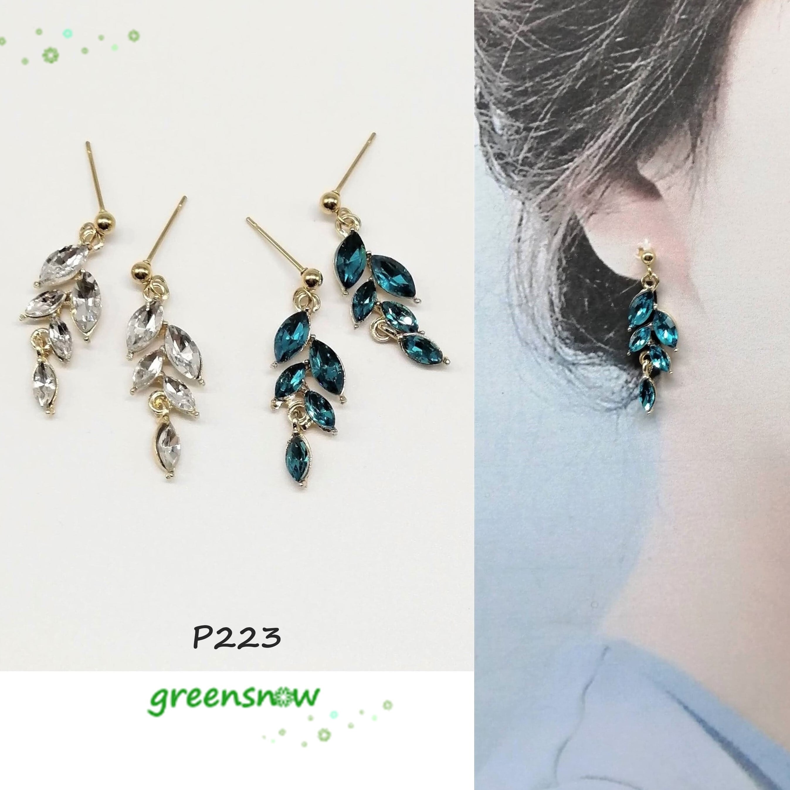 【サージカルステンレス ピアス】ガラスストーン ホワイト ブルー リーフ 葉っぱ イヤリング