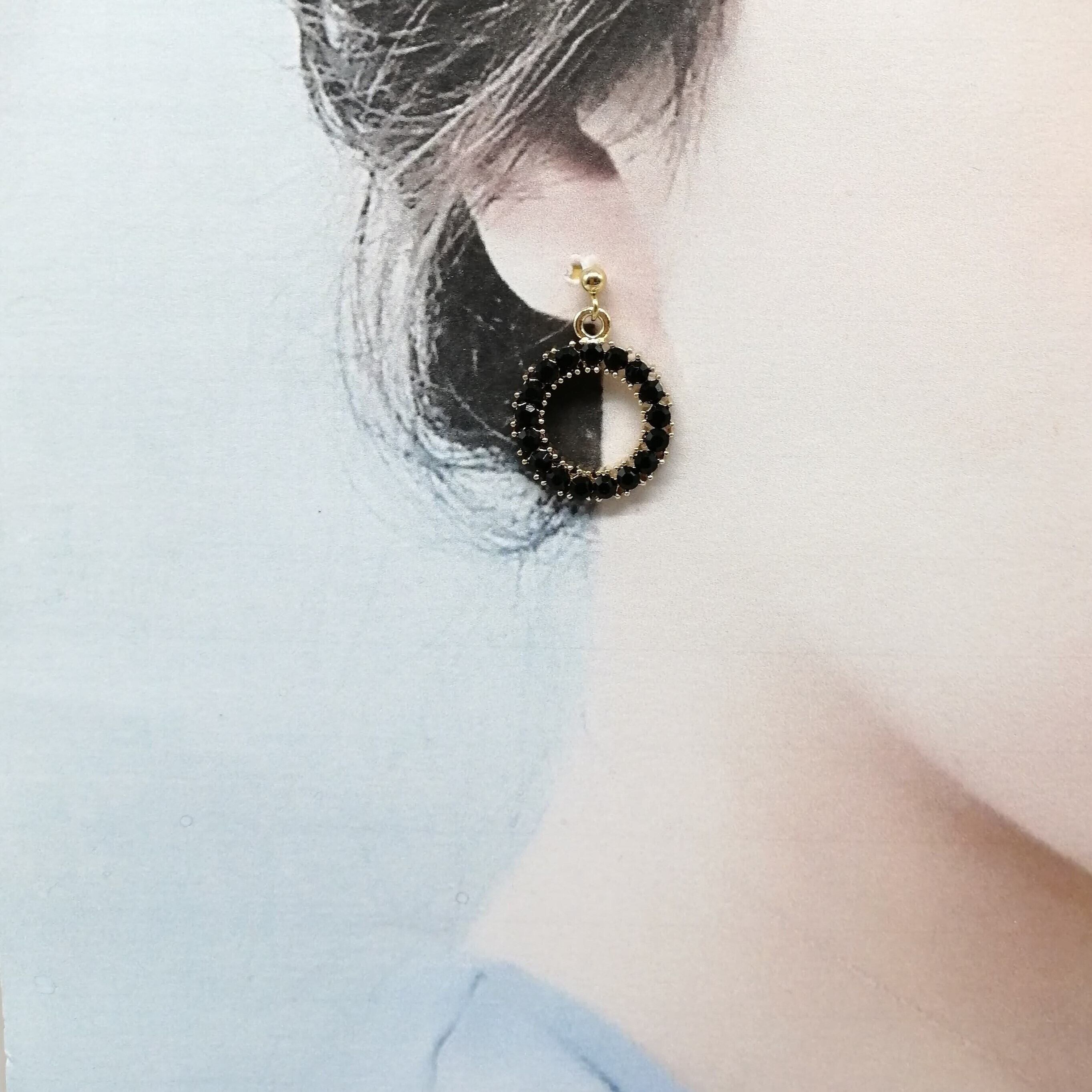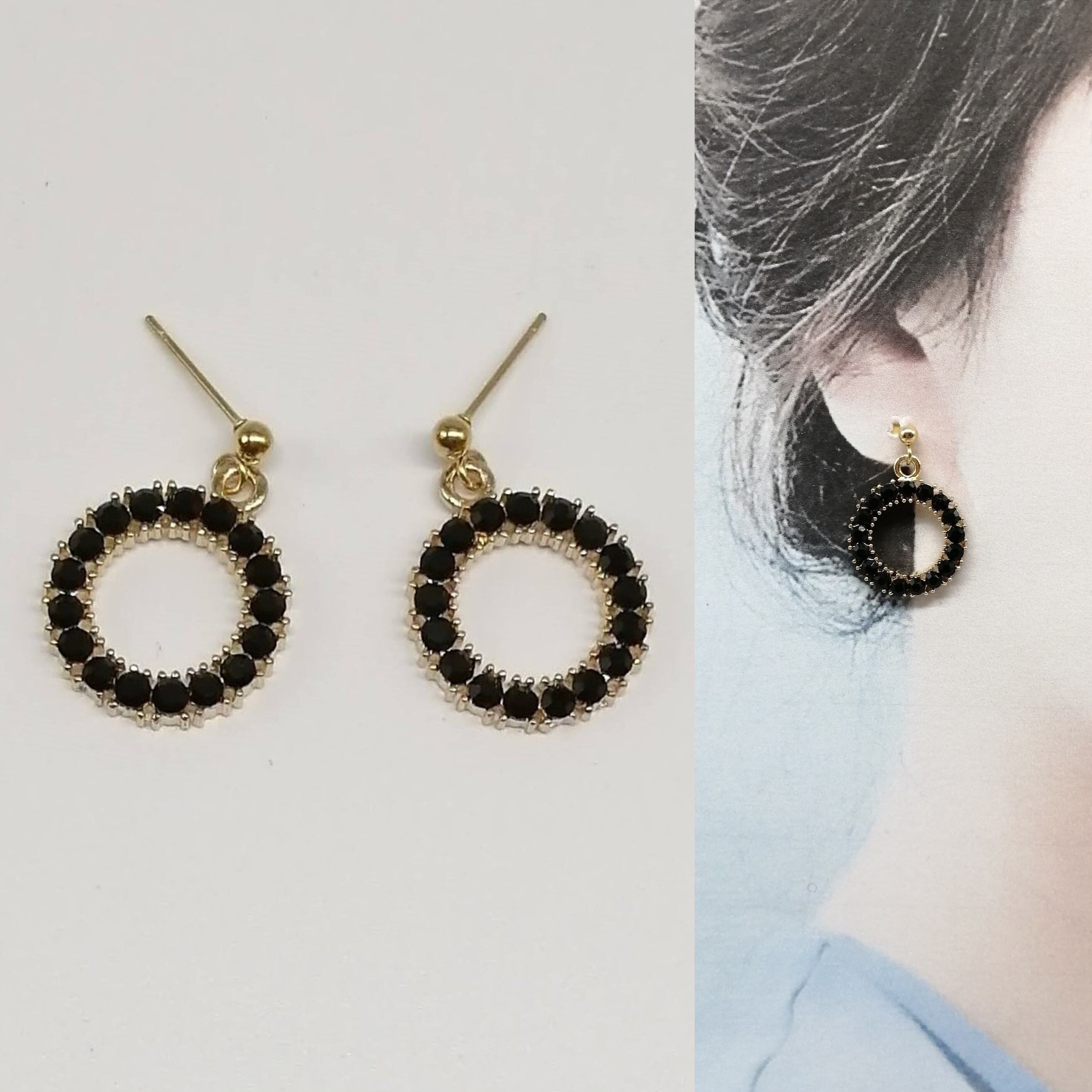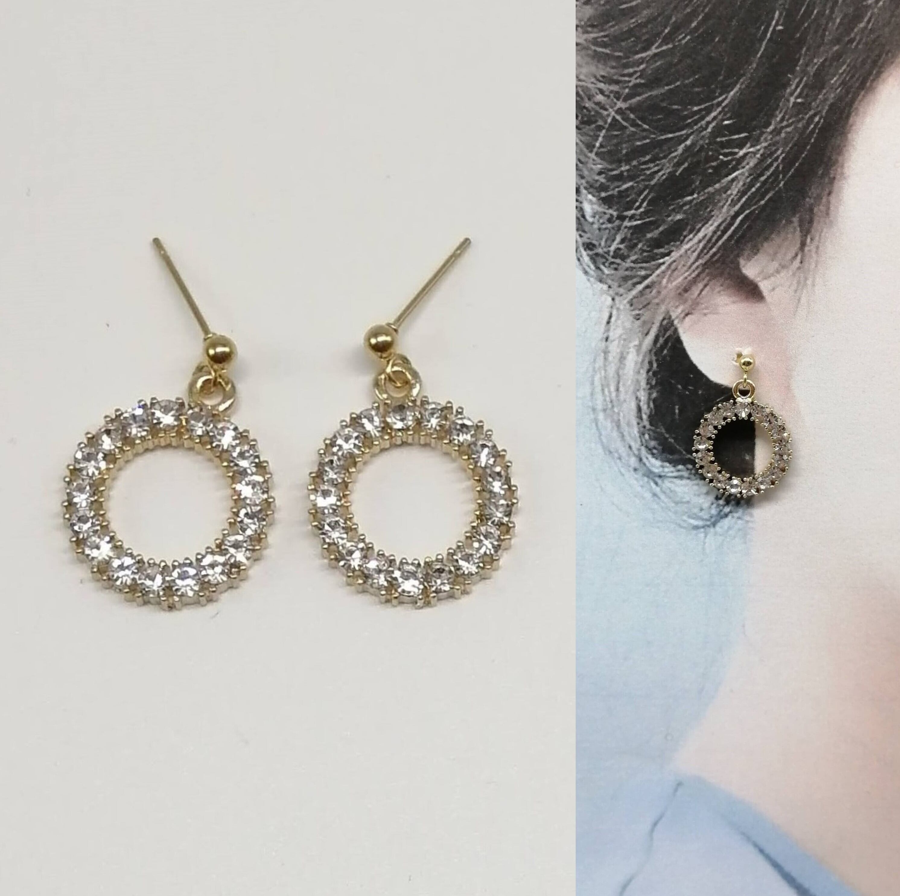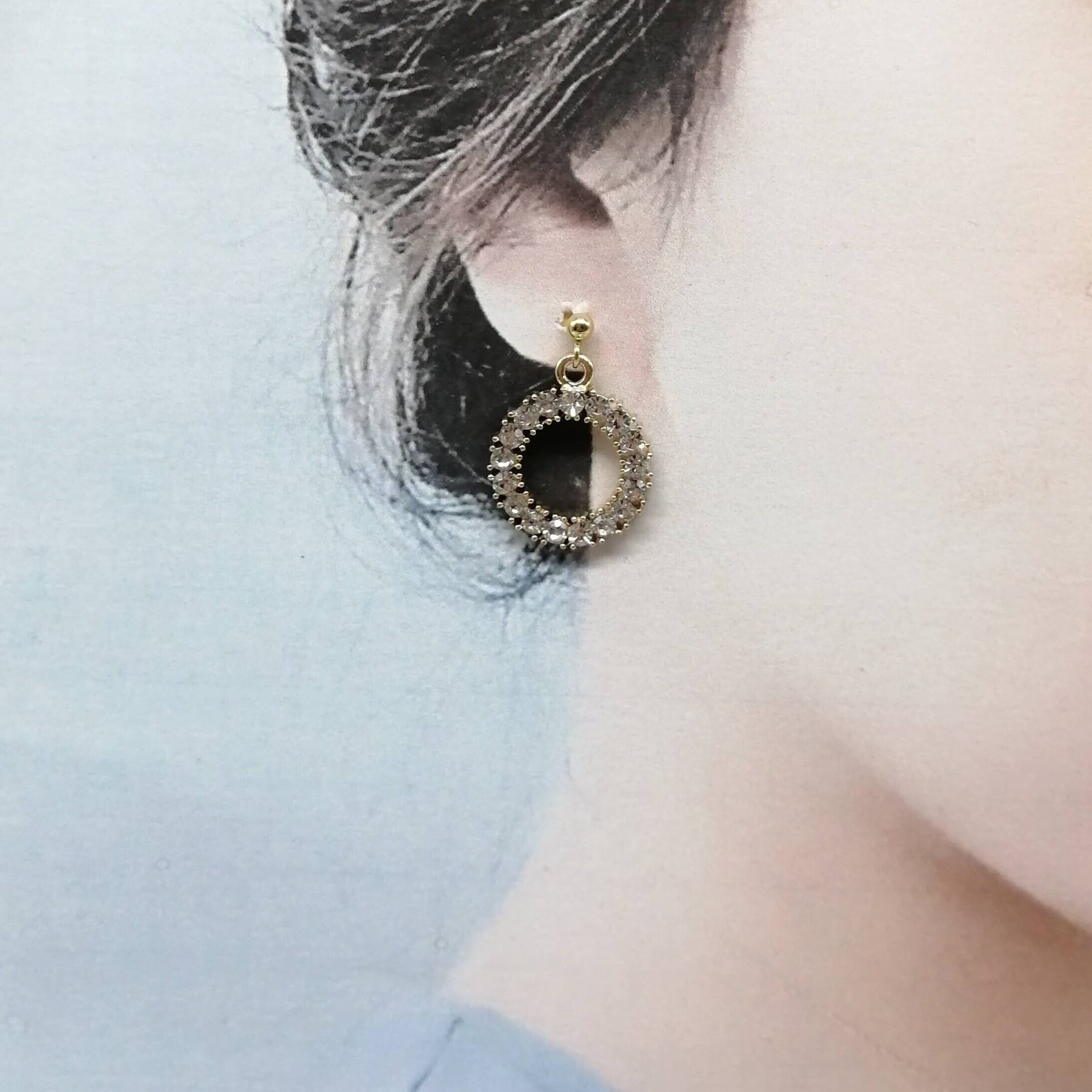 【サージカルステンレス ピアス】A級ガラスストーンのラウンド イヤリング
