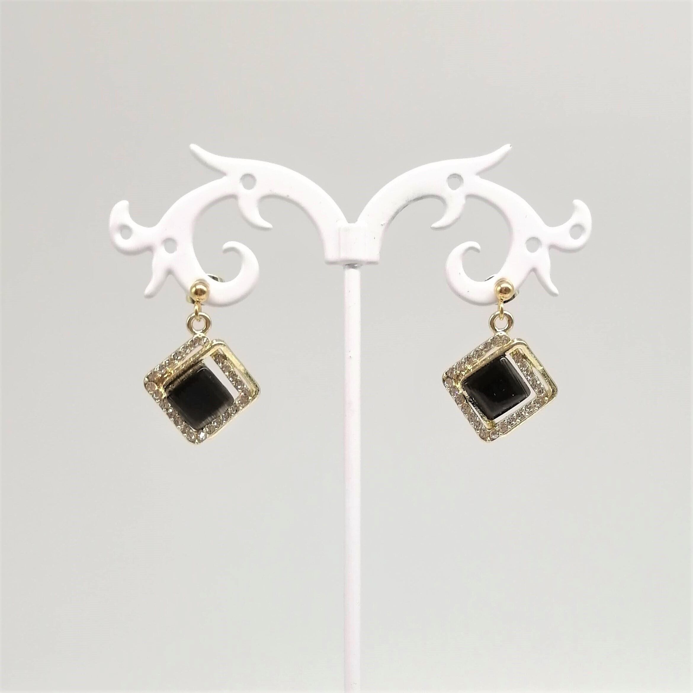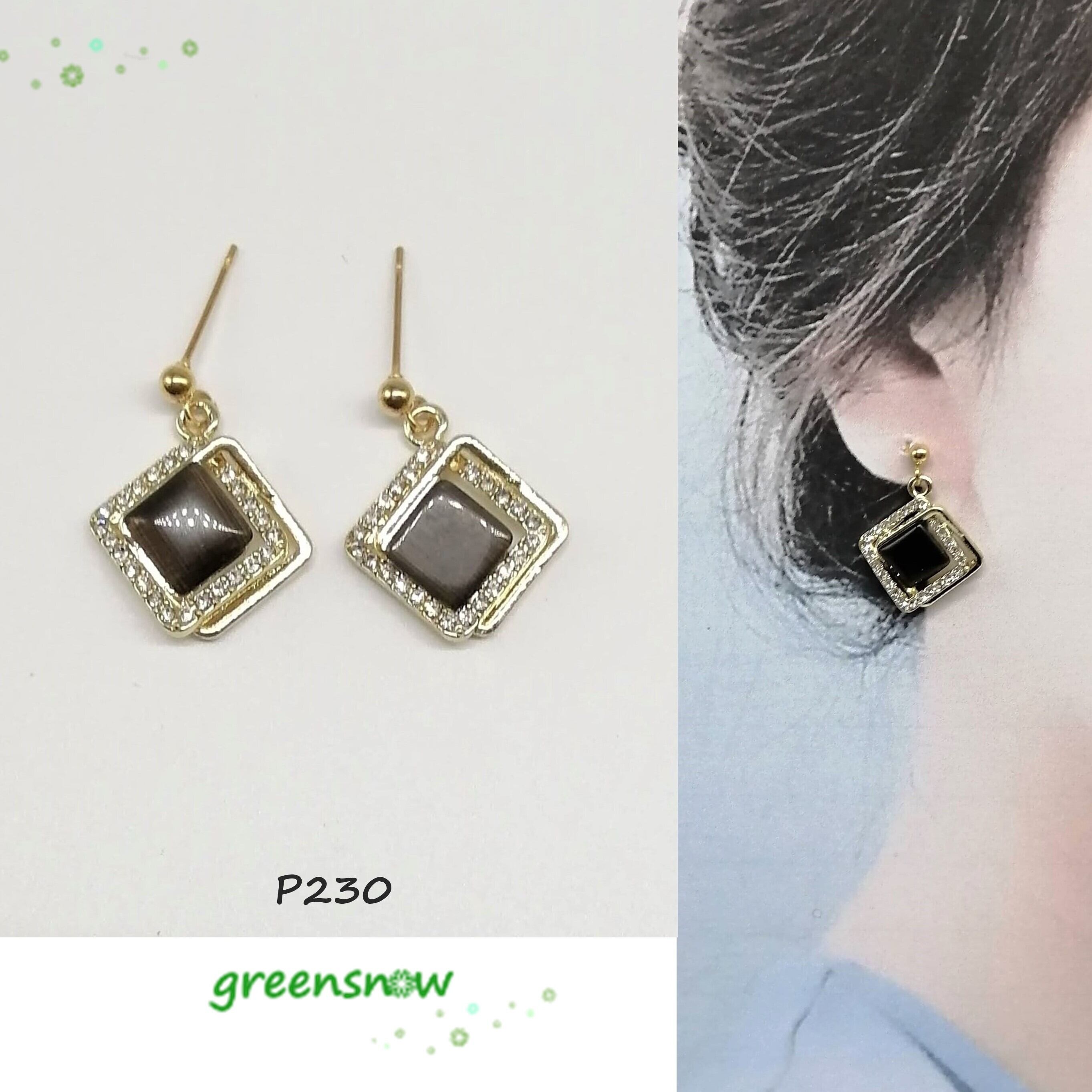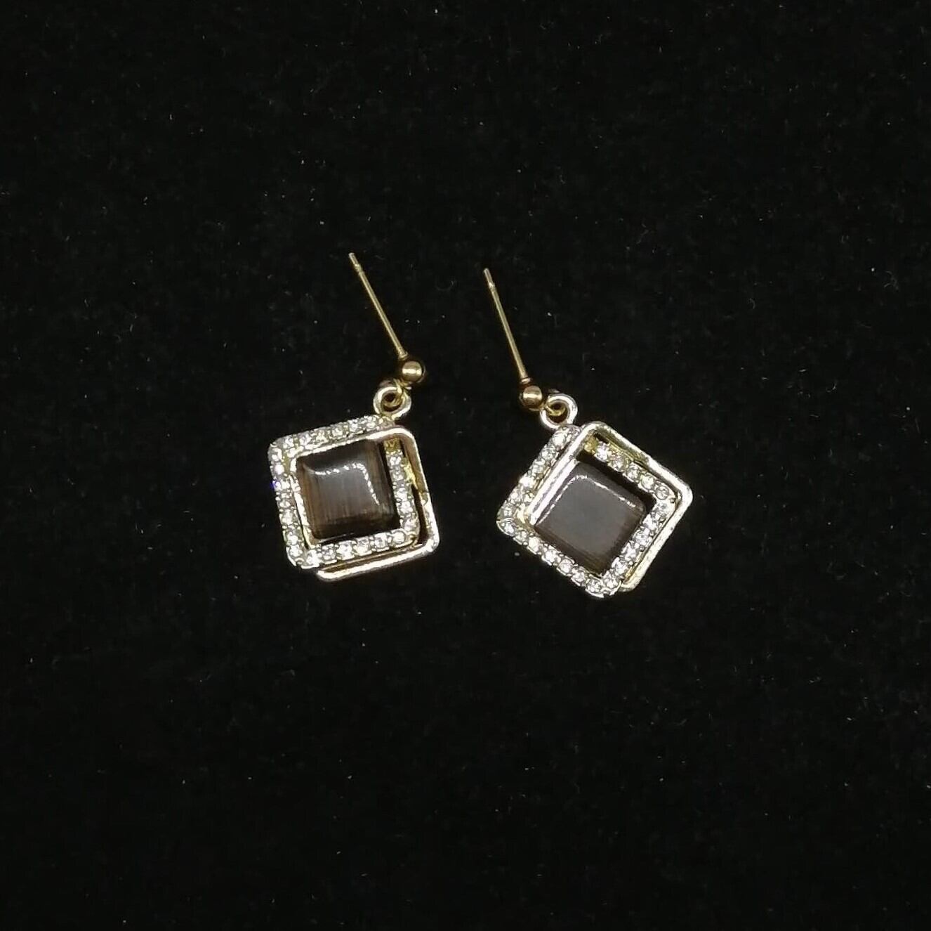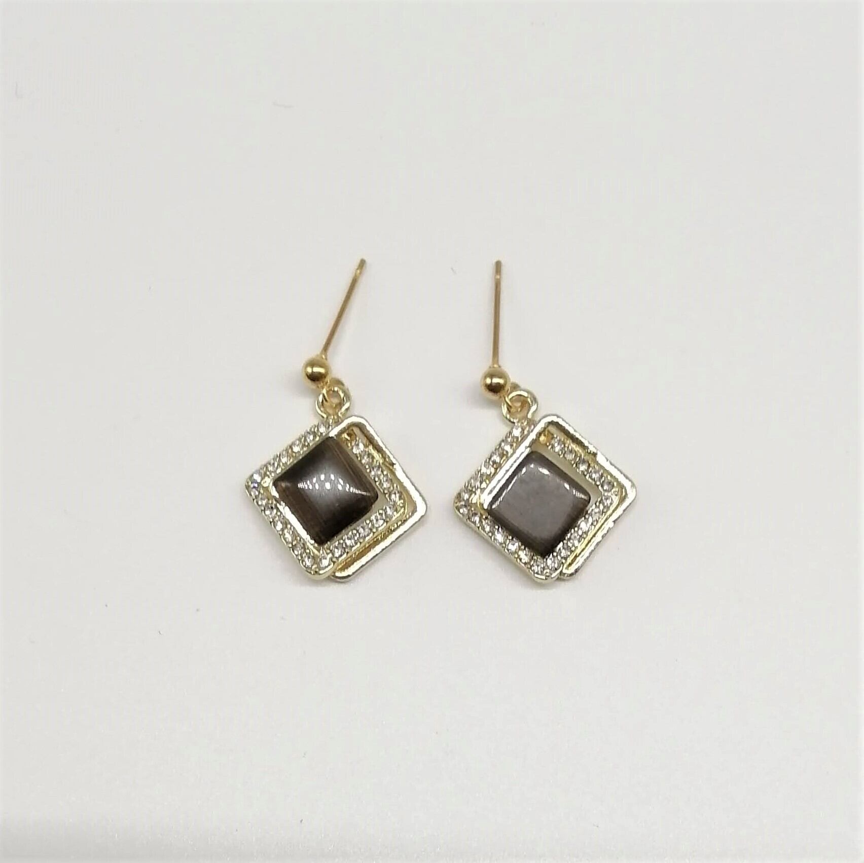 キャッツアイカボション付きのスクエアのピアスです。