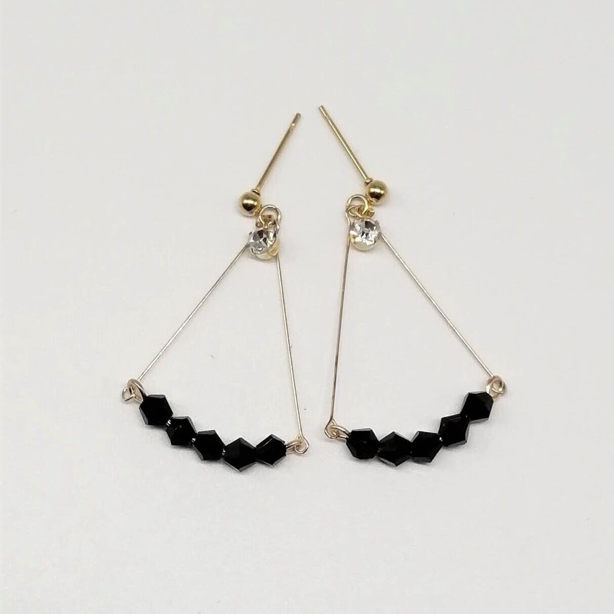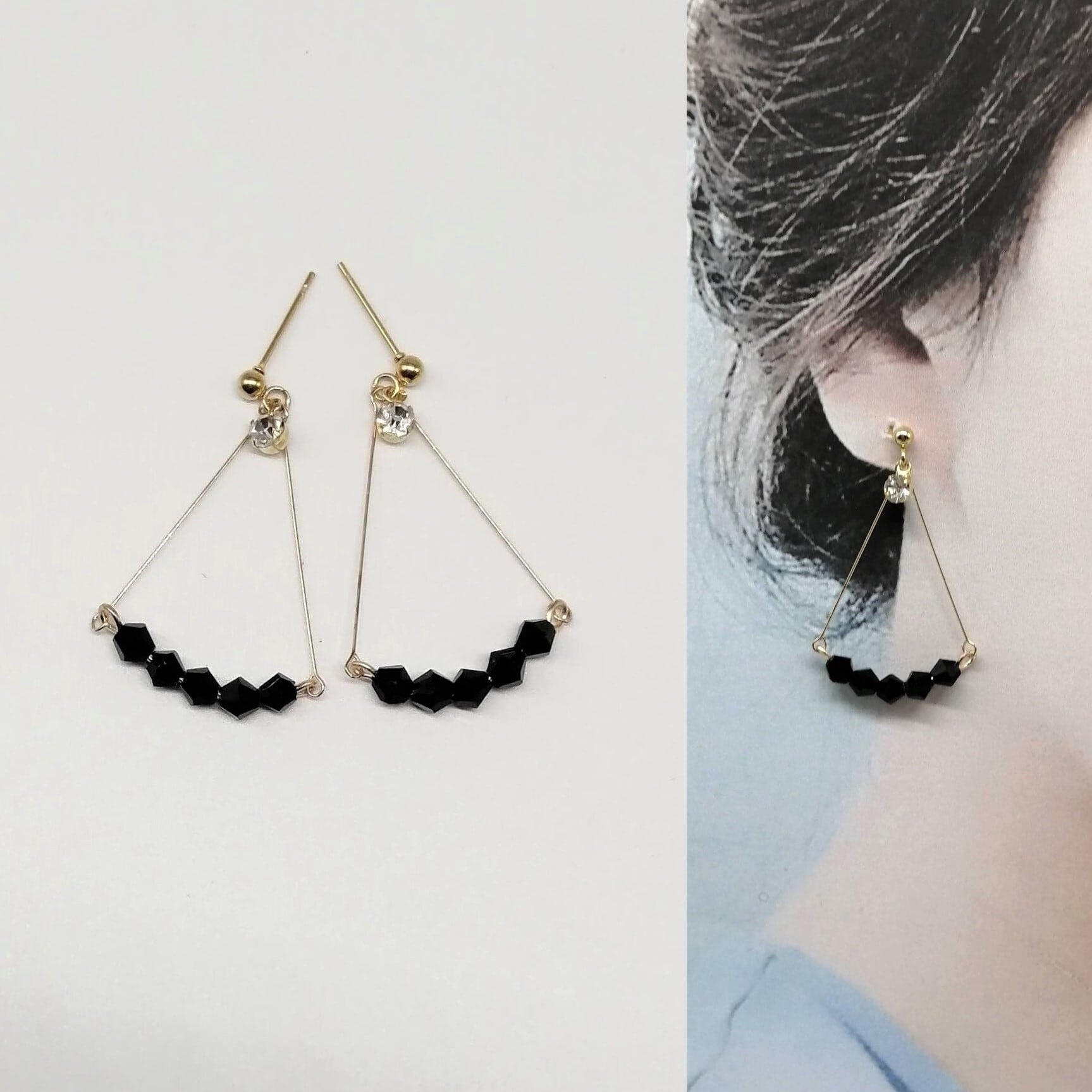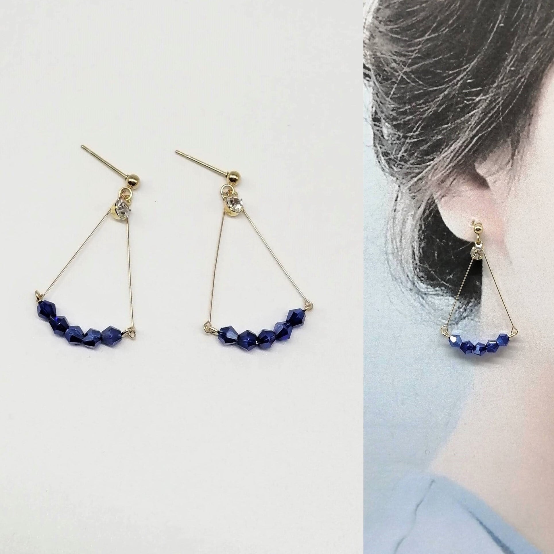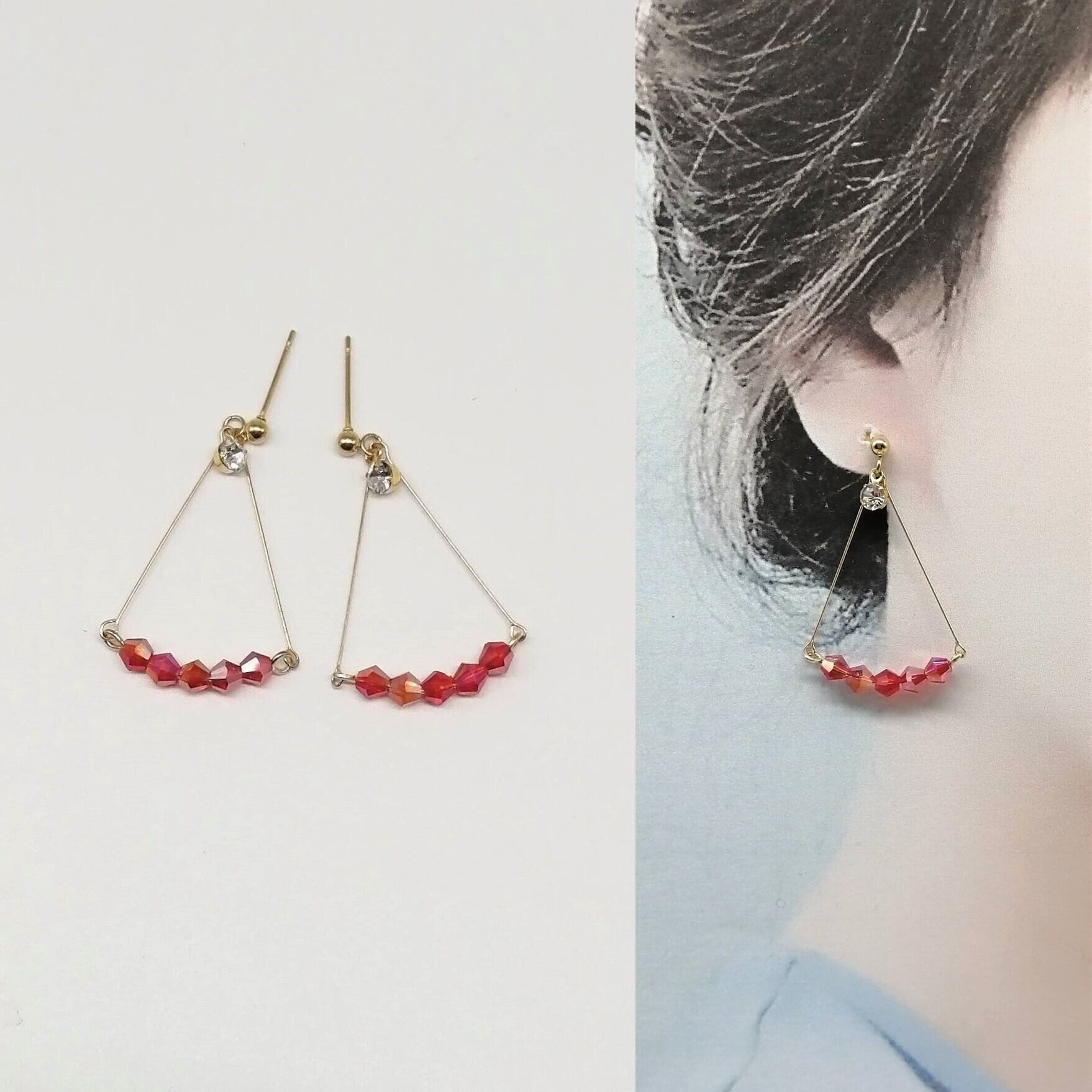 【サージカルステンレス ピアス】A級ガラスのそろばん玉ビーズ 三角 雫 しずく イヤリング