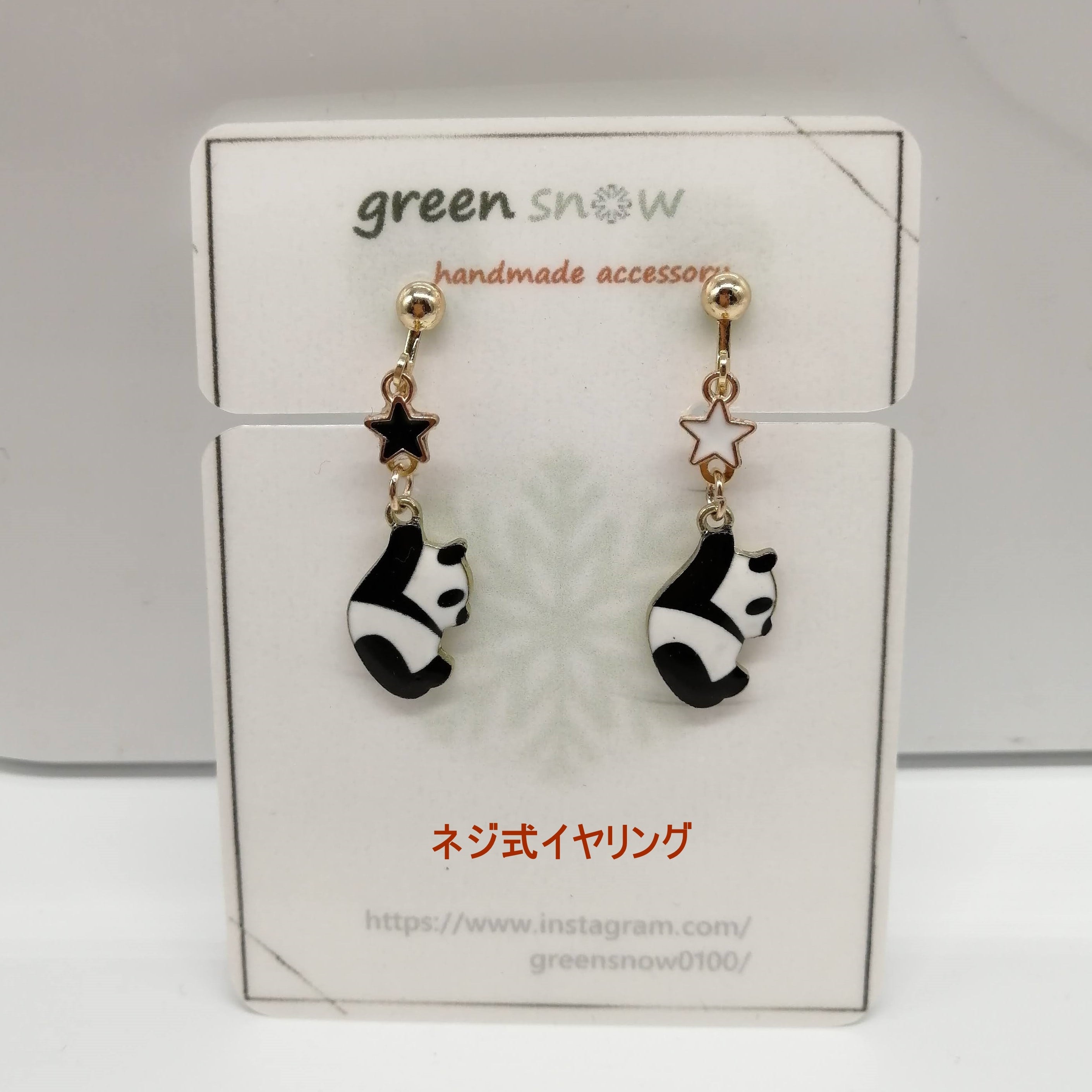 ホワイト&ブラックの星×パンダのイヤリングです。