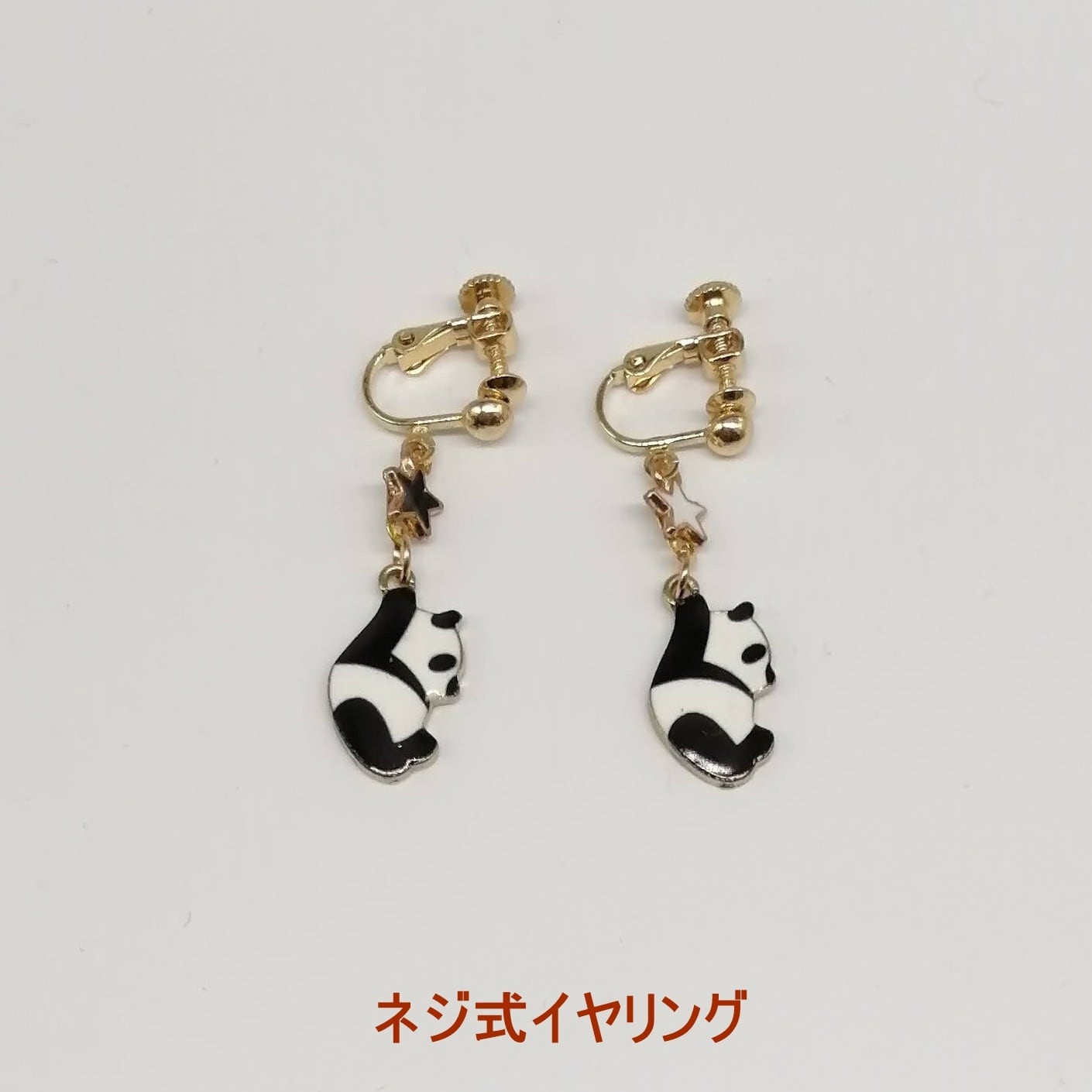 可愛い 星に捕まるパンダ イヤリング ネジ式 樹脂 クリップ式 動物
