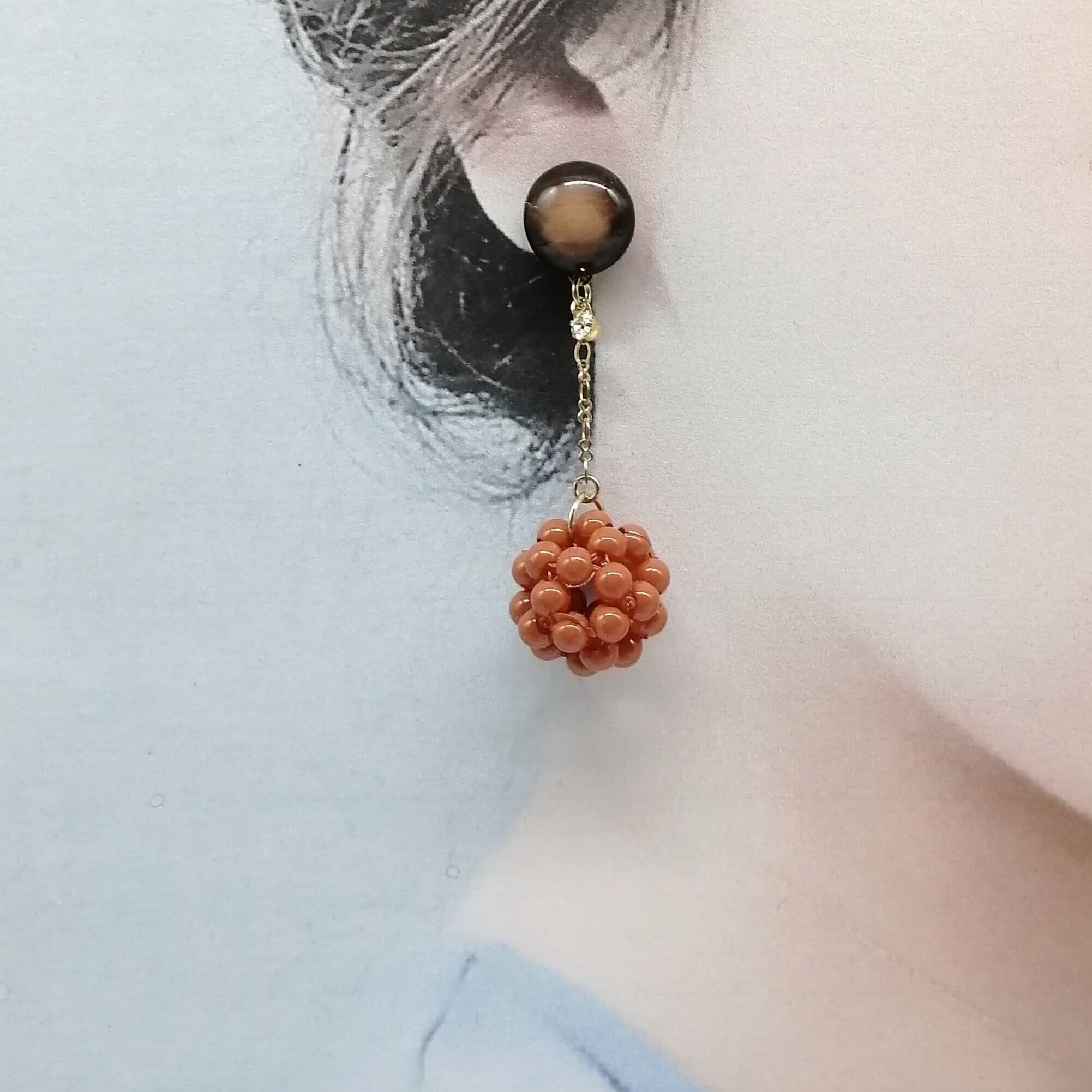 小ぶりのマーブル×ストーン×チェーン×ボールチャームの上品なピアスです。