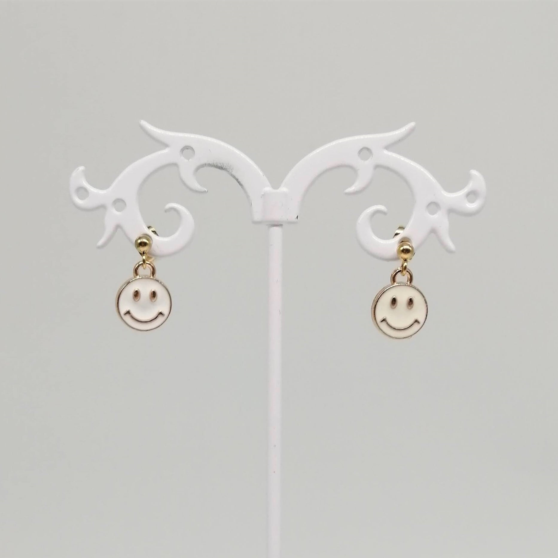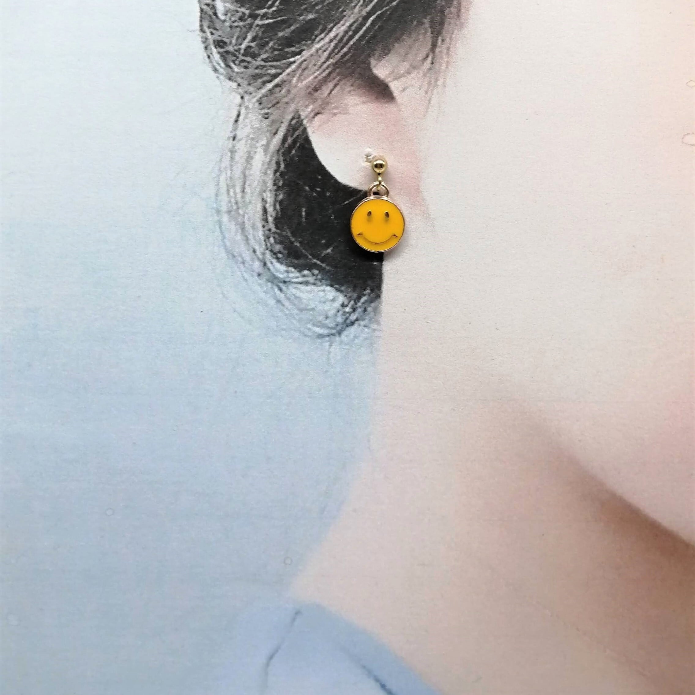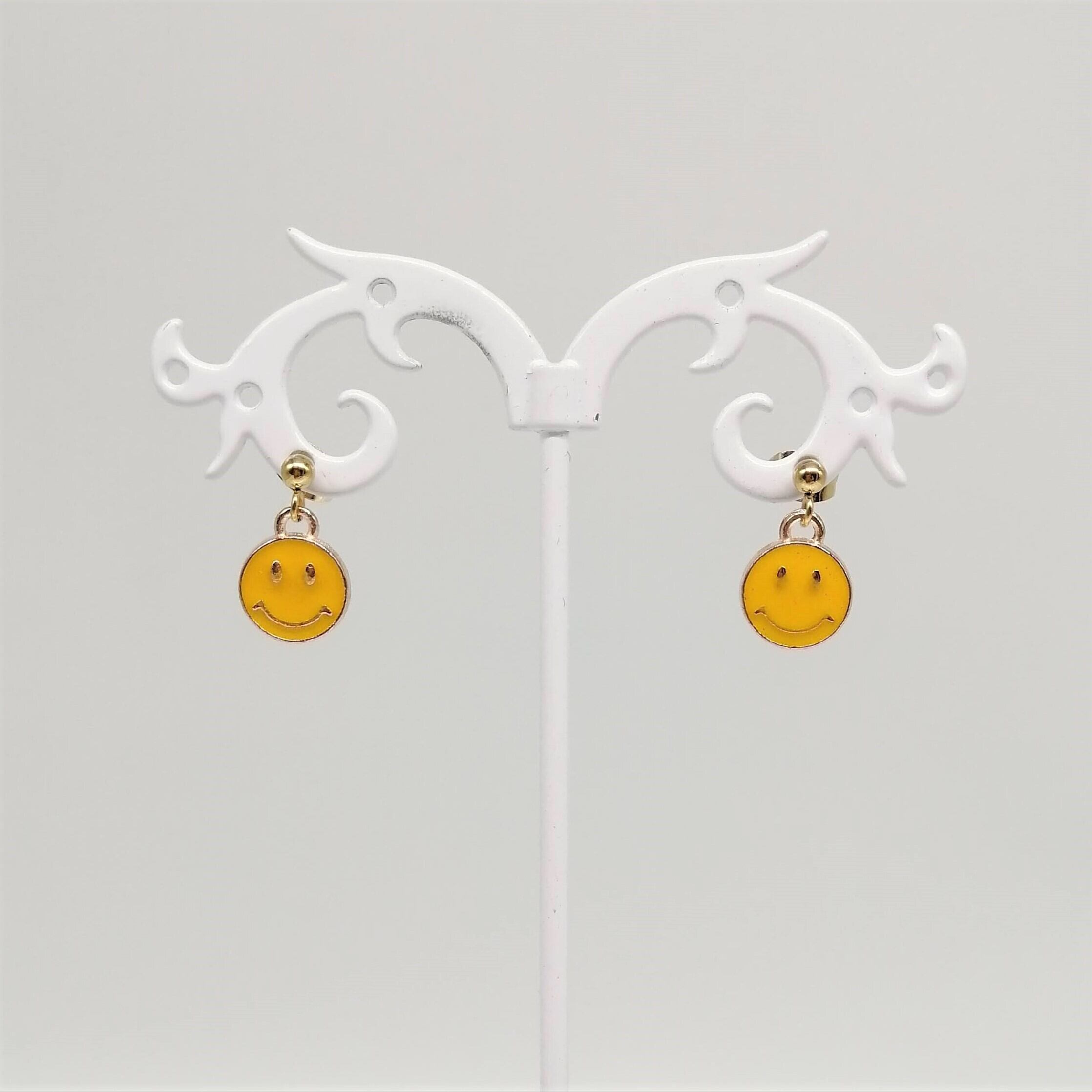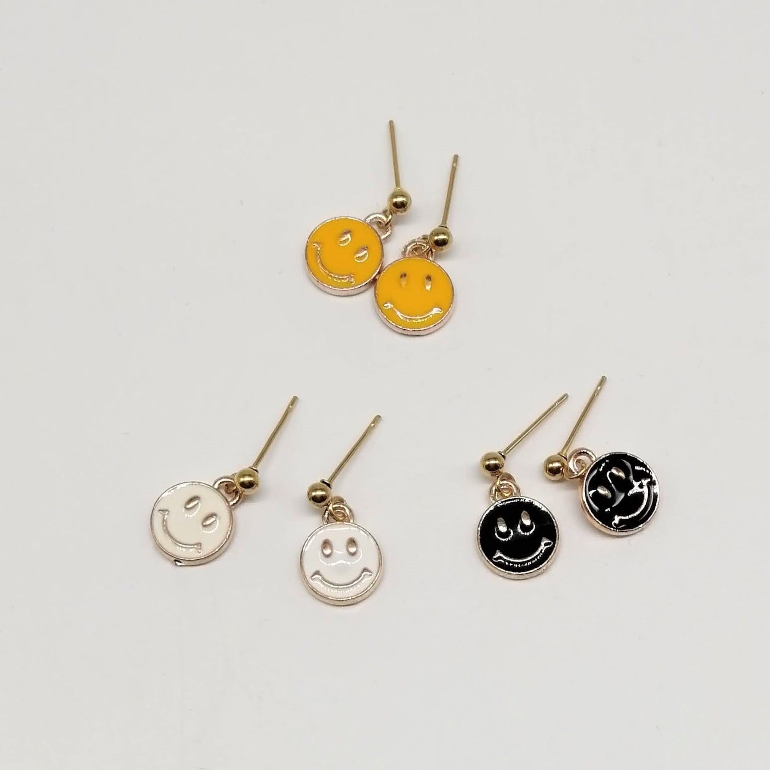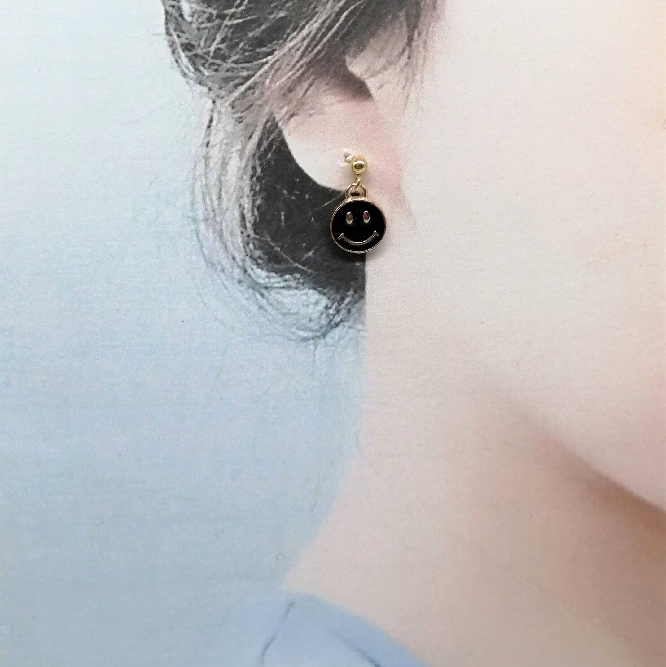【サージカルステンレス ピアス】笑顔 スマイル にこちゃん イエロー ホワイト ブラック イヤリング