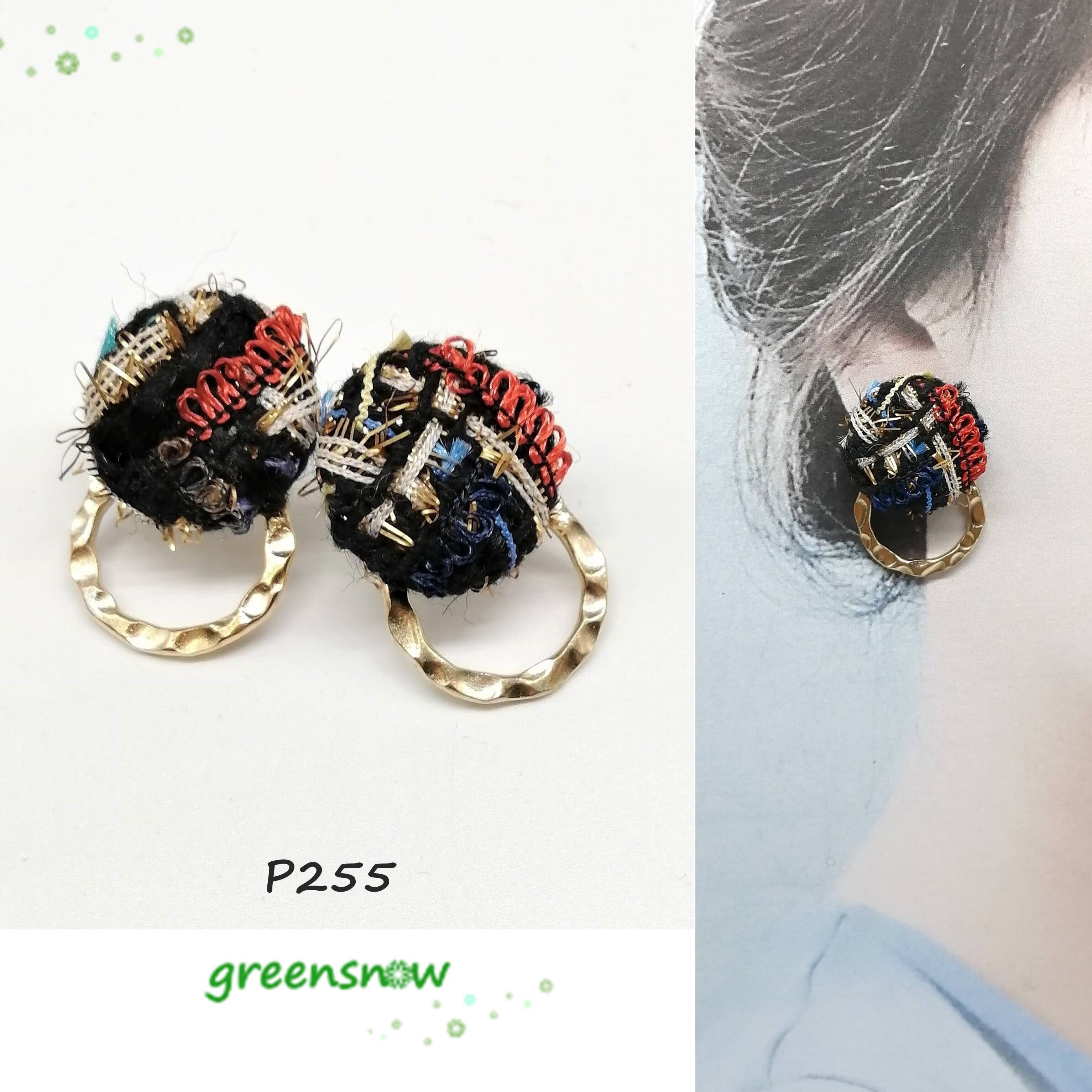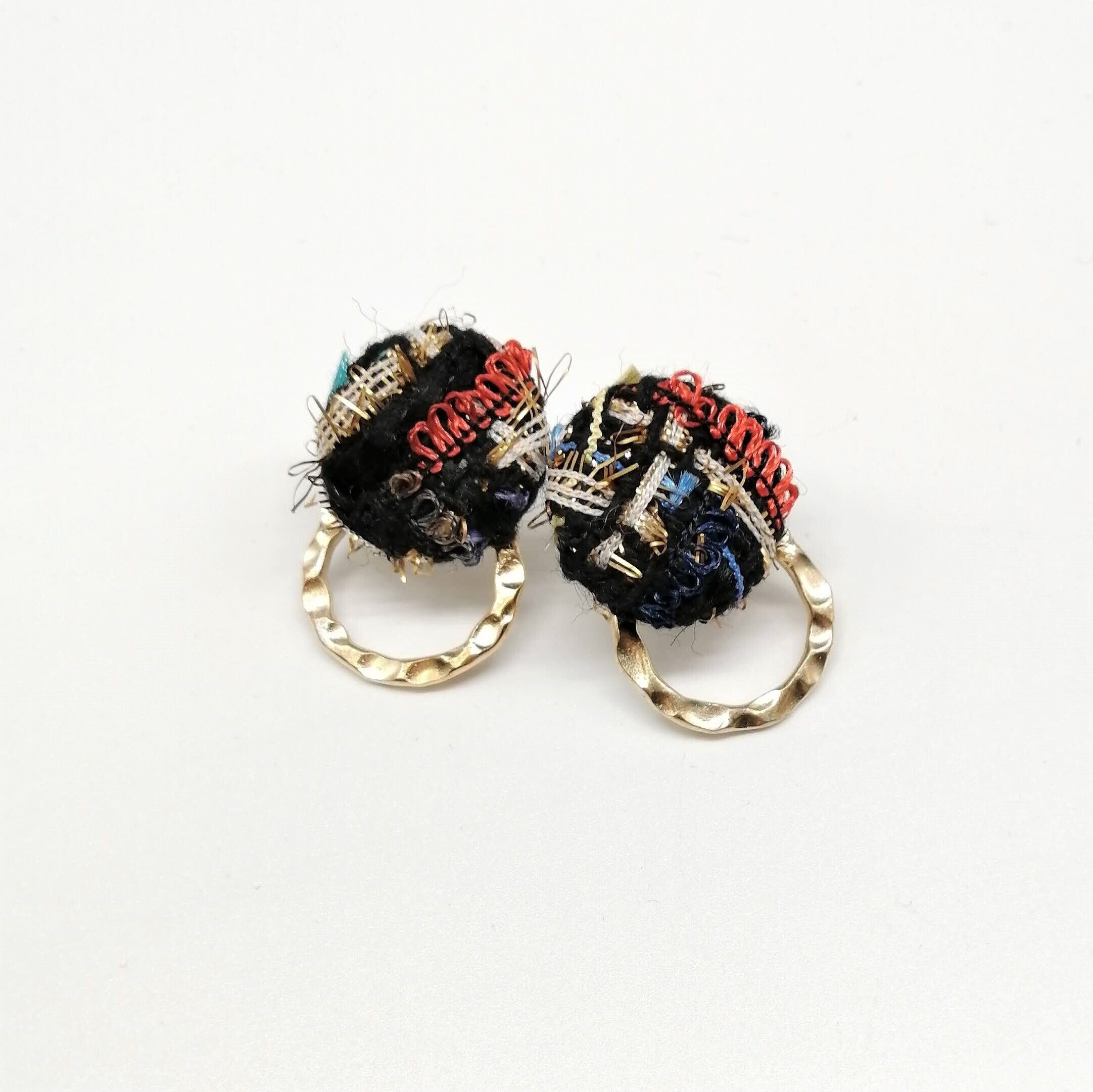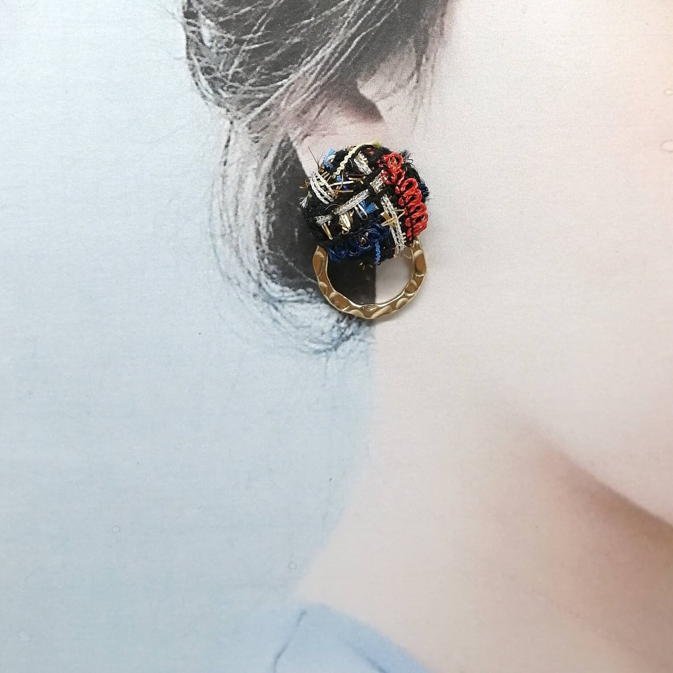 約2.2㎝のミックスツィード×変形リングを合わせたピアスです。