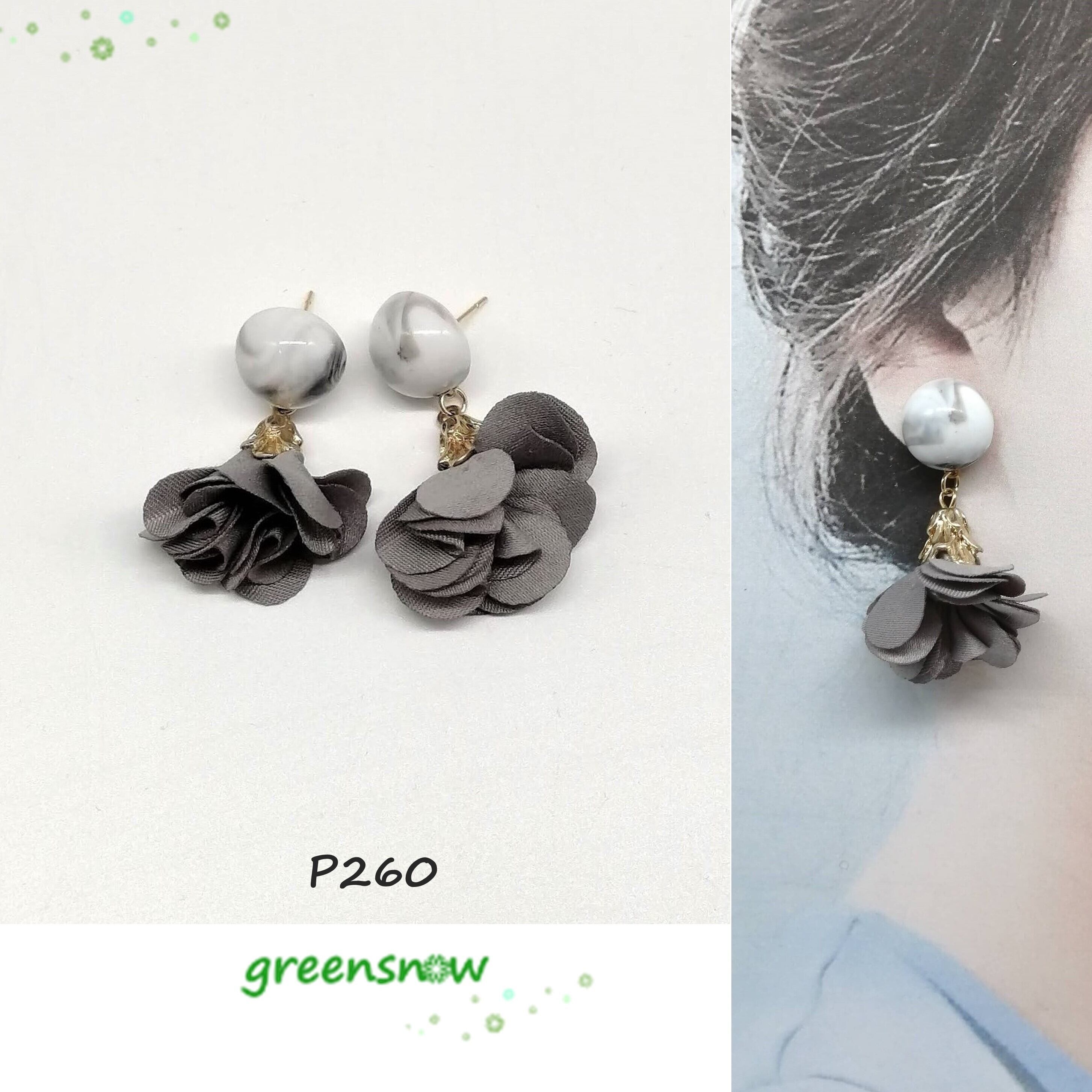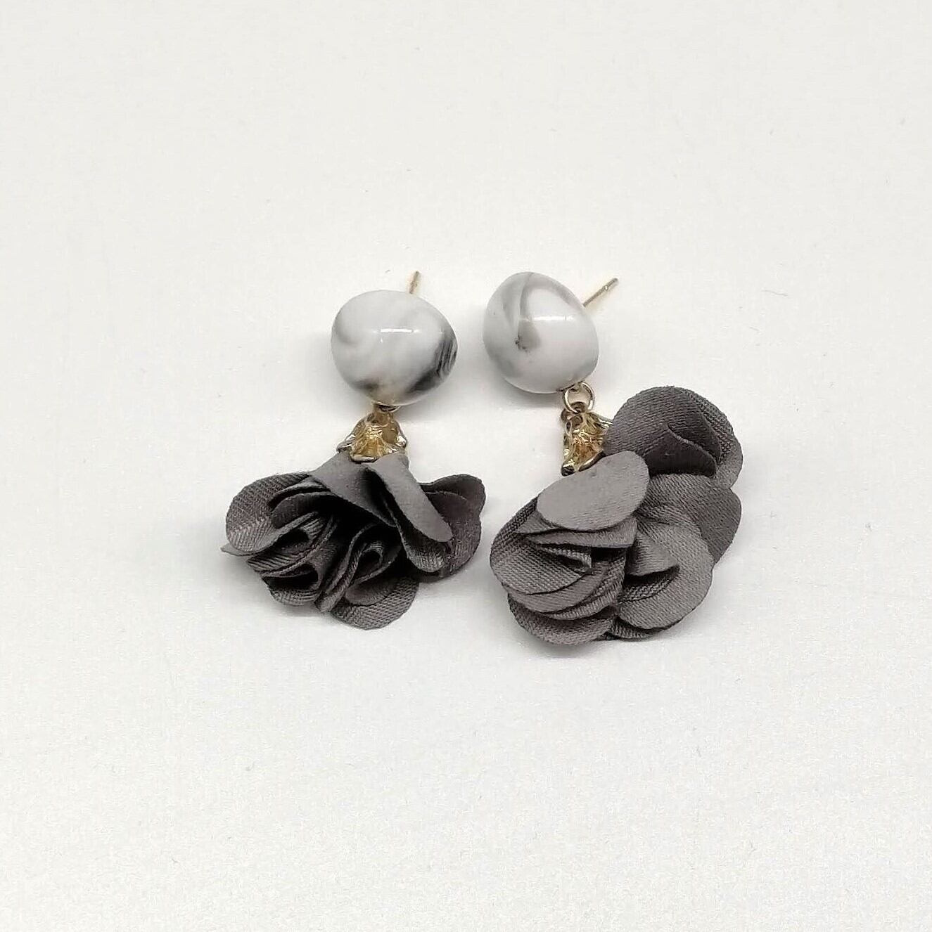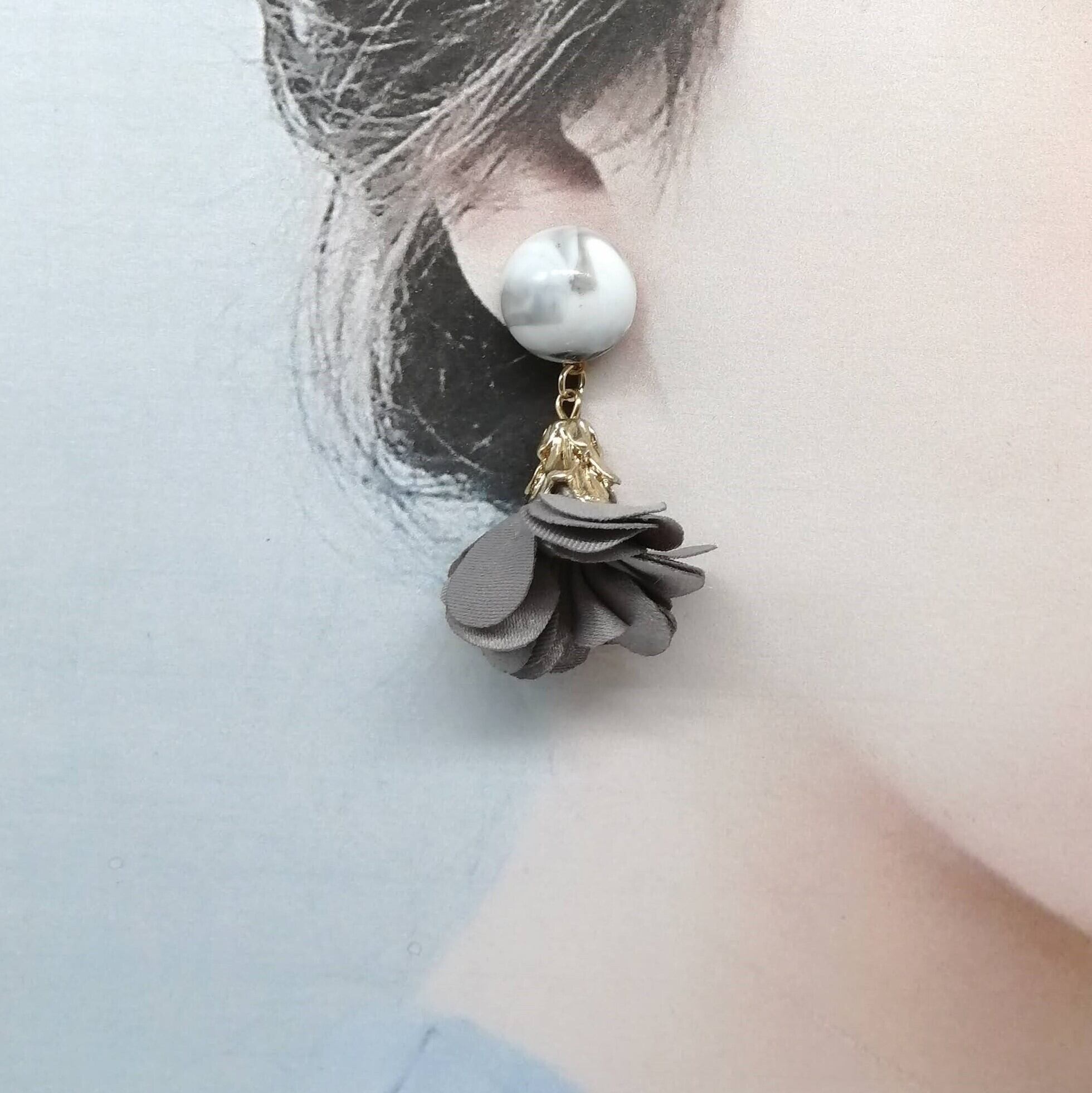 マーブルのカボション×グレー色のタッセルを合わせたピアスです。