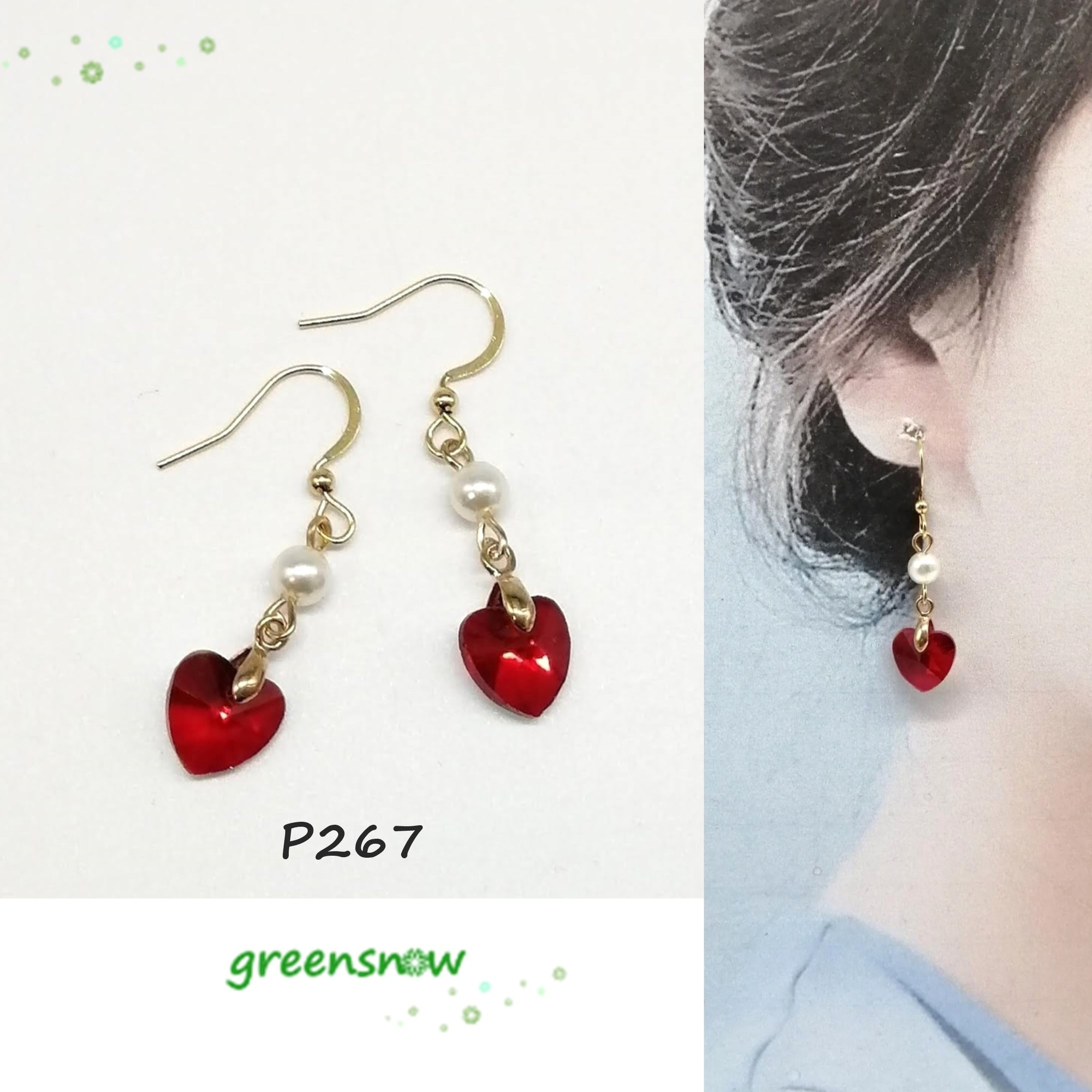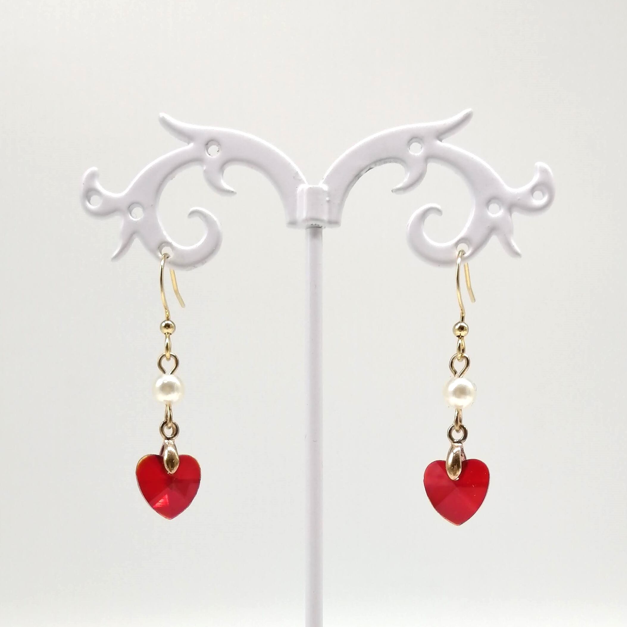 【サージカルステンレス ピアス】パール サンキャッチャー レッド ハート トランスミッション イヤリング