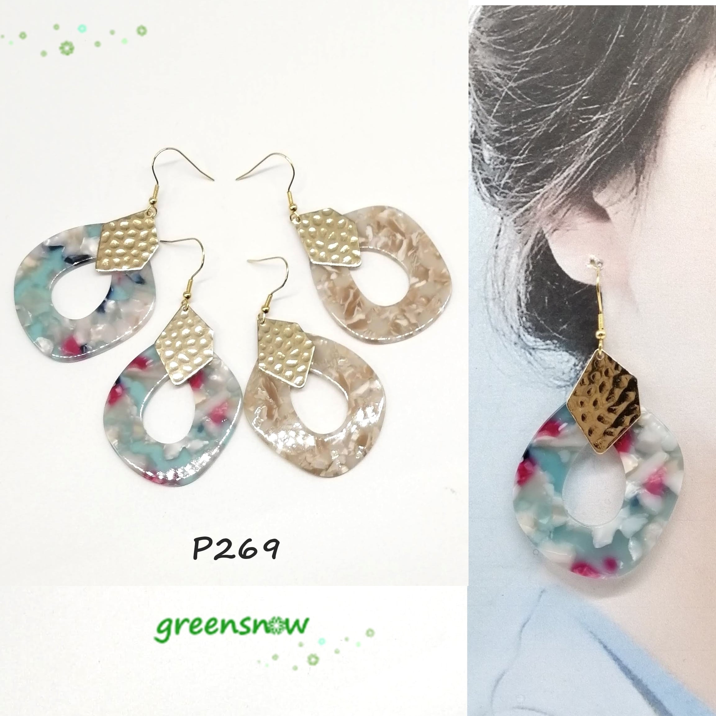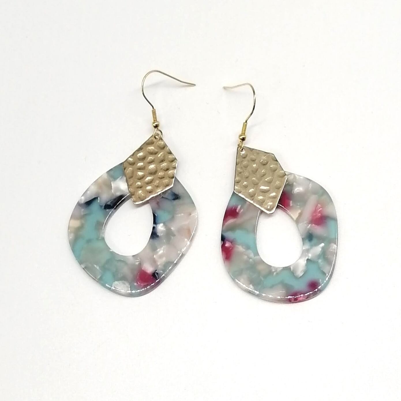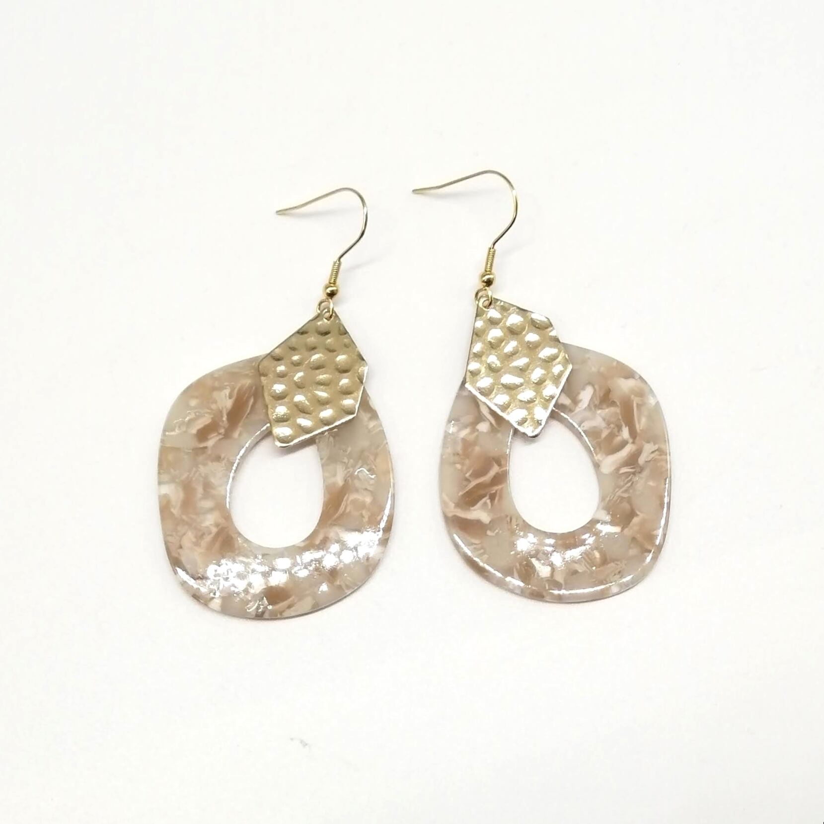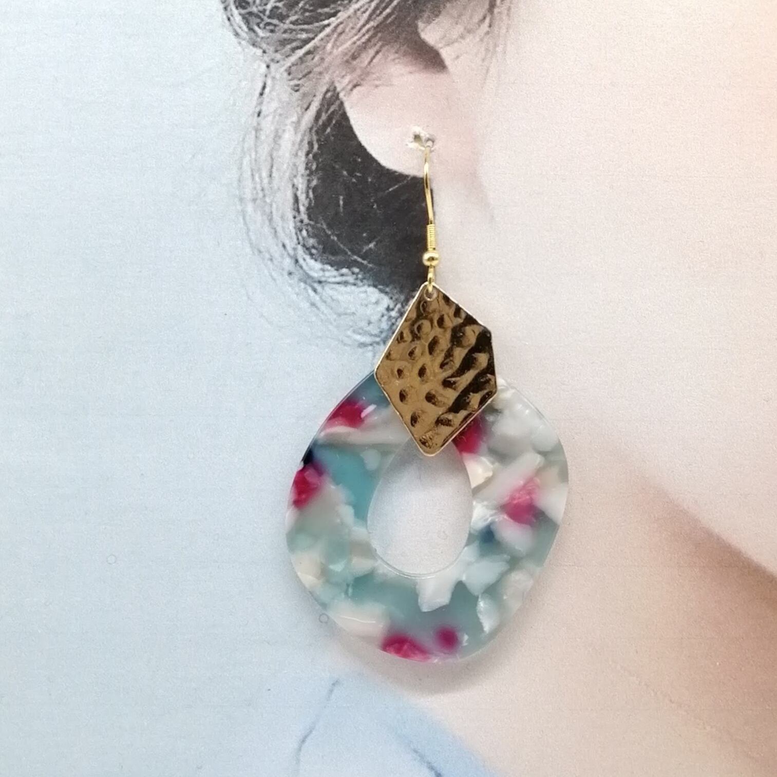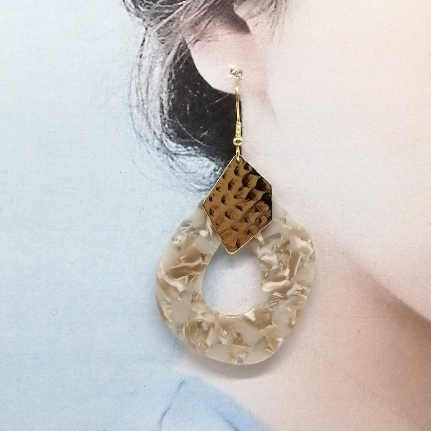 マーブル抜き雫×メタルプレートを合わせたピアスです。